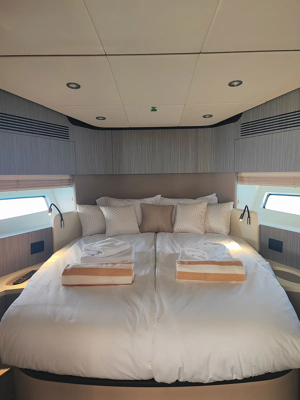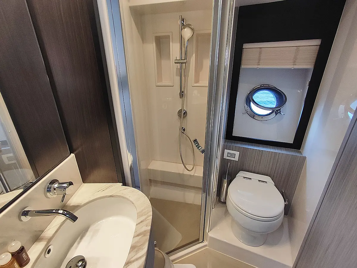 Teak Cockpit, Hydraulic gangway, Swimming platform, Air condition, Generator, Water maker, Dinghy, Wi-Fi & Internet, Cockpit speakers