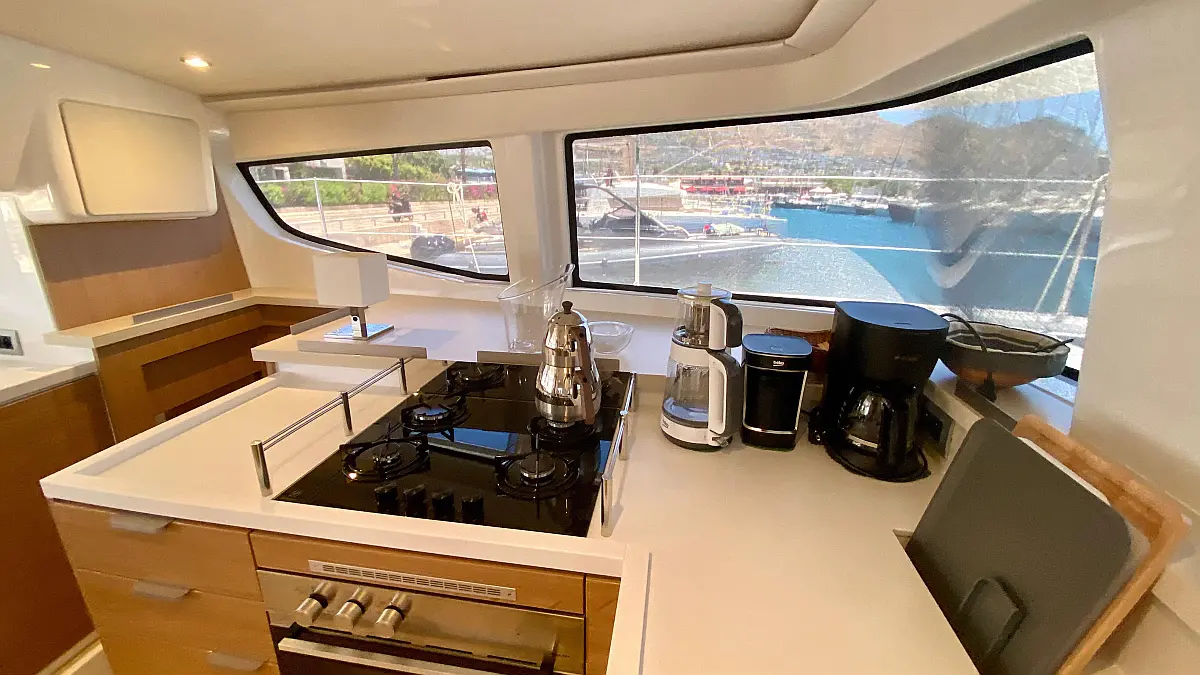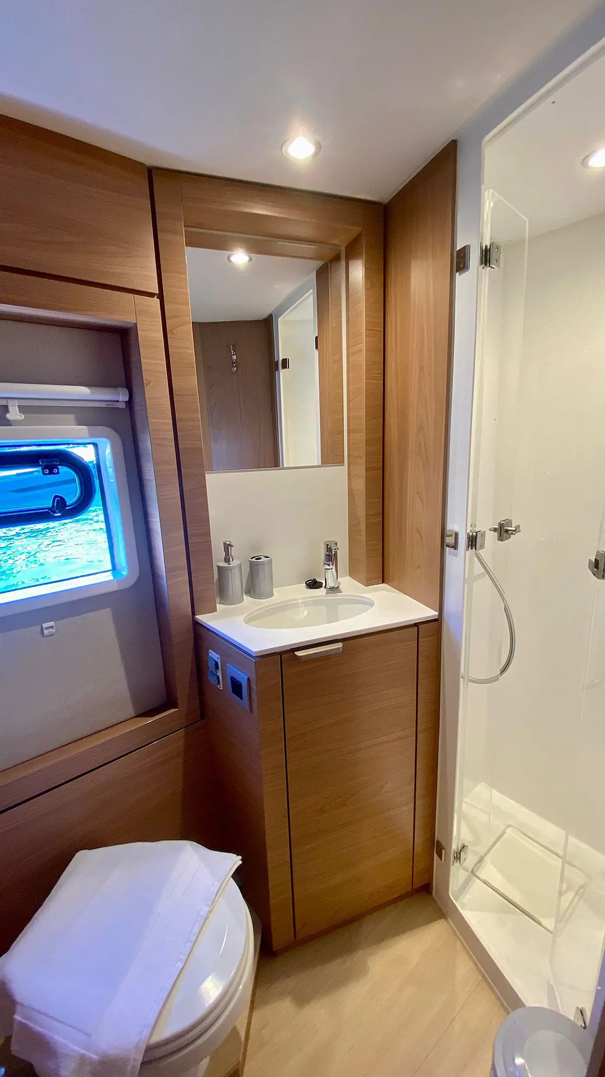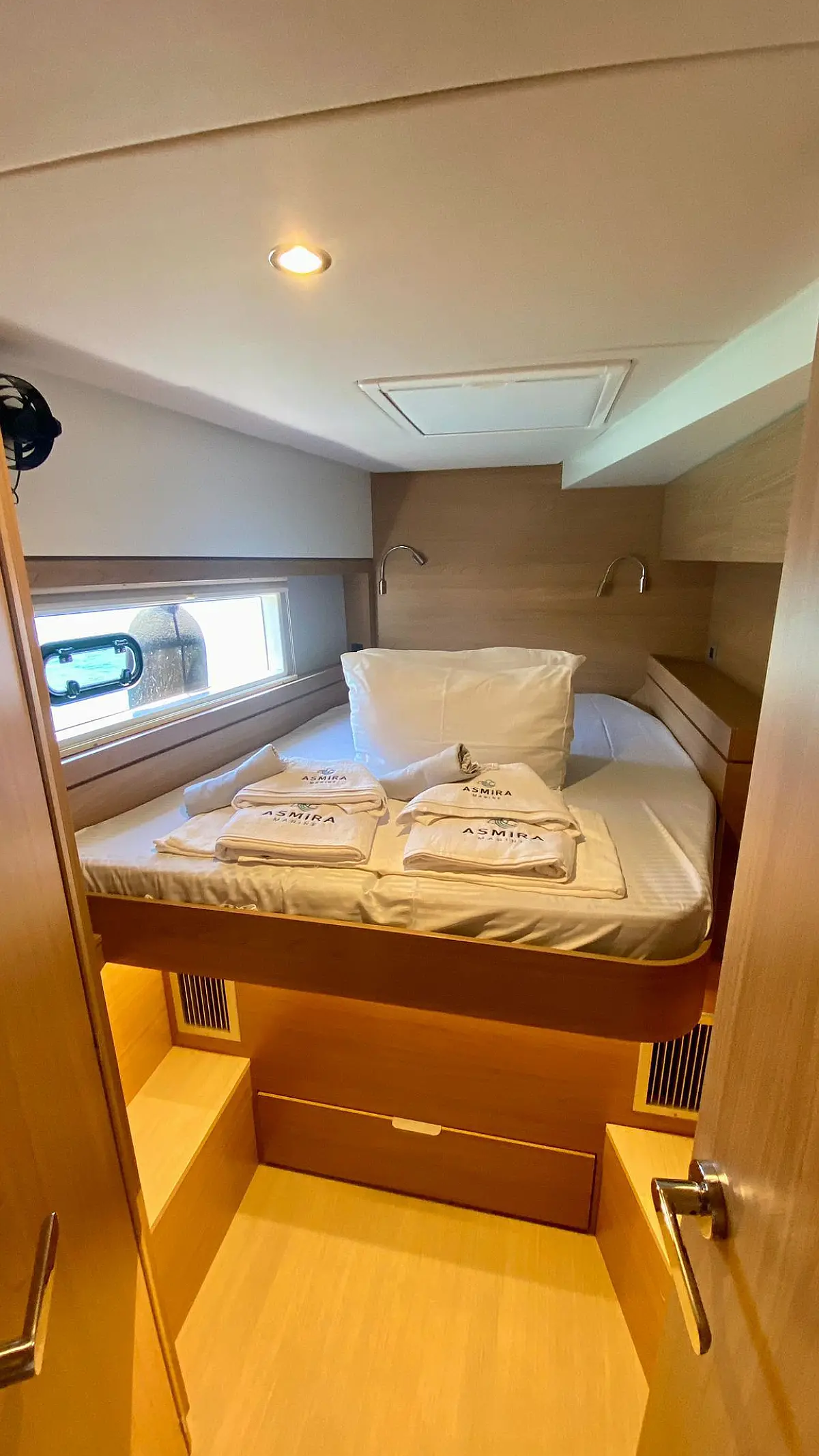 Bimini, Dinghy, Sprayhood, Cockpit cushions, Electric winches, Outboard engine, Air condition, Generator, Inverter, Refrigerator