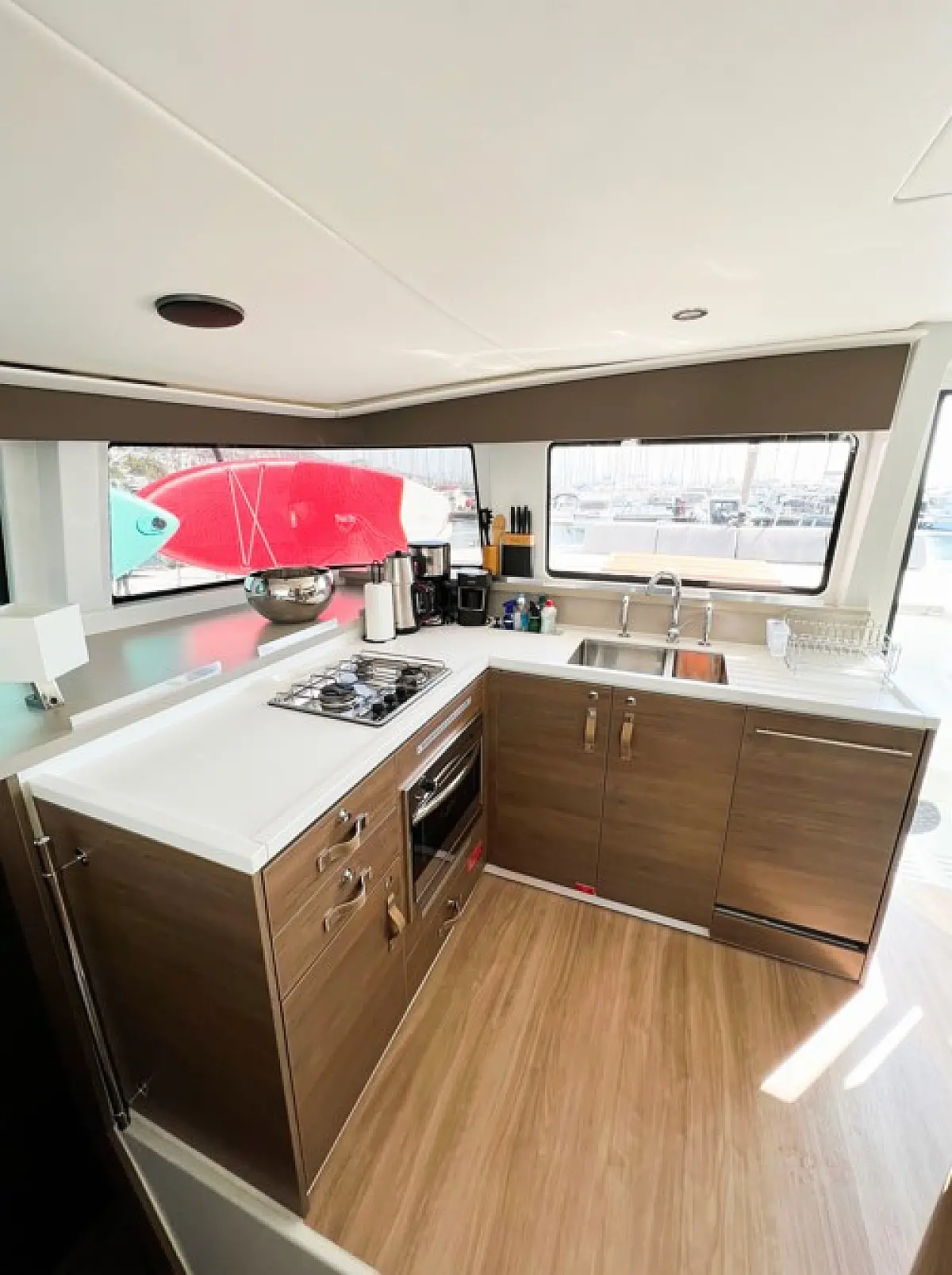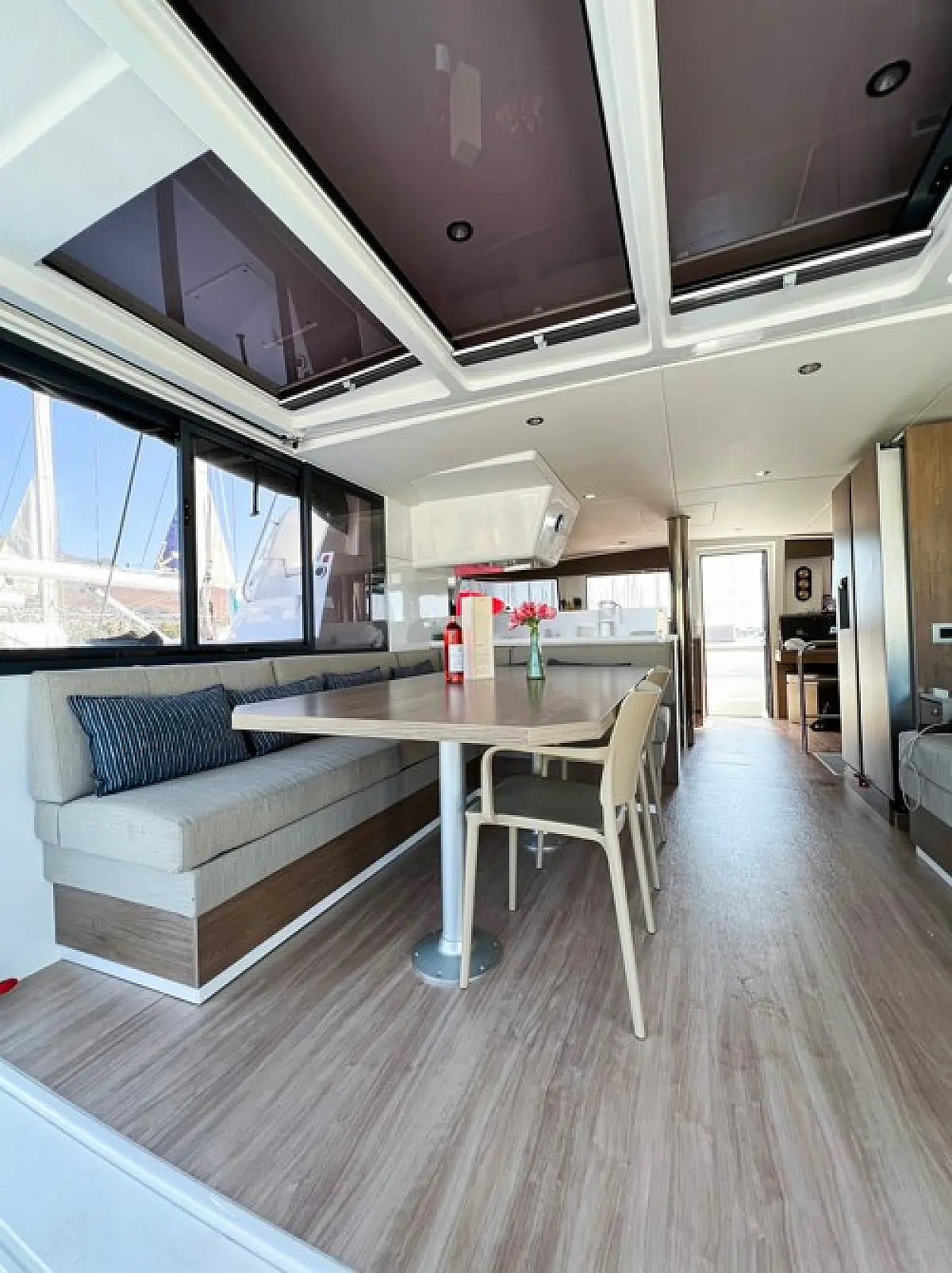 Bimini, Outboard engine, Dinghy, Sprayhood, Electric winches, Air condition, Generator, Electric toilet, Refrigerator, Water maker