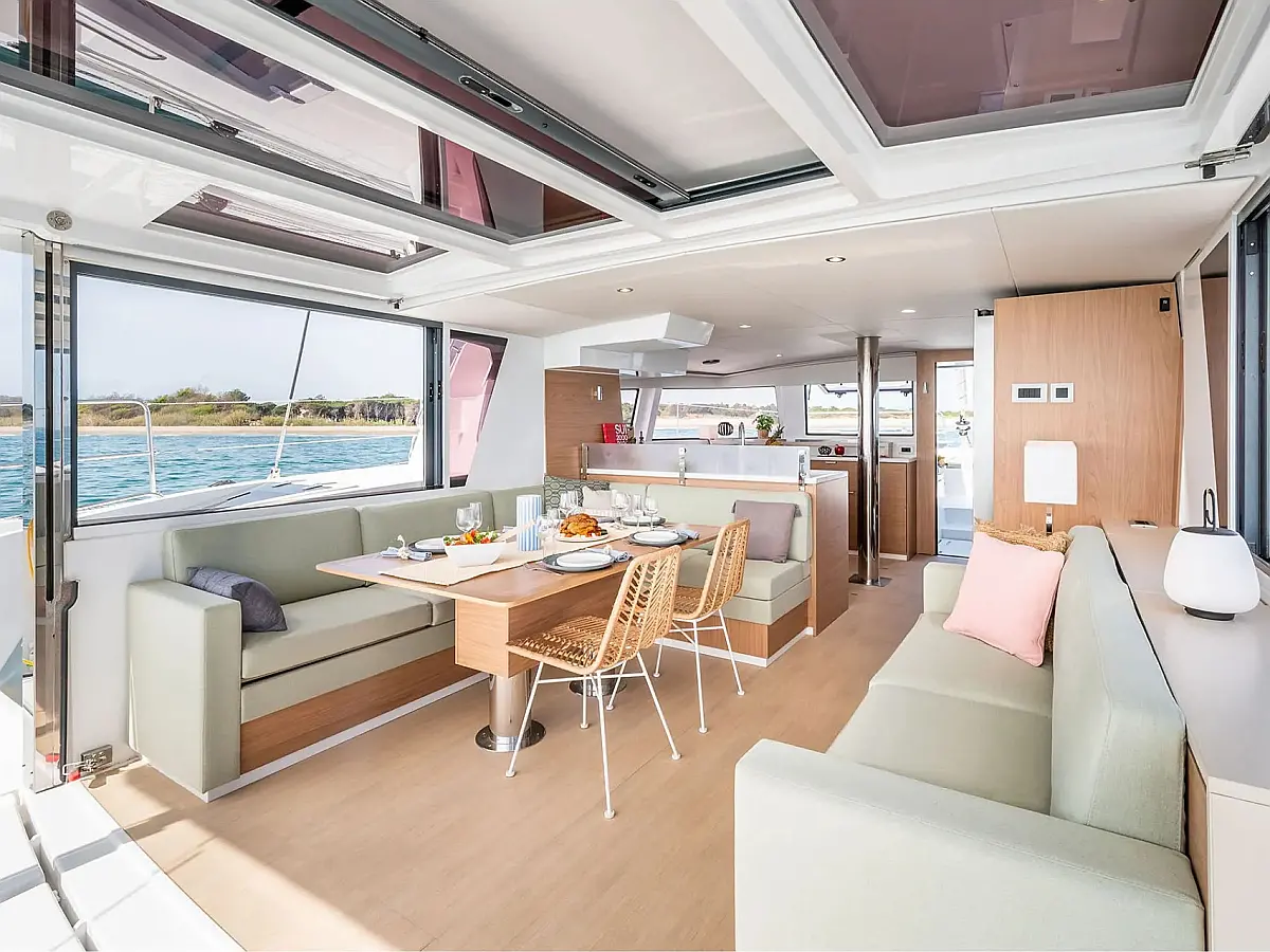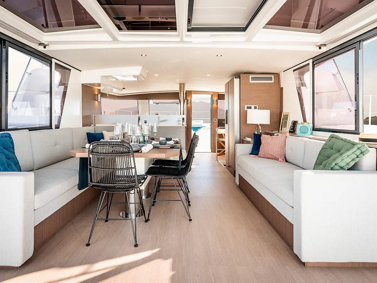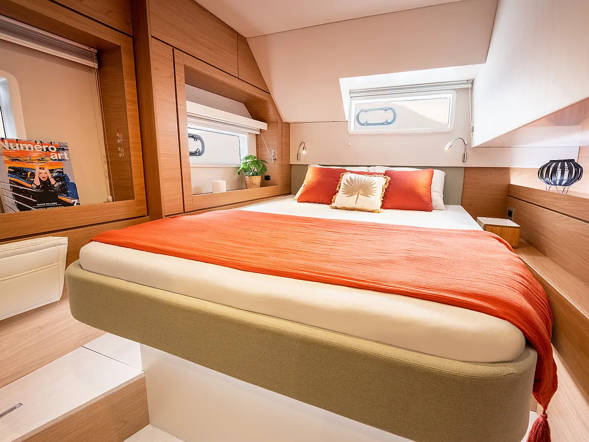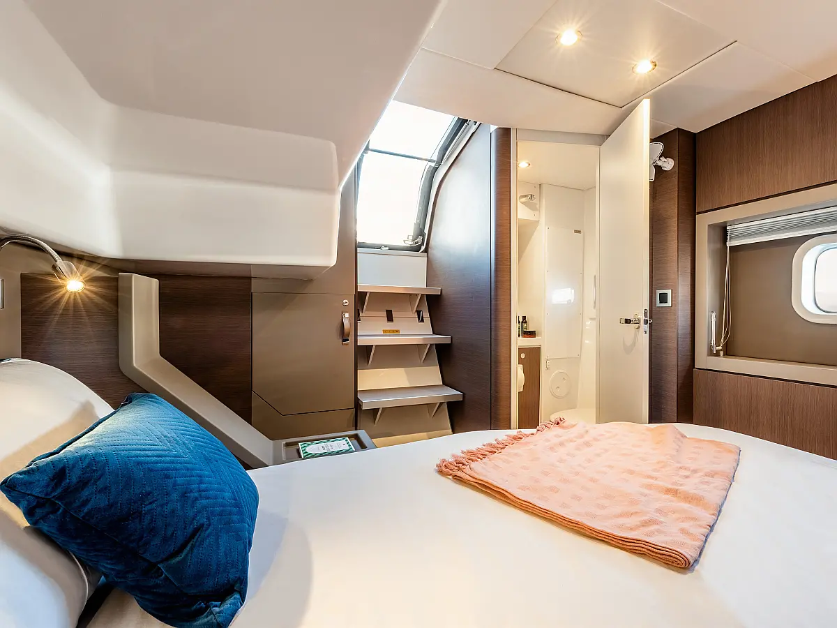 Solar Panels, Heating, Flybridge, Generator, Refrigerator, Ice maker, Cockpit cushions, Dishwasher, Coffee maker, Electric winches, Electric toilet