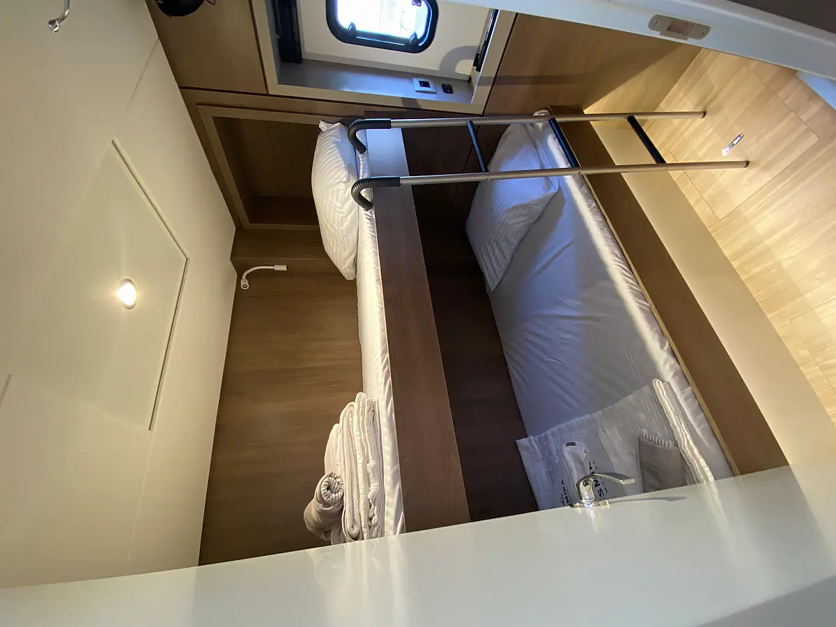 Sprayhood, Inverter, Generator, Bimini, Dinghy, Cockpit cushions, Electric winches, Outboard engine, Air condition, Electric toilet, Refrigerator