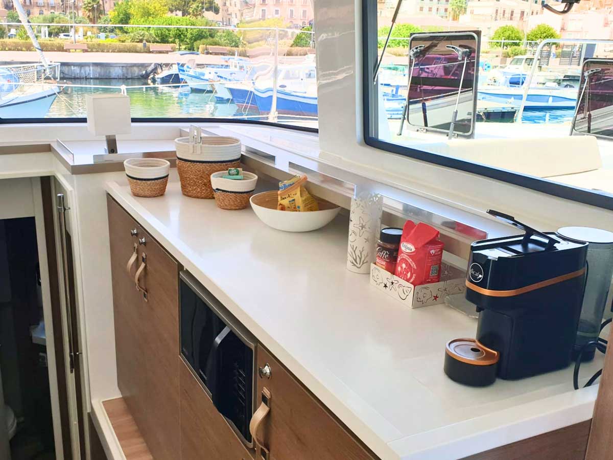 Cockpit speakers, Dinghy, Generator, Inverter, Water maker, Air condition, Barbecue grill in cockpit, Ice maker, Coffee maker, Refrigerator, Electric winches, Heating, Electric toilet