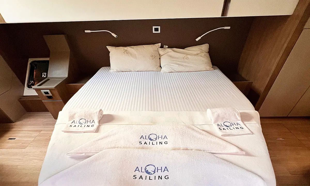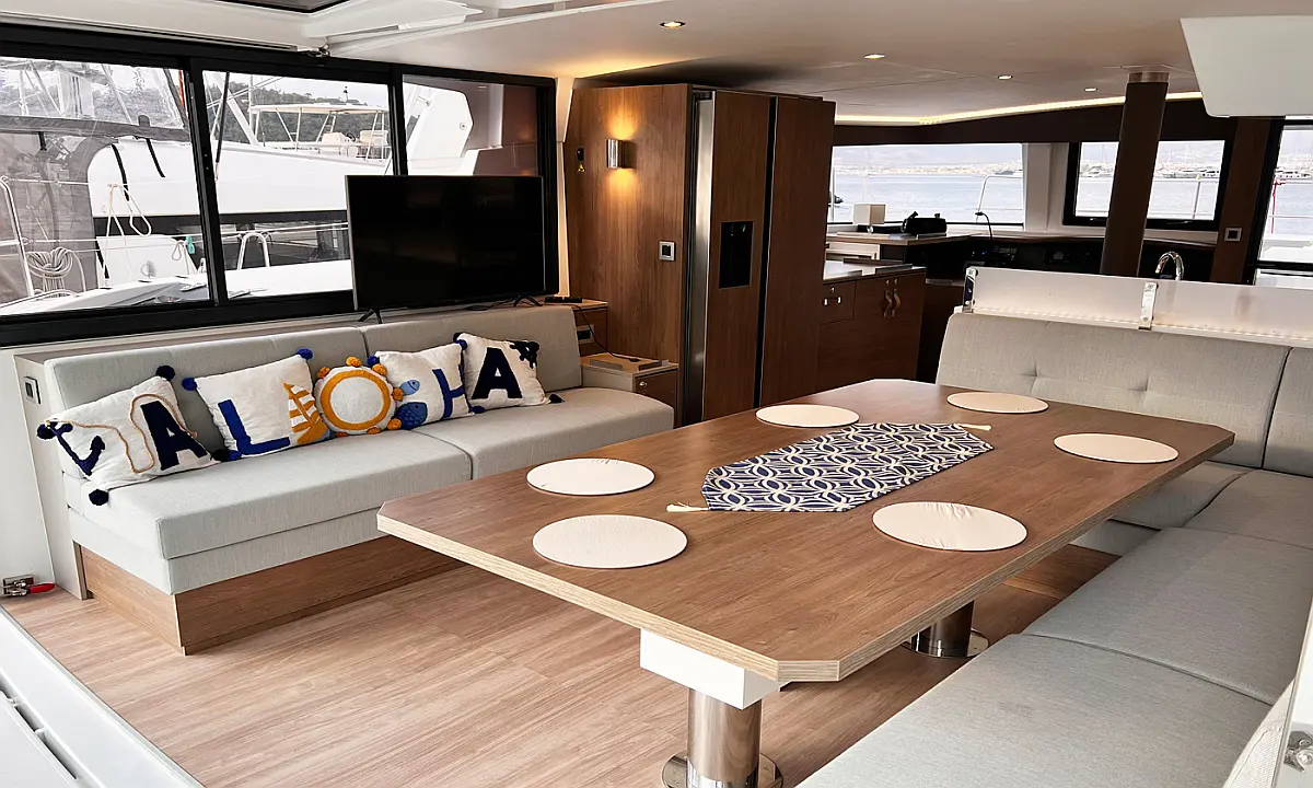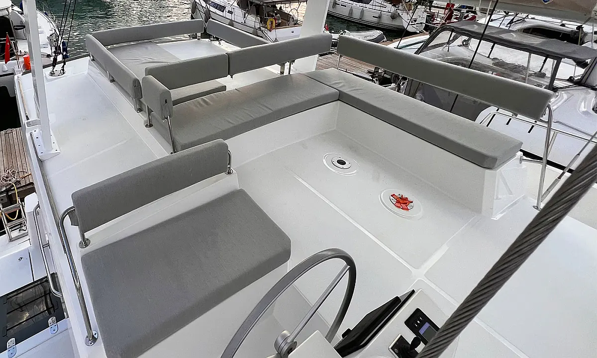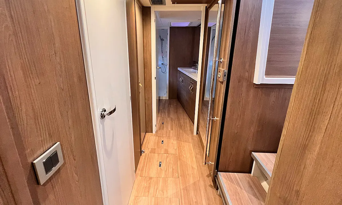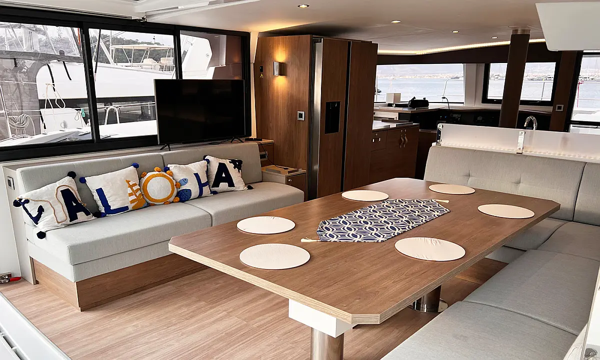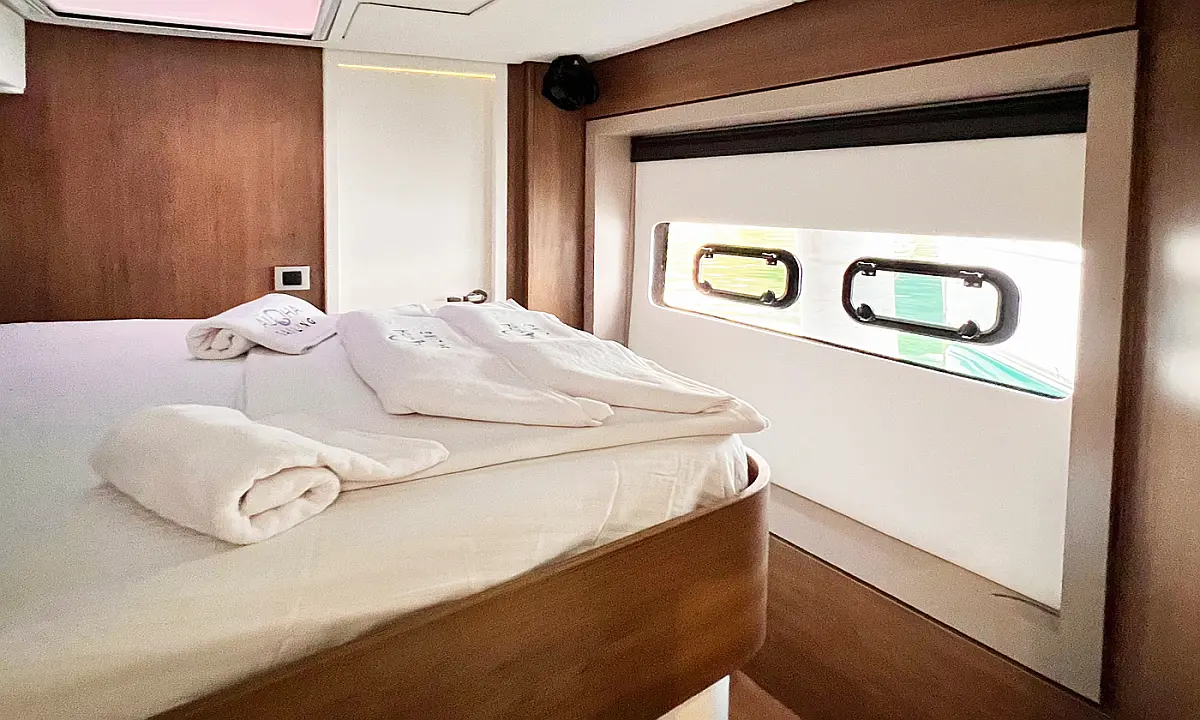 Refrigerator, Electric toilet, Cockpit cushions, Air condition, Water maker, Inverter, Generator, Solar Panels, Coffee maker, Heating, Electric winches