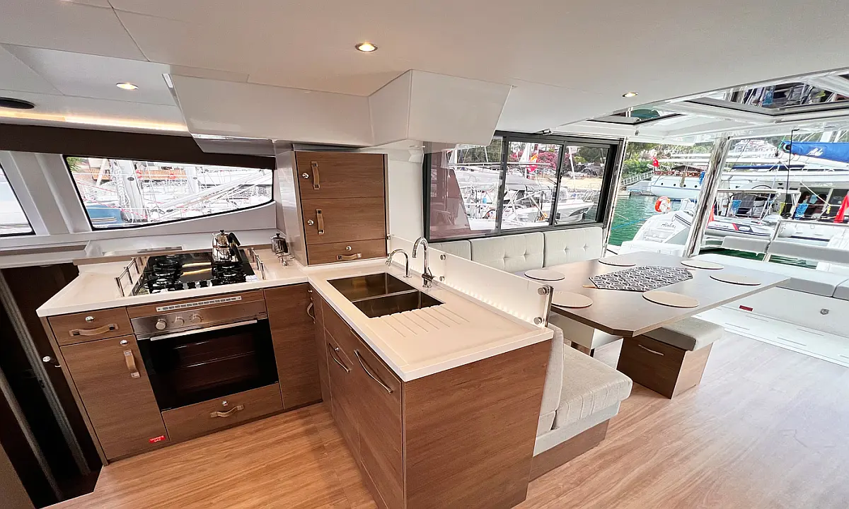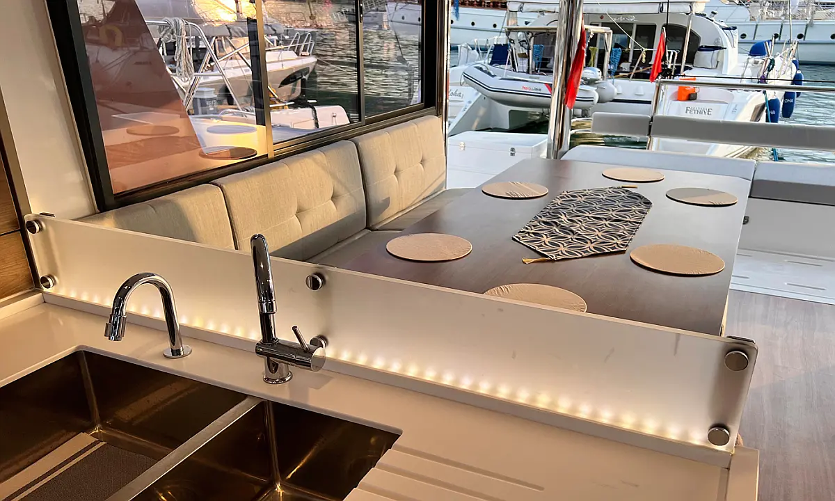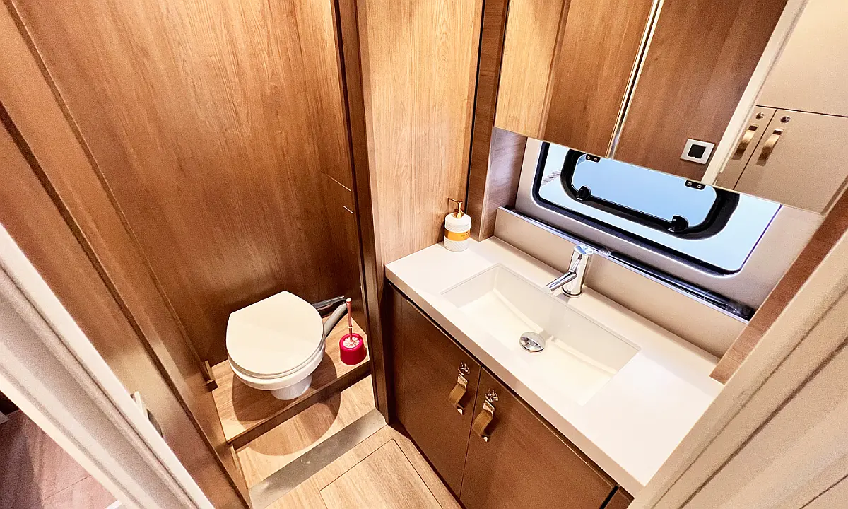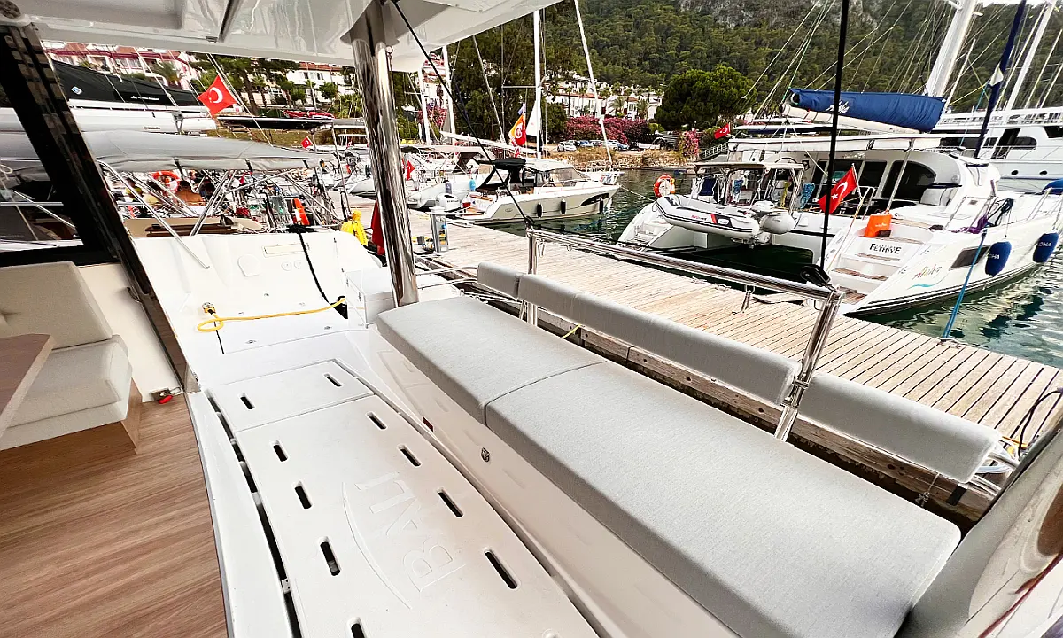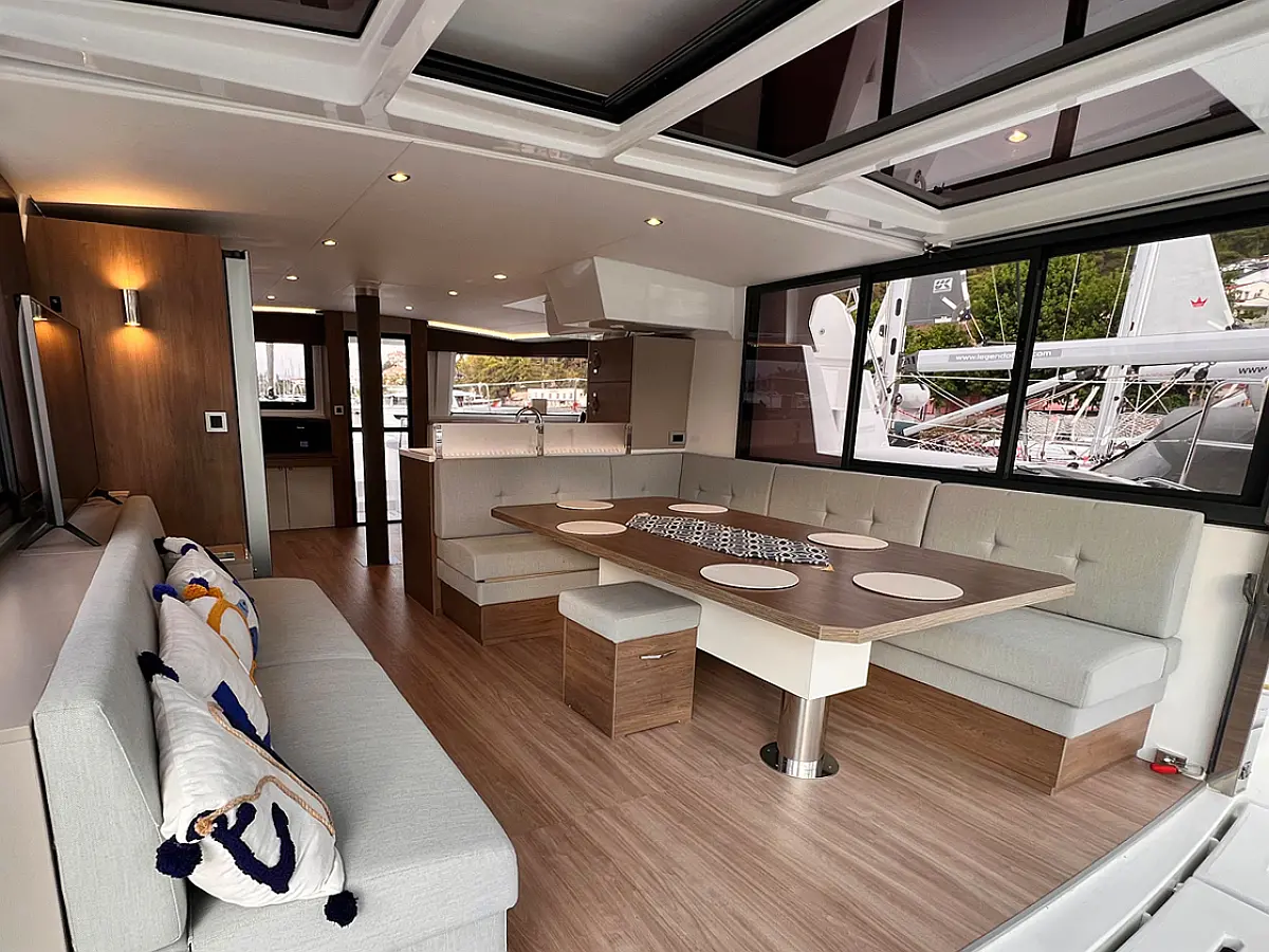Refrigerator, Electric toilet, Cockpit cushions, Air condition, Water maker, Inverter, Generator, Solar Panels, Coffee maker, Heating, Electric winches