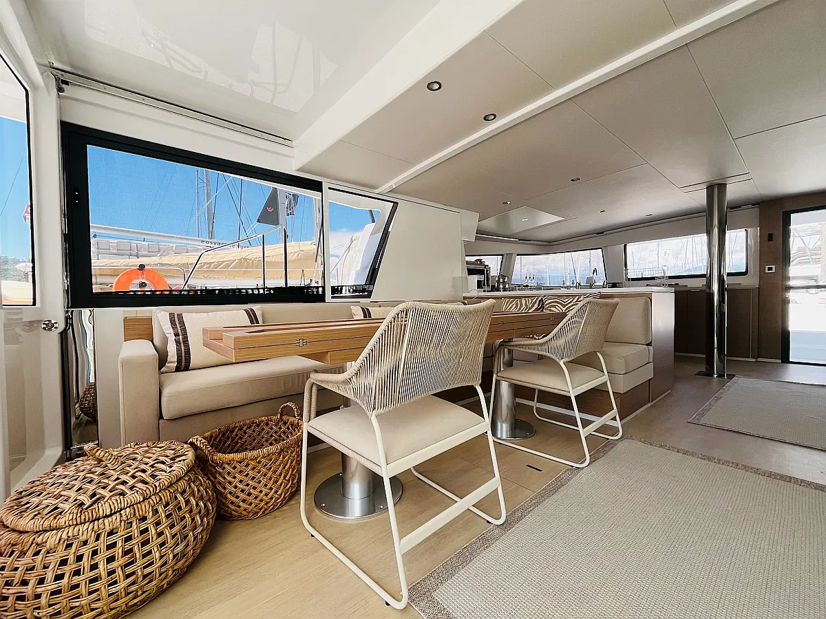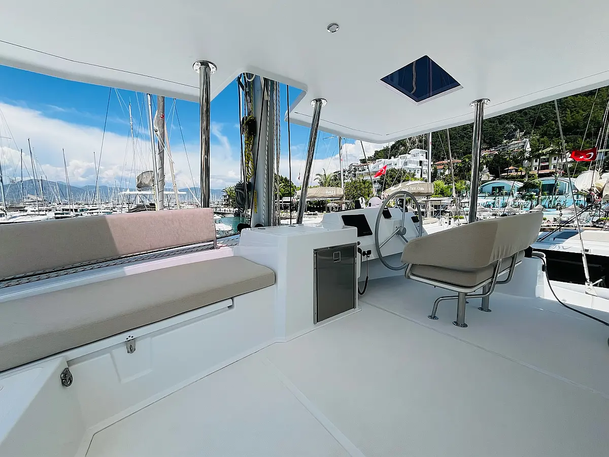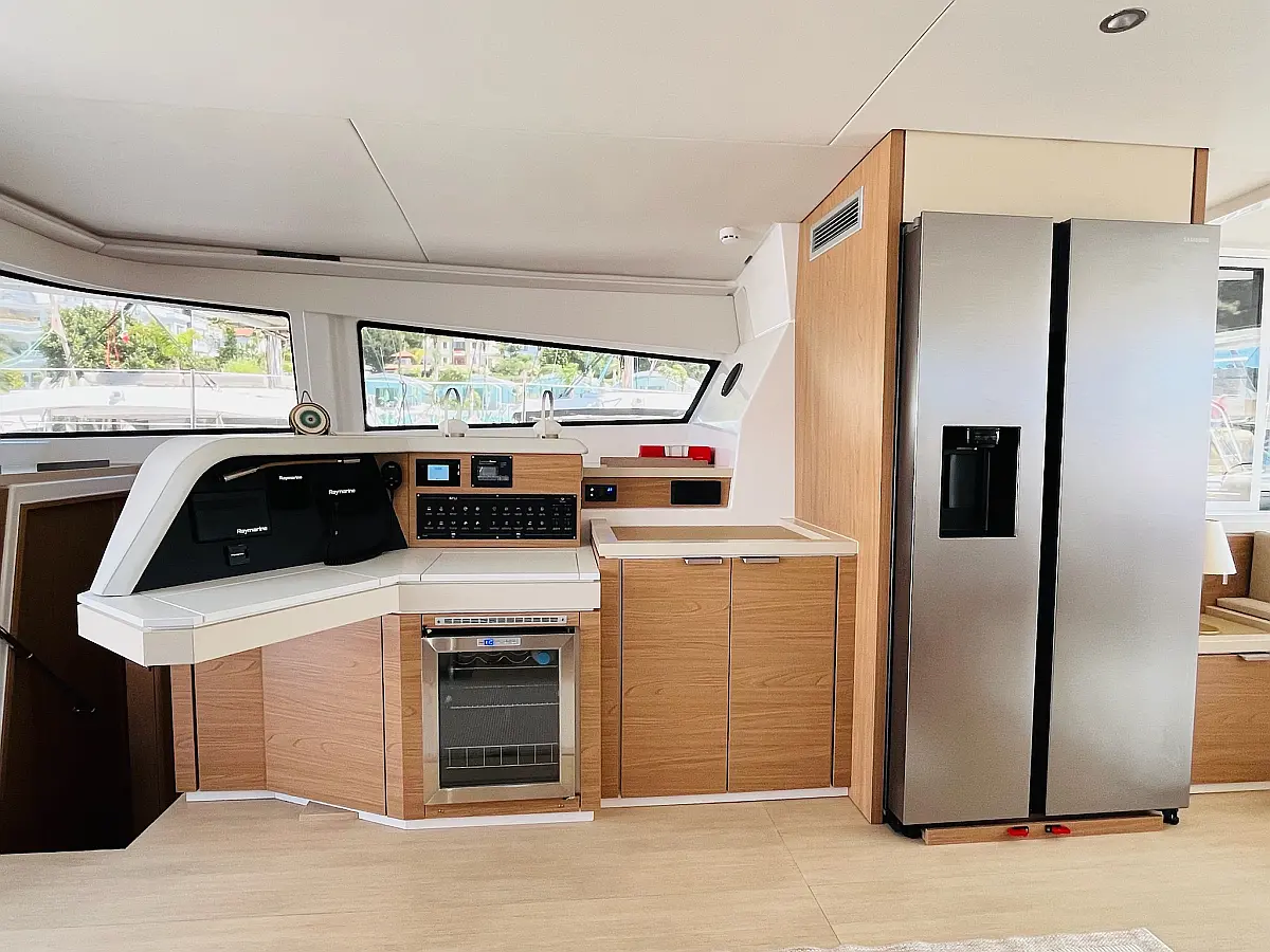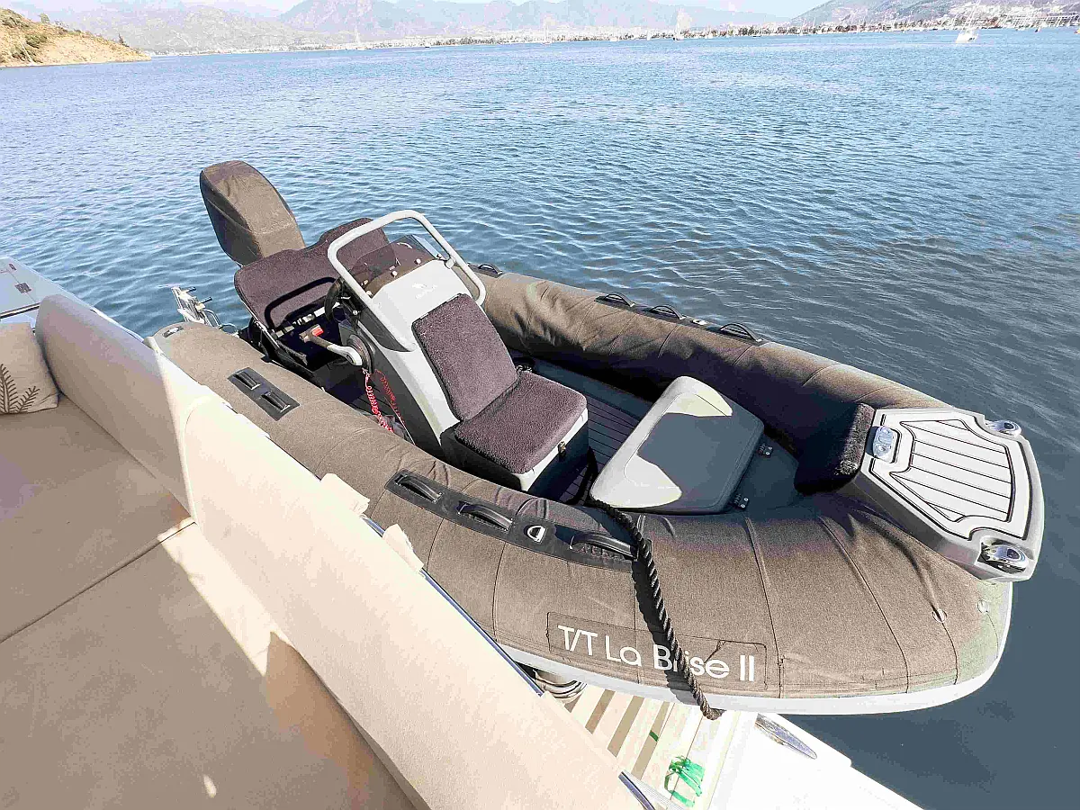 Dinghy, Cockpit cushions, Flybridge, Bimini, Water maker, Refrigerator, Generator, Inverter, Solar Panels, Air condition