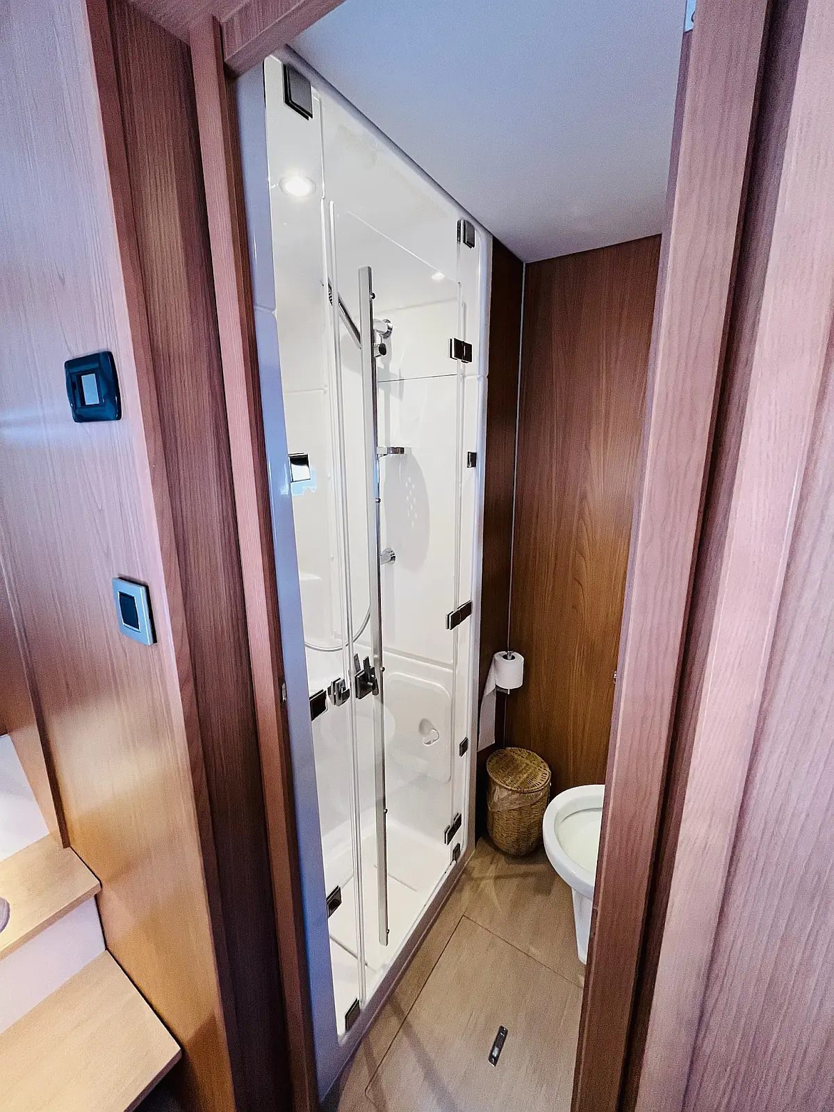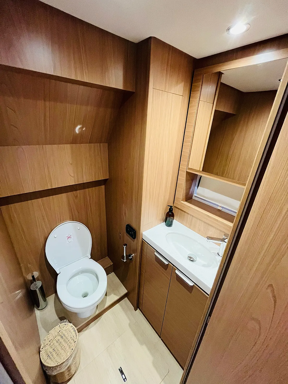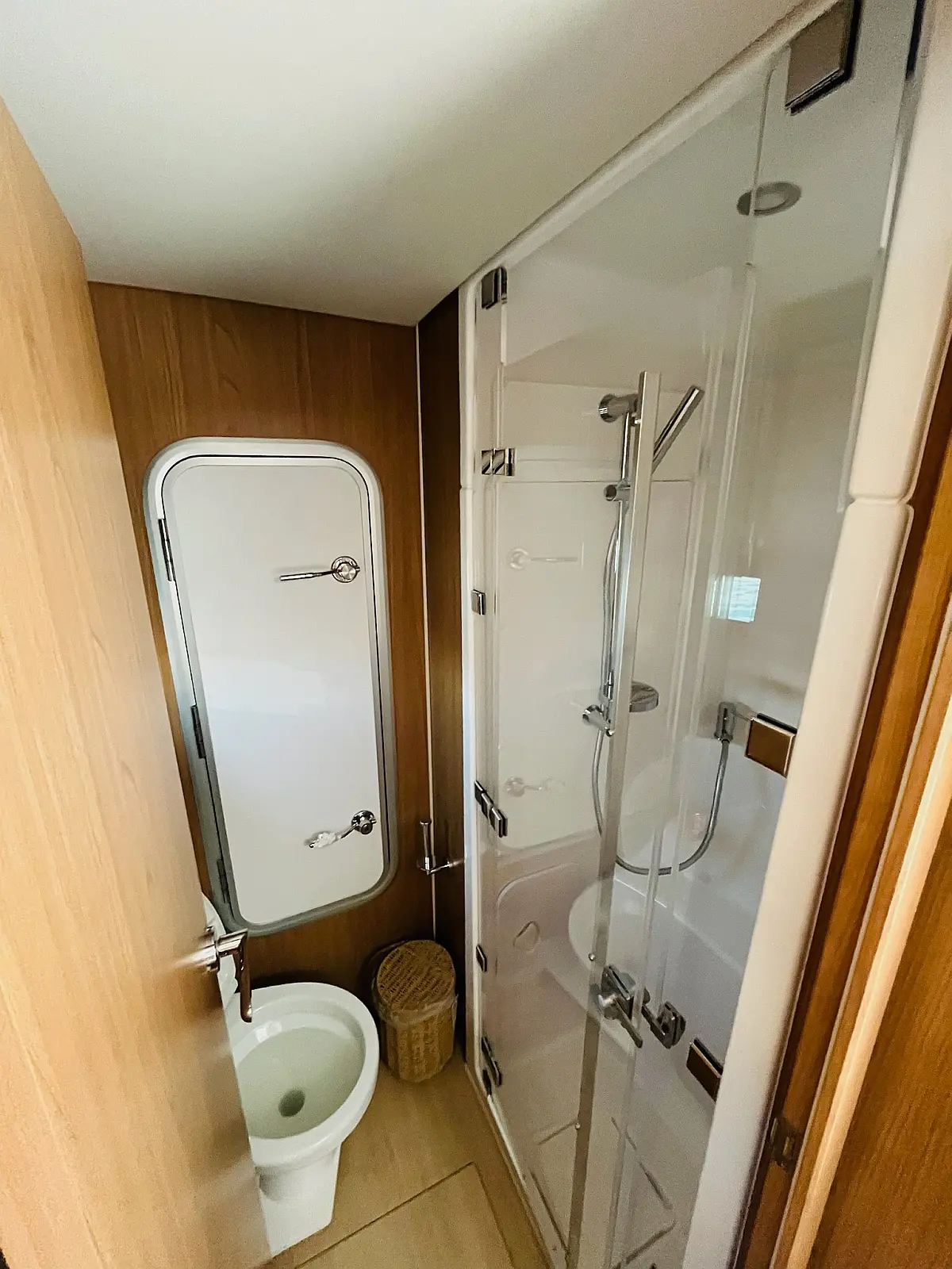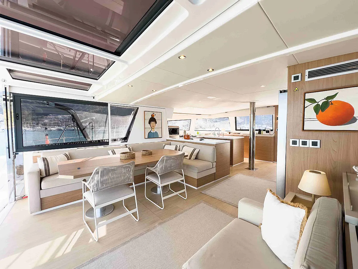 Dinghy, Cockpit cushions, Flybridge, Bimini, Water maker, Refrigerator, Generator, Inverter, Solar Panels, Air condition