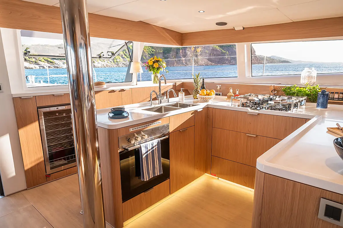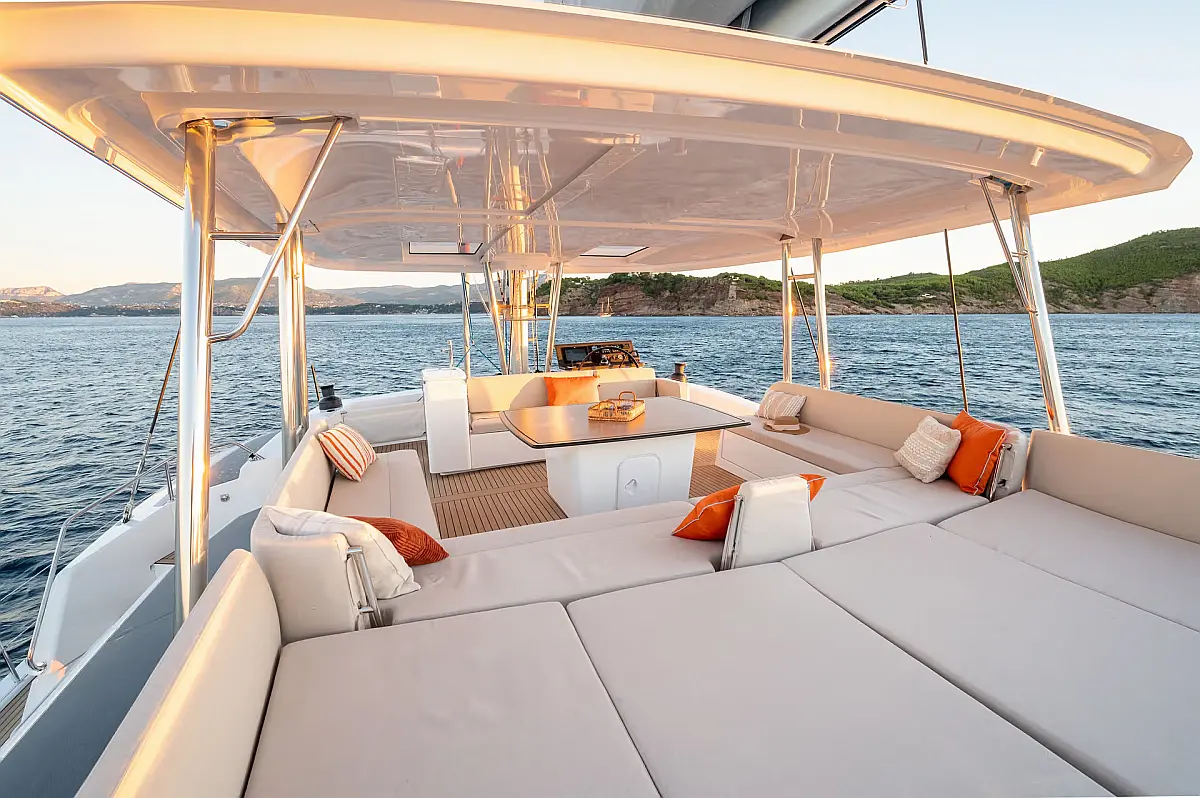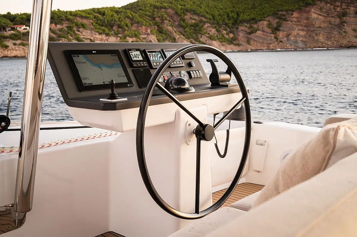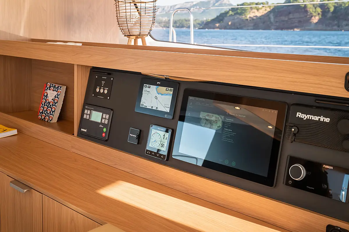 Swimming platform, Air condition, Cockpit cushions, Electric toilet, Generator, Dinghy, Refrigerator, Electric winches, Inverter, Outboard engine