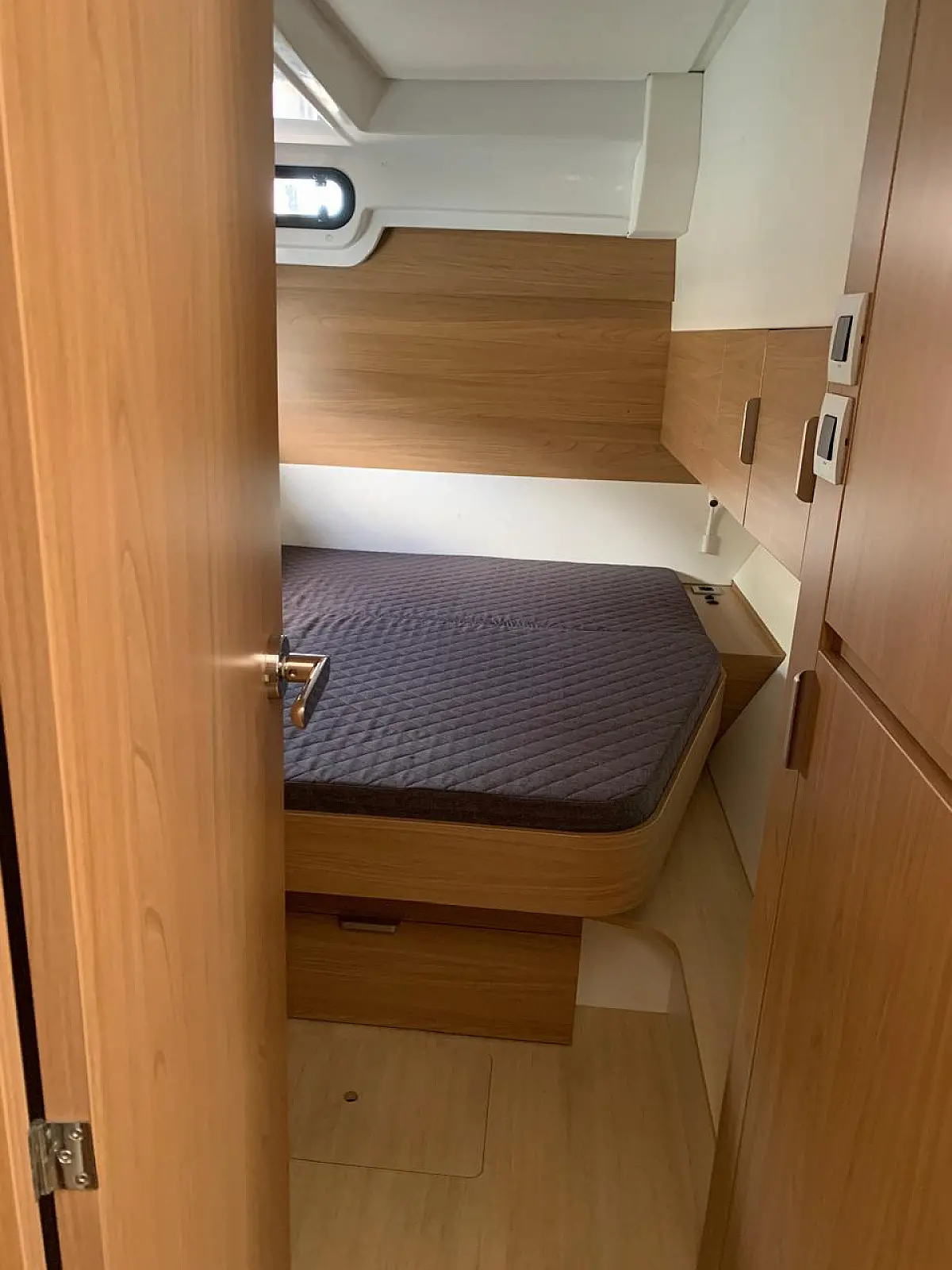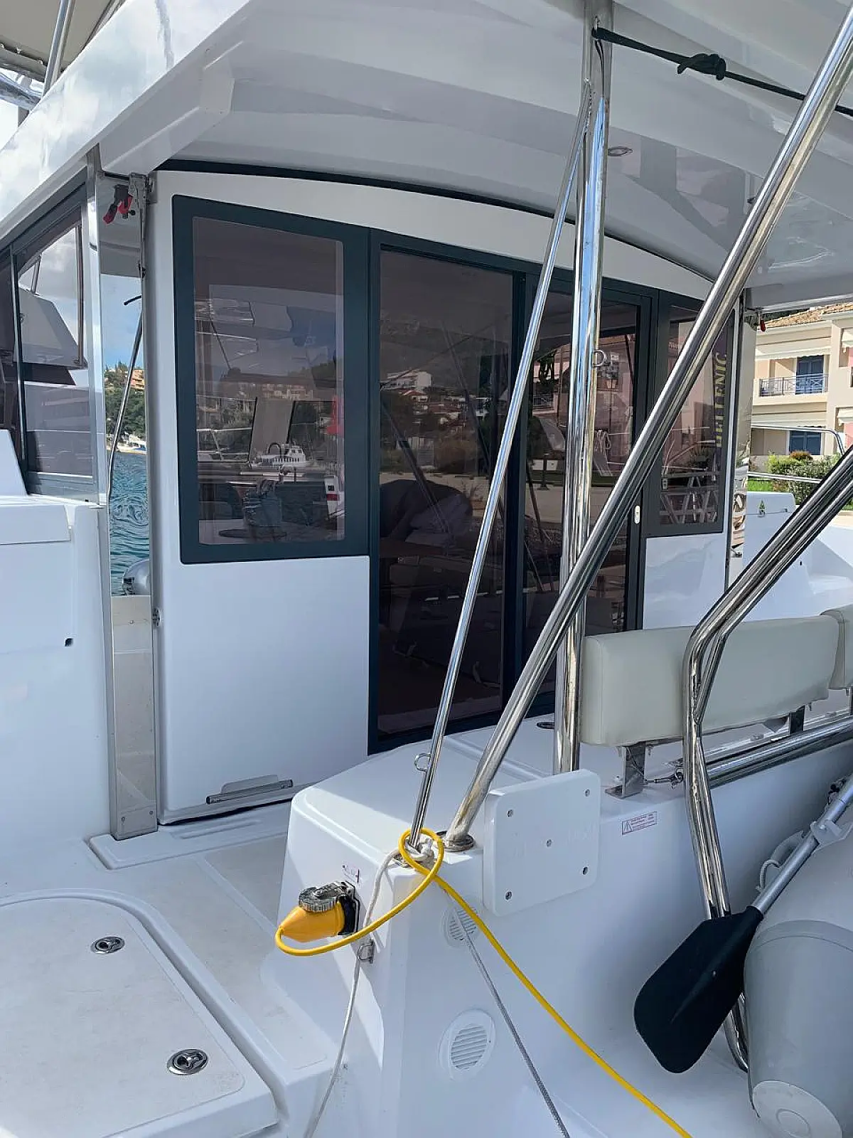 Solar Panels, Bimini, Cockpit cushions, Dinghy, Refrigerator, Outboard engine, Electric winches