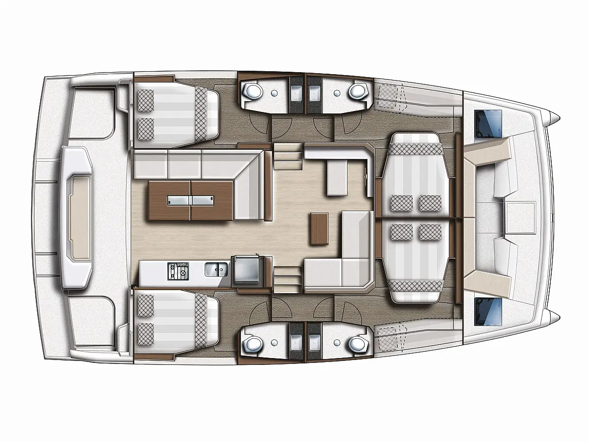 12 (salon table convertible to double berth/1 extra small berth in each front cabin)