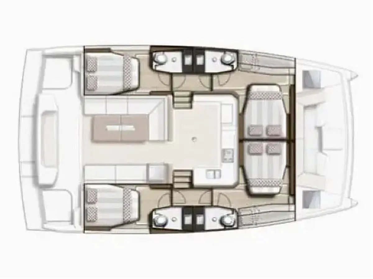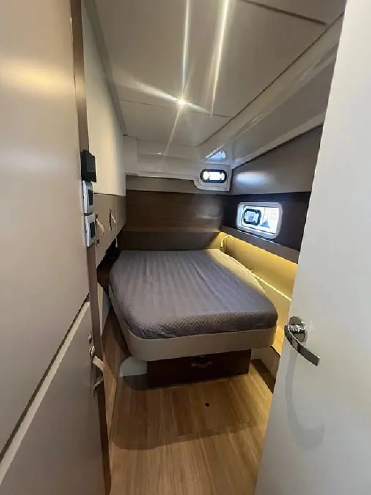 Outboard engine, Barbecue grill in cockpit, Coffee maker, Cockpit cushions, Electric toilet