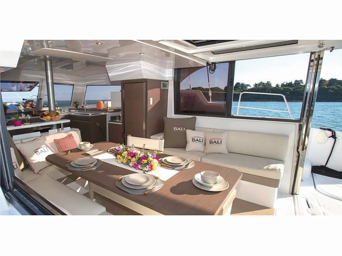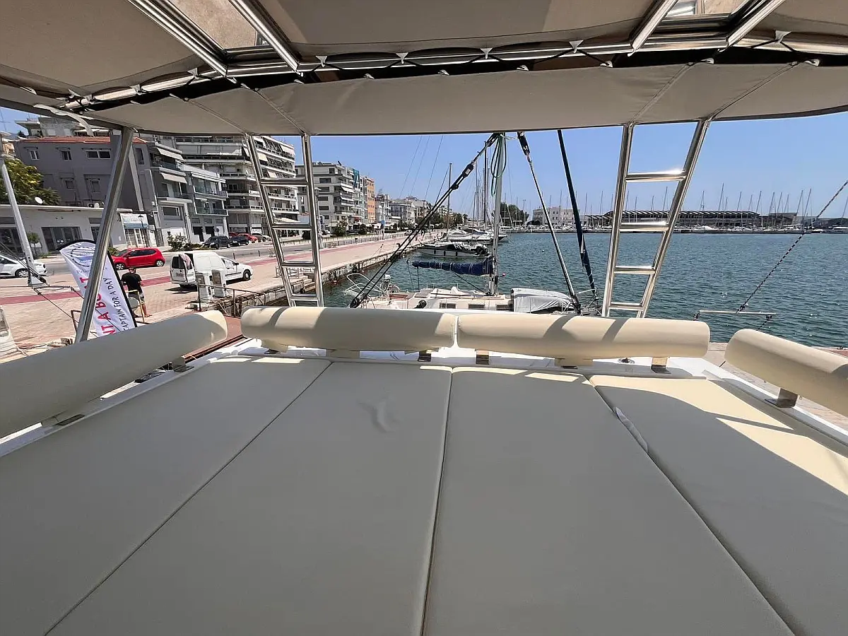 Bimini, Sprayhood, Cockpit speakers, Dinghy, Ice maker, Holding tank, Cockpit cushions, Swimming platform, Flybridge, Coffee maker, Refrigerator, Inverter