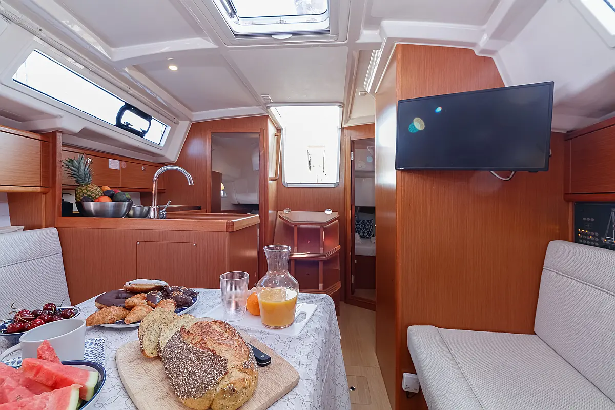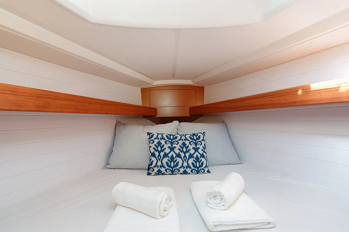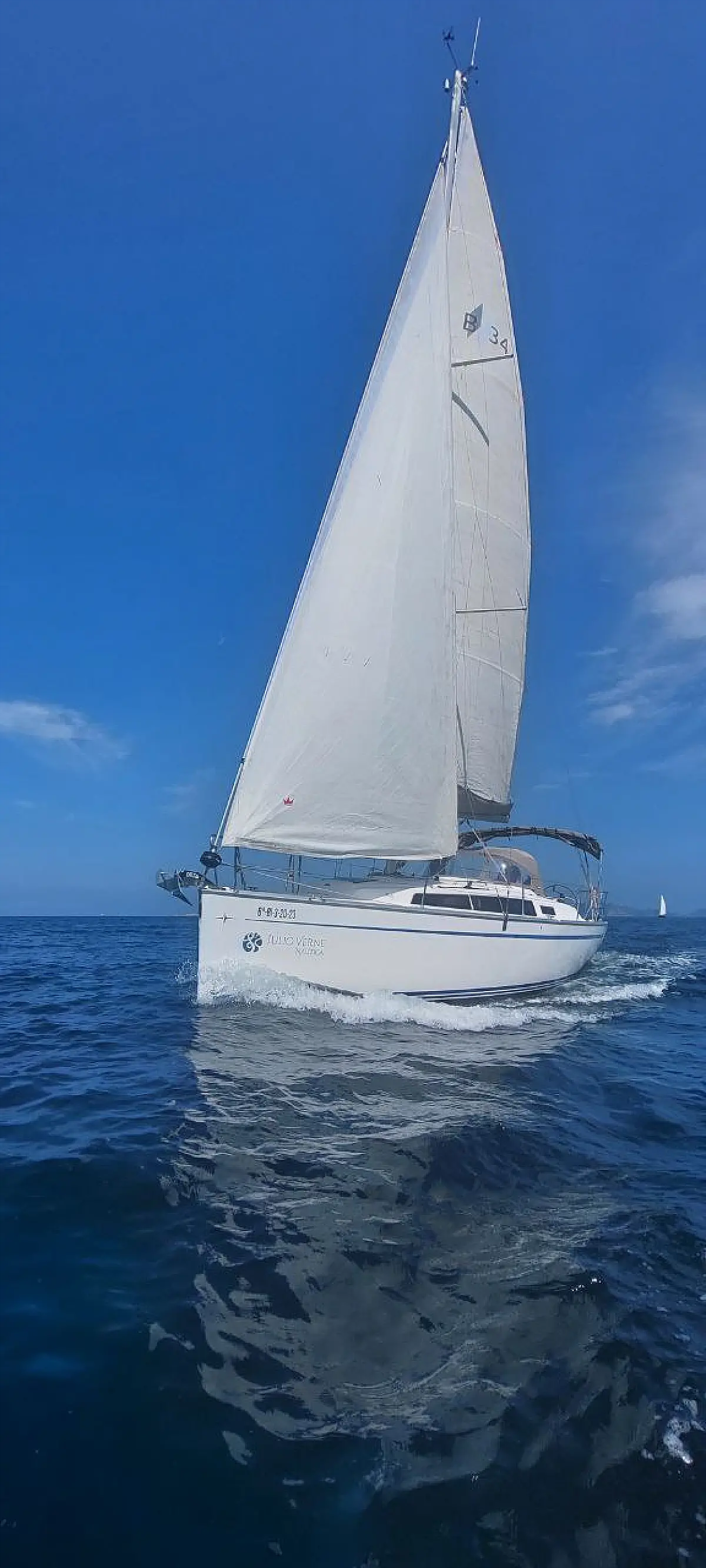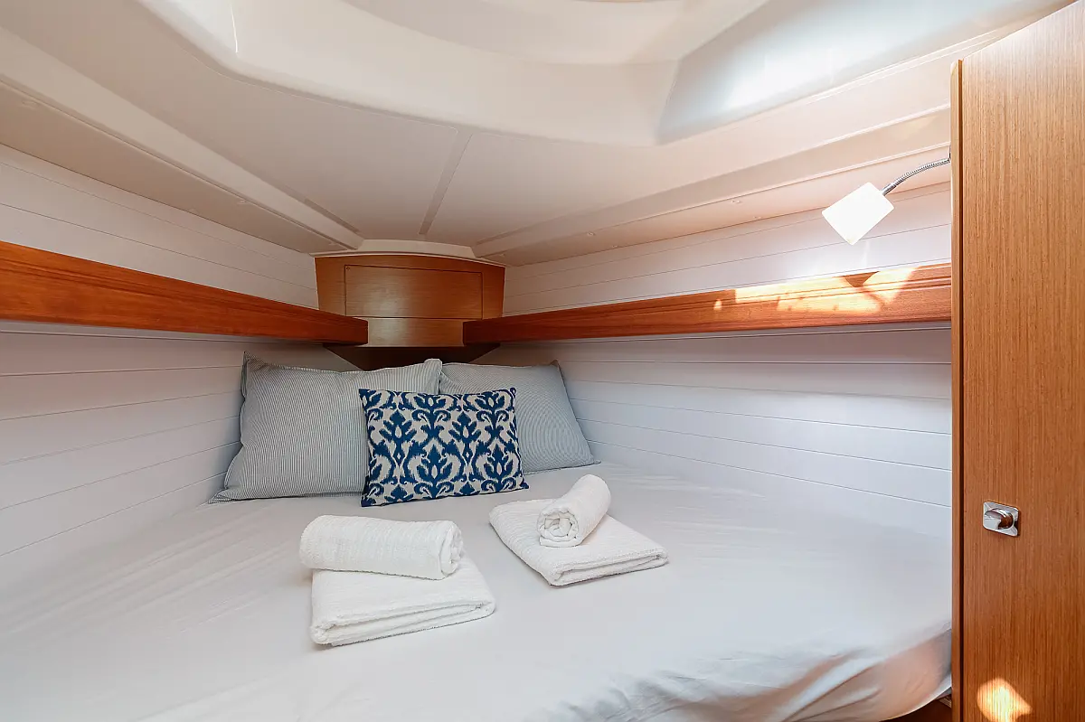 33 ft Length 3 Cabins 6 Max Guests 1 Heads Technical Specifications Draught: 7 ft Engine: Volvo penta 1,2 HP Water capacity: 150.00 l Main sail: None Displacement: 4500.00 kg Fuel capacity: 150.00 l Beam: 11 ft Genoa: None Equipment Comfort: Sprayhood, Dinghy, Refrigerator, Coffee maker Navigation: Chart plotter Sails: Lazy bag, Lazy jack Documents Download Brochure