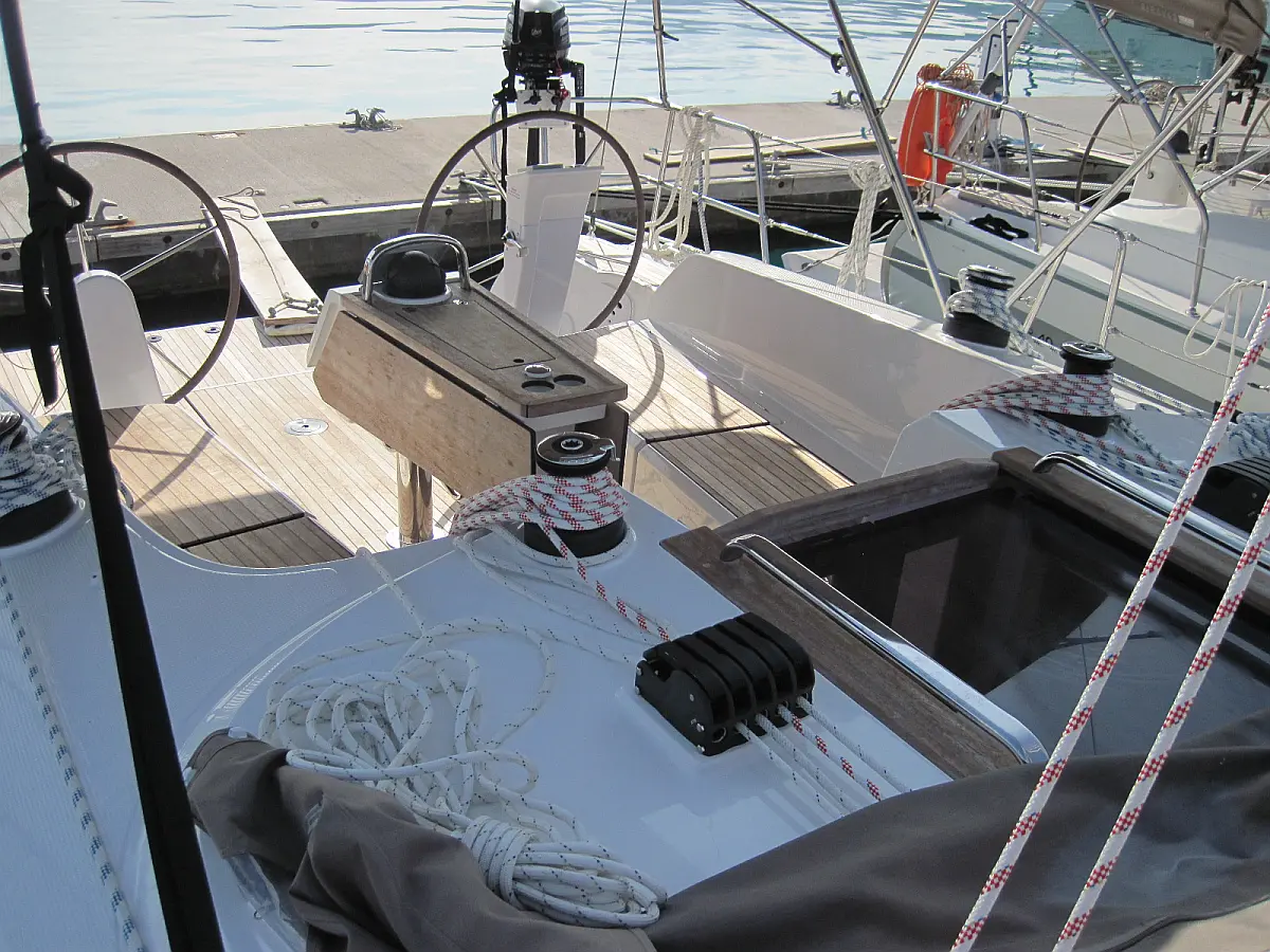 Refrigerator, Dinghy, Electric winches, Bimini, Cockpit speakers, Sprayhood, Cockpit cushions, Electric toilet
