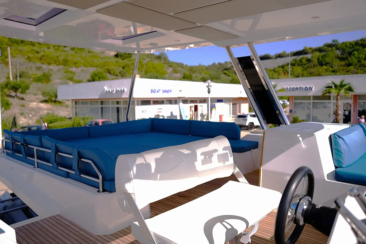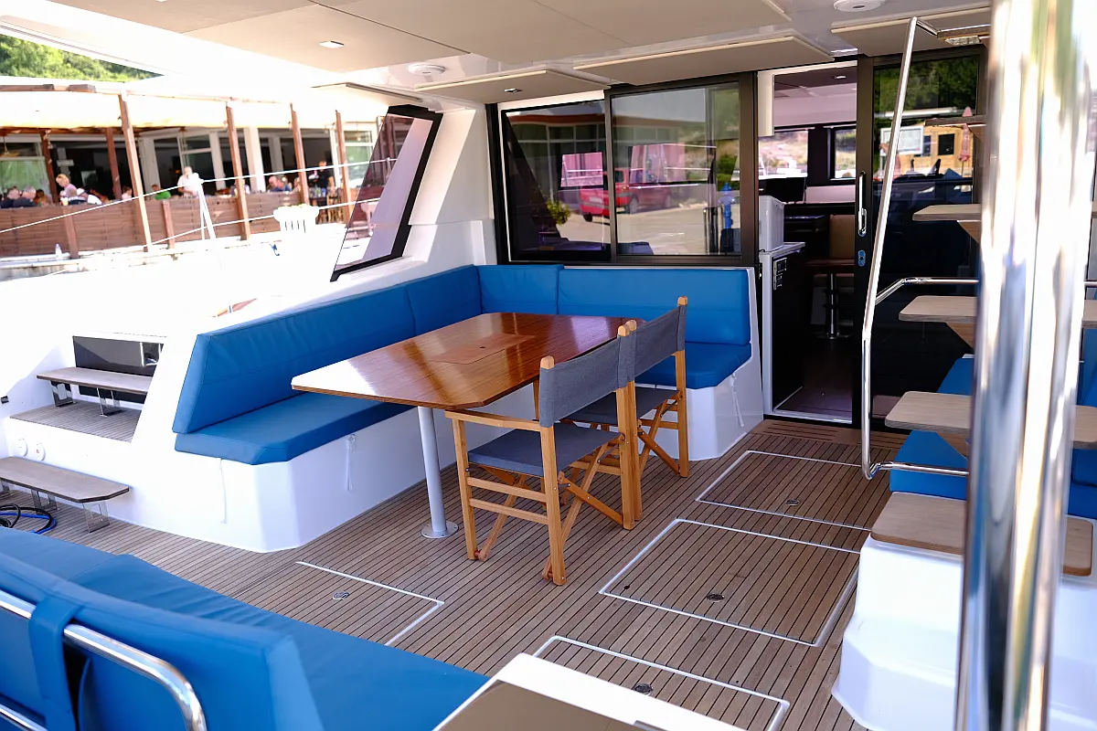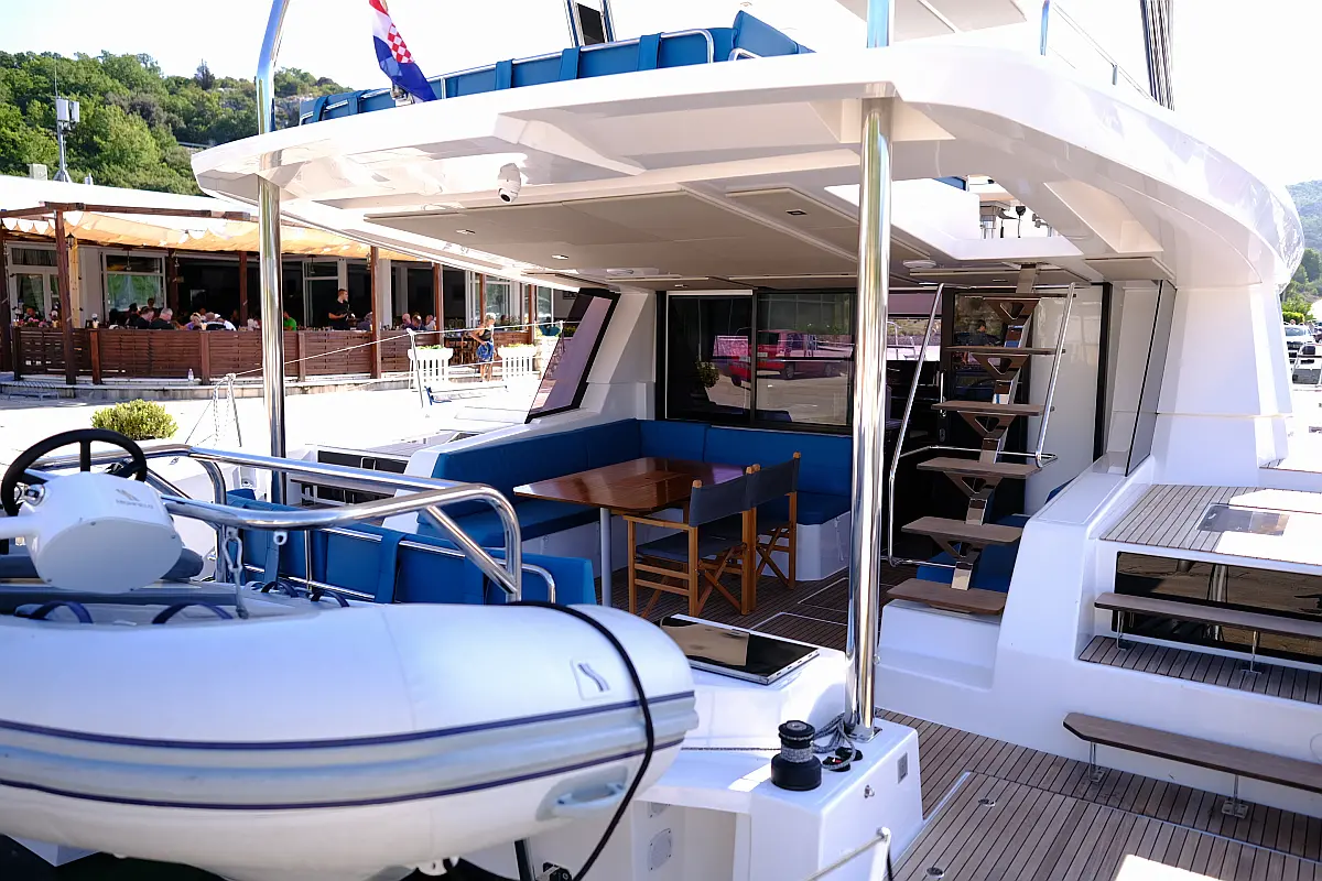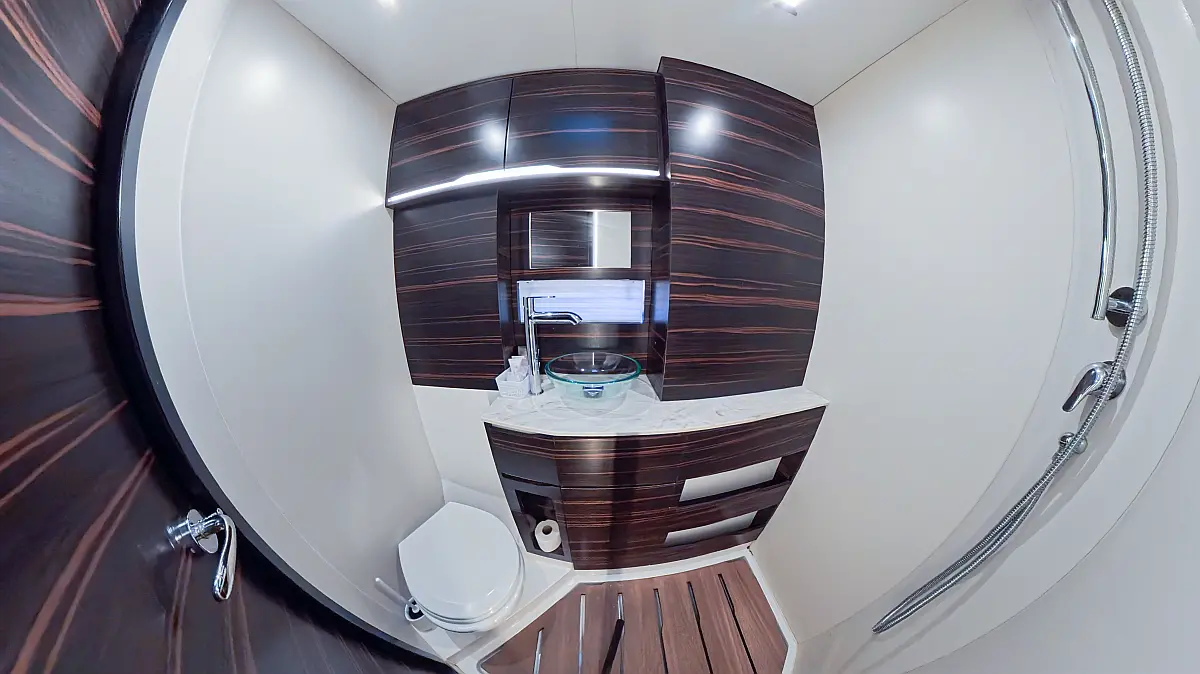 Air condition, Water maker, Electric winches, Dinghy, Generator, Solar Panels, Hydraulic gangway, Teak deck