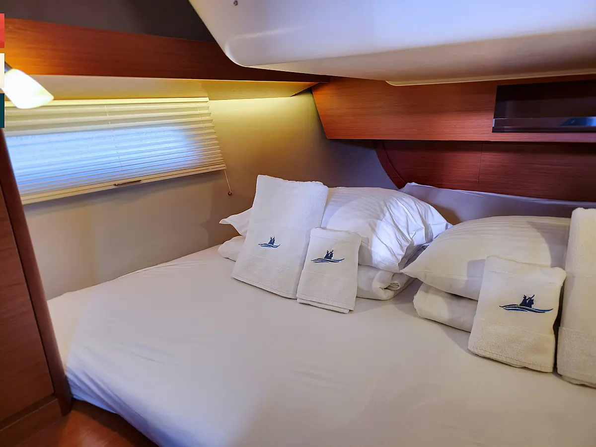 Dinghy, Outboard engine, Cockpit cushions, Teak Cockpit, Sprayhood, Bimini, Inverter, Refrigerator, Wi-Fi & Internet