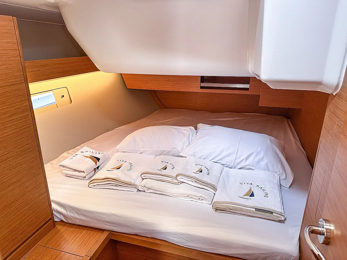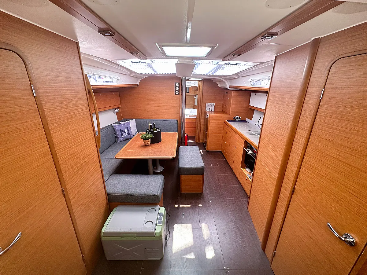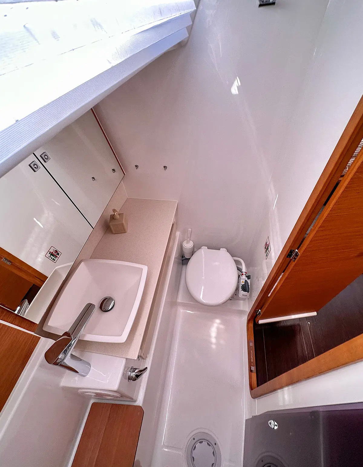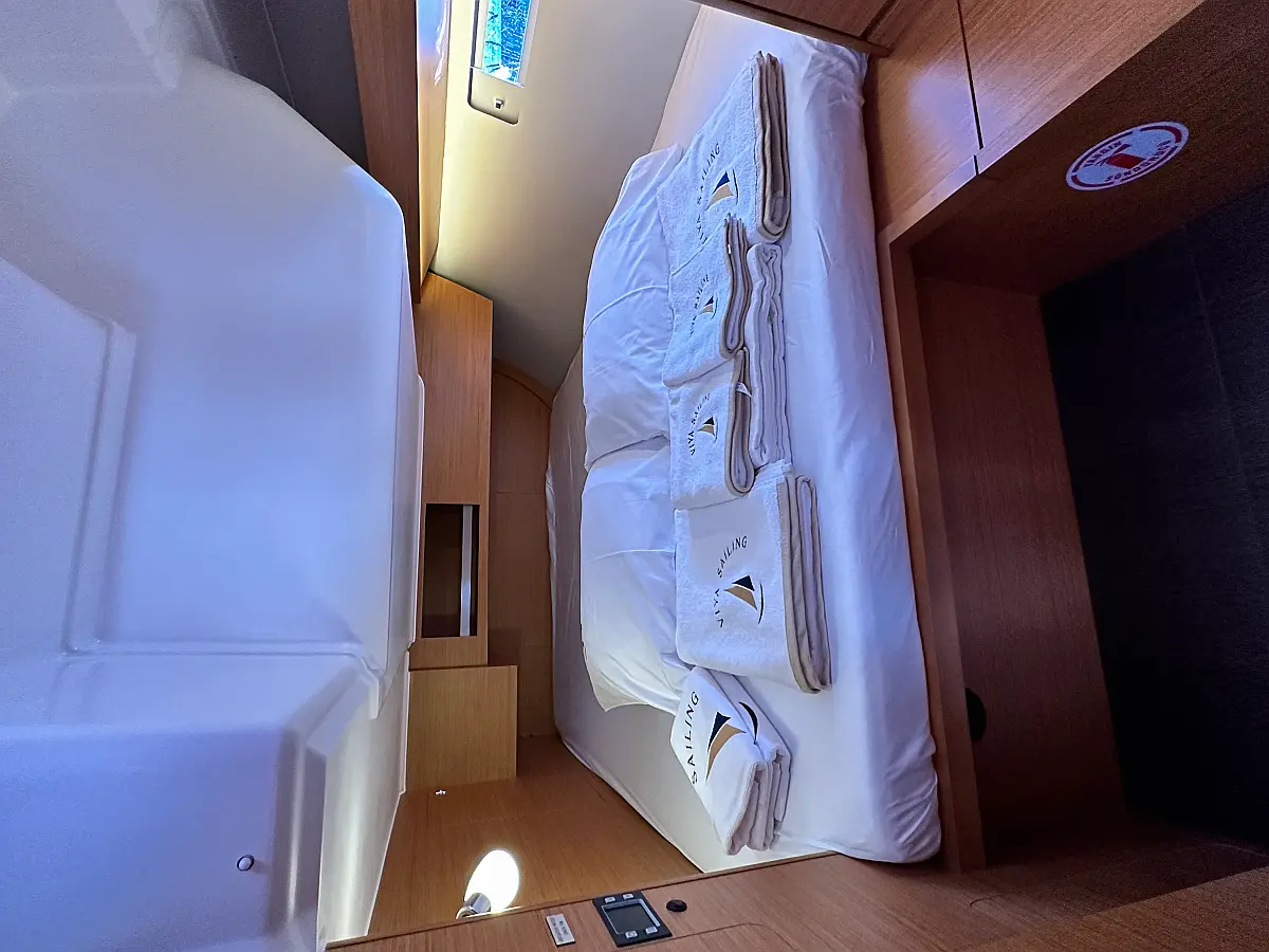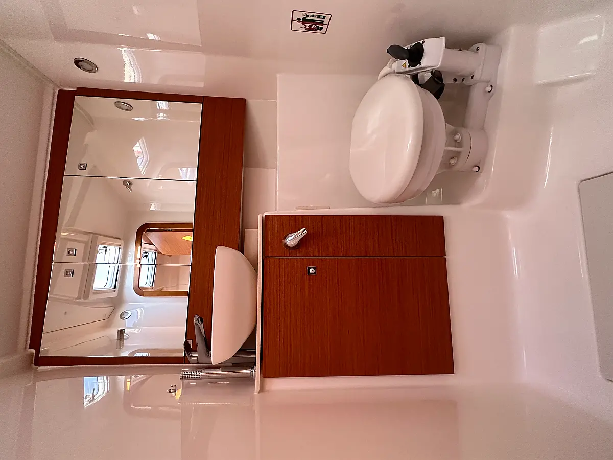 Solar Panels, Inverter, Outboard engine, Bimini, Cockpit cushions, Swimming platform, Barbecue grill in cockpit, Refrigerator, Electric toilet