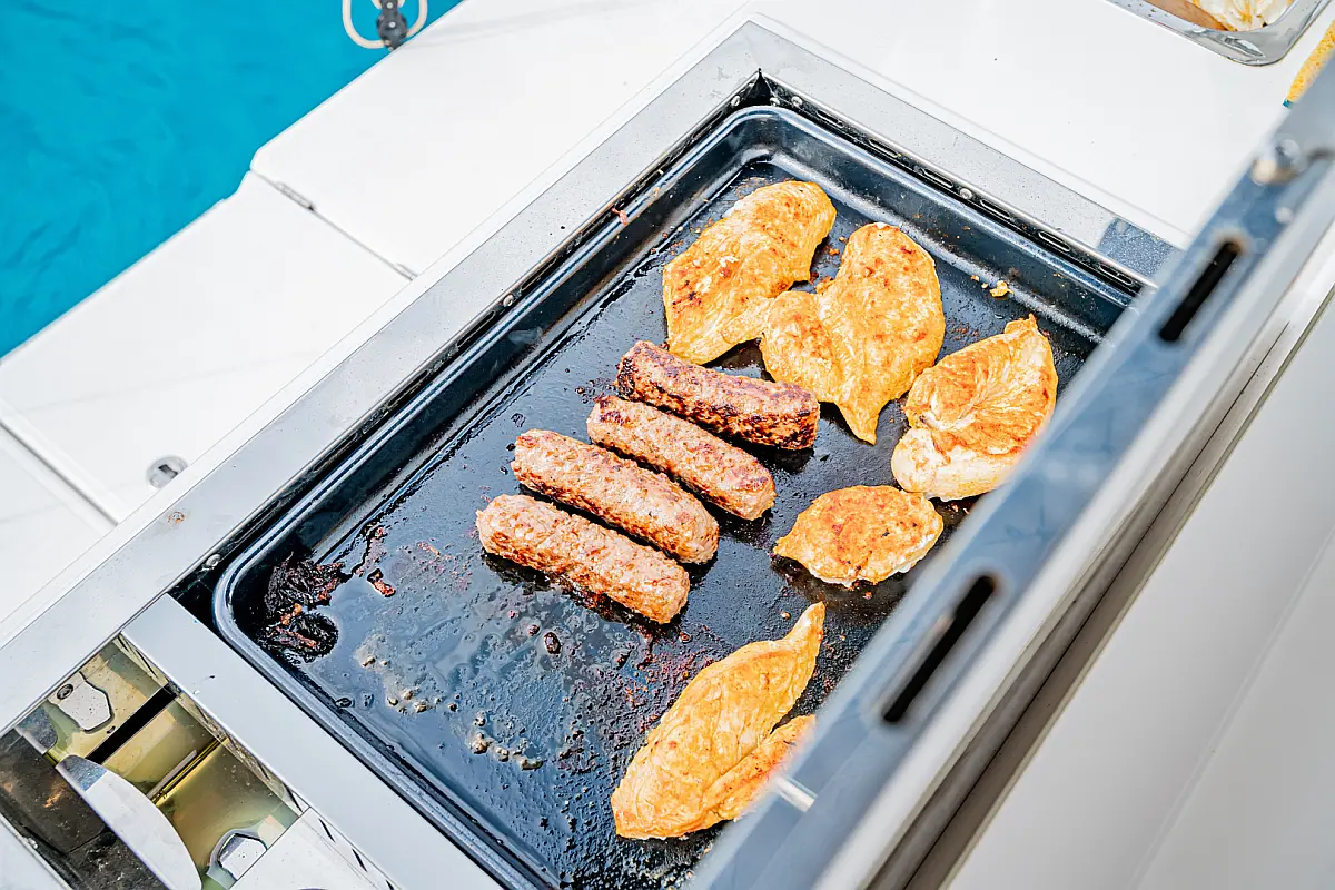 Electric winches, Sprayhood, Cockpit cushions, Ice maker, Water maker