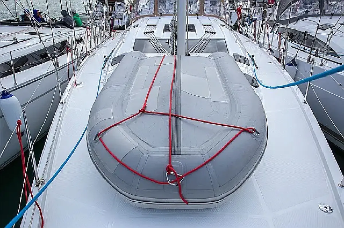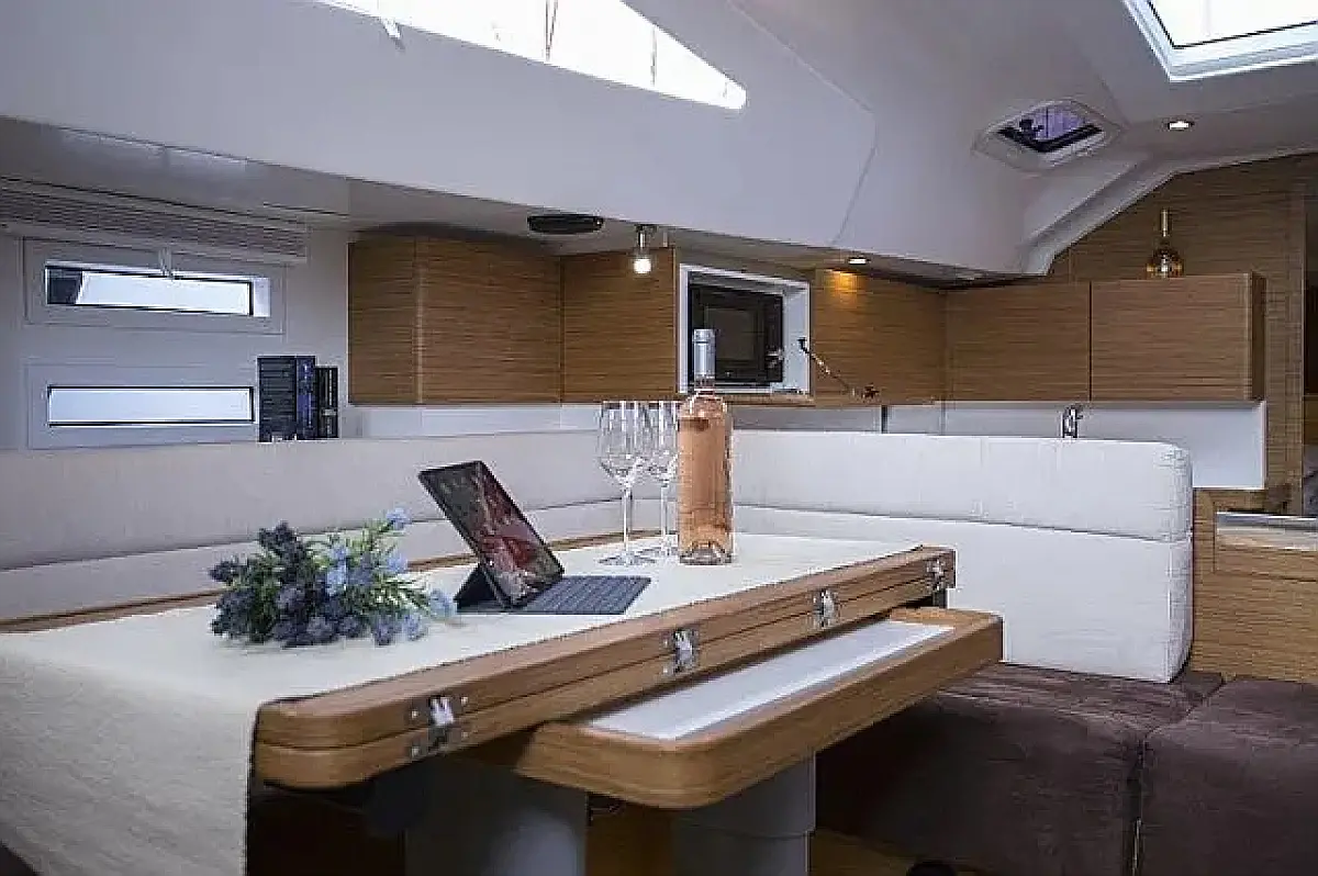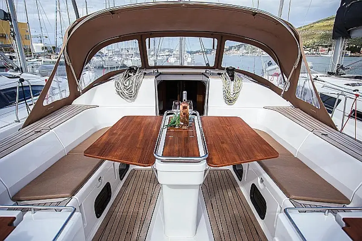 Air condition, Swimming platform, Bimini, Cockpit cushions, Cockpit speakers, Dinghy, Refrigerator, Electric toilet, Heating, Holding tank, Sprayhood, Teak Cockpit, Wi-Fi & Internet