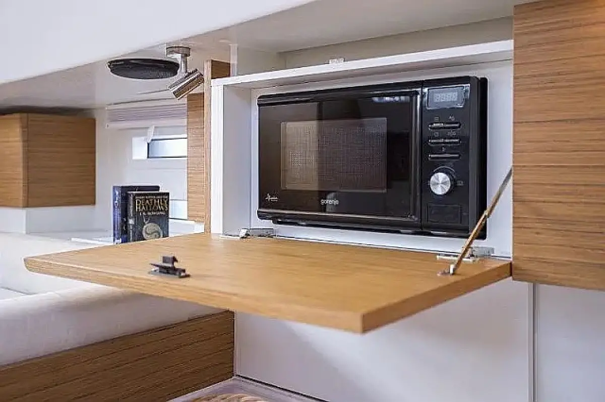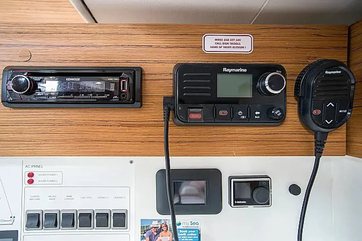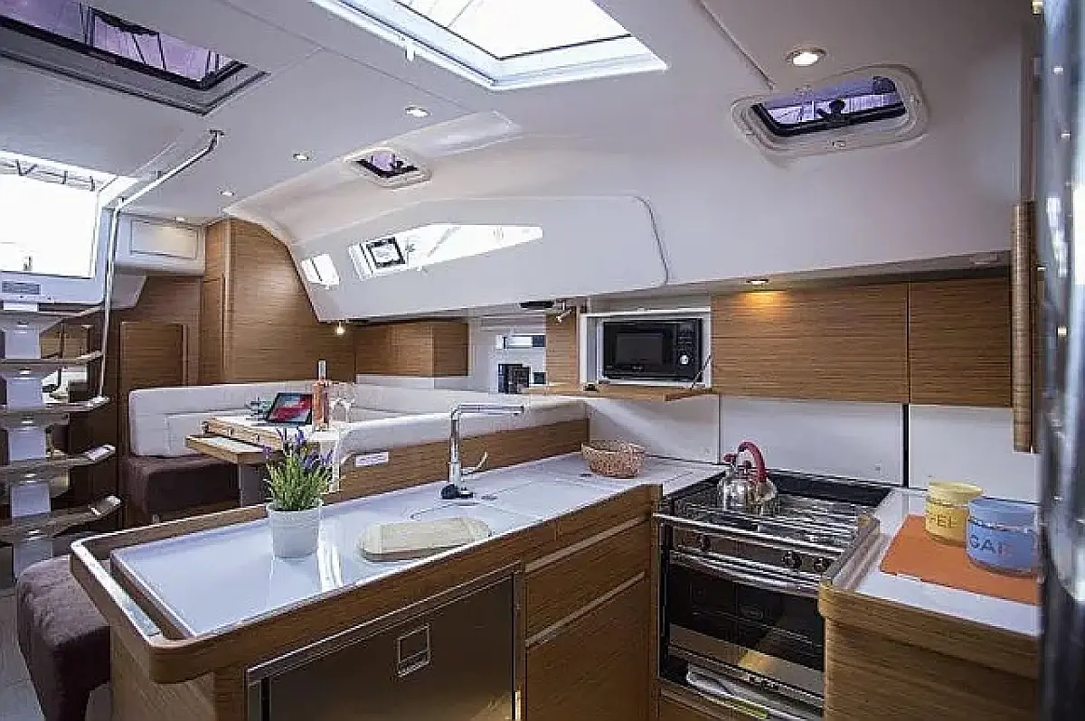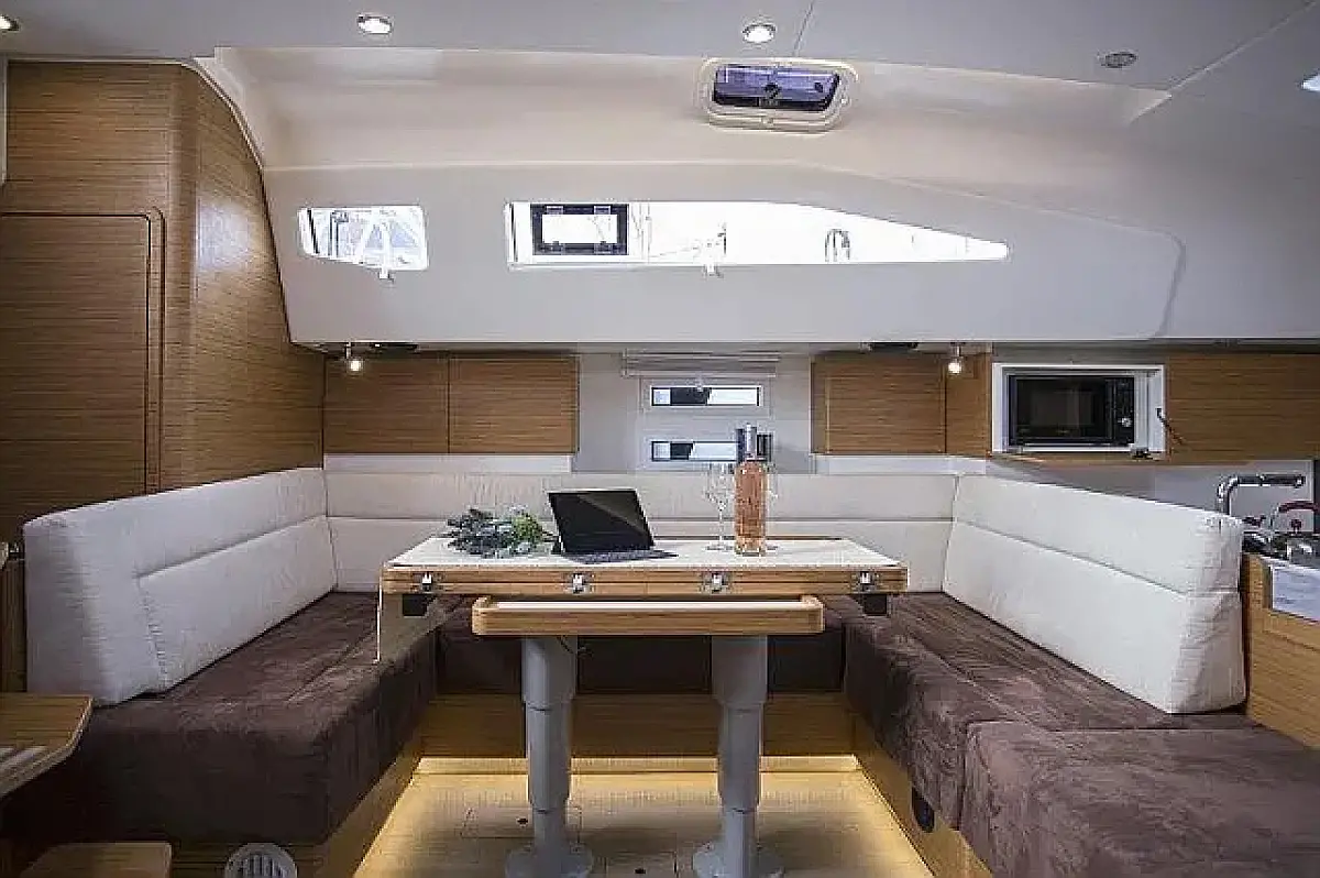 Air condition, Swimming platform, Bimini, Cockpit cushions, Cockpit speakers, Dinghy, Refrigerator, Electric toilet, Heating, Holding tank, Sprayhood, Teak Cockpit, Wi-Fi & Internet