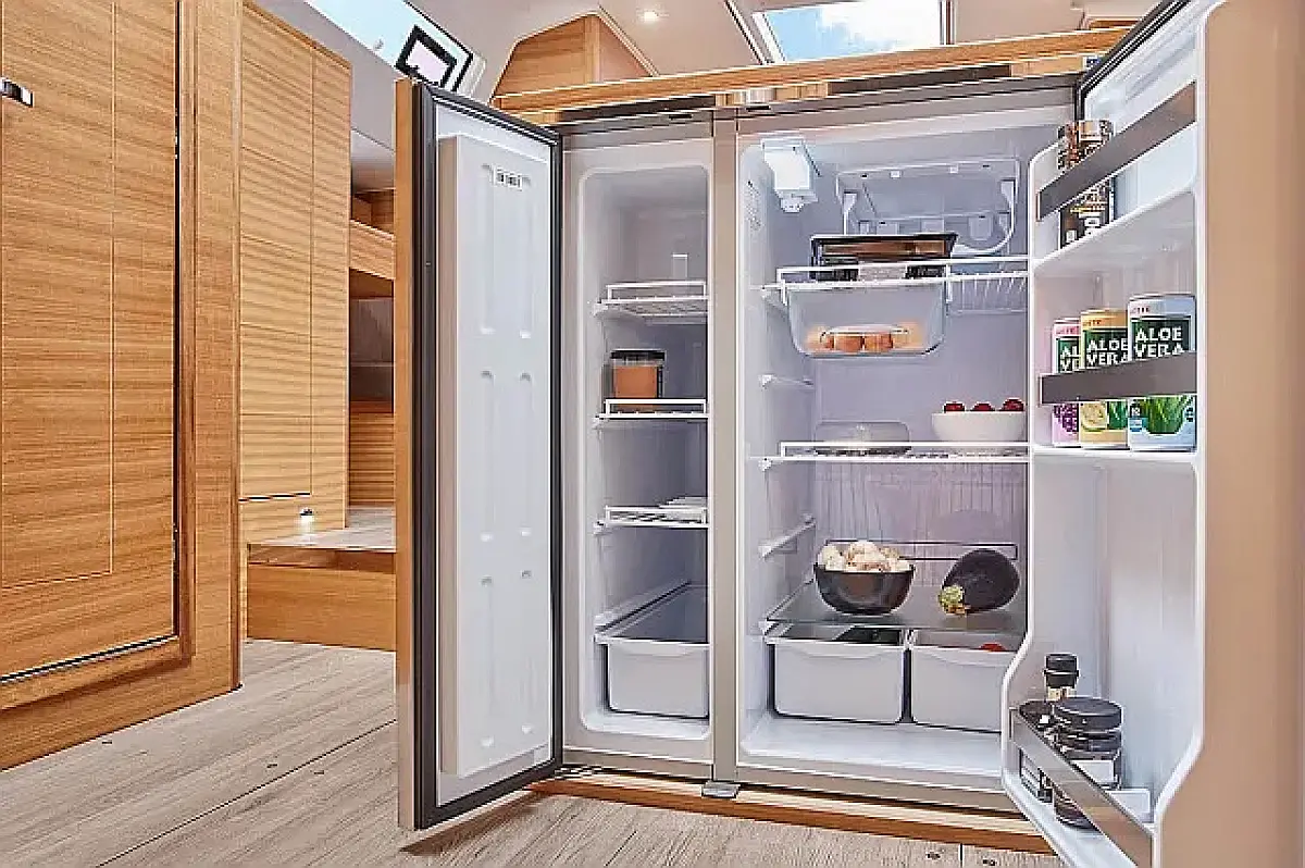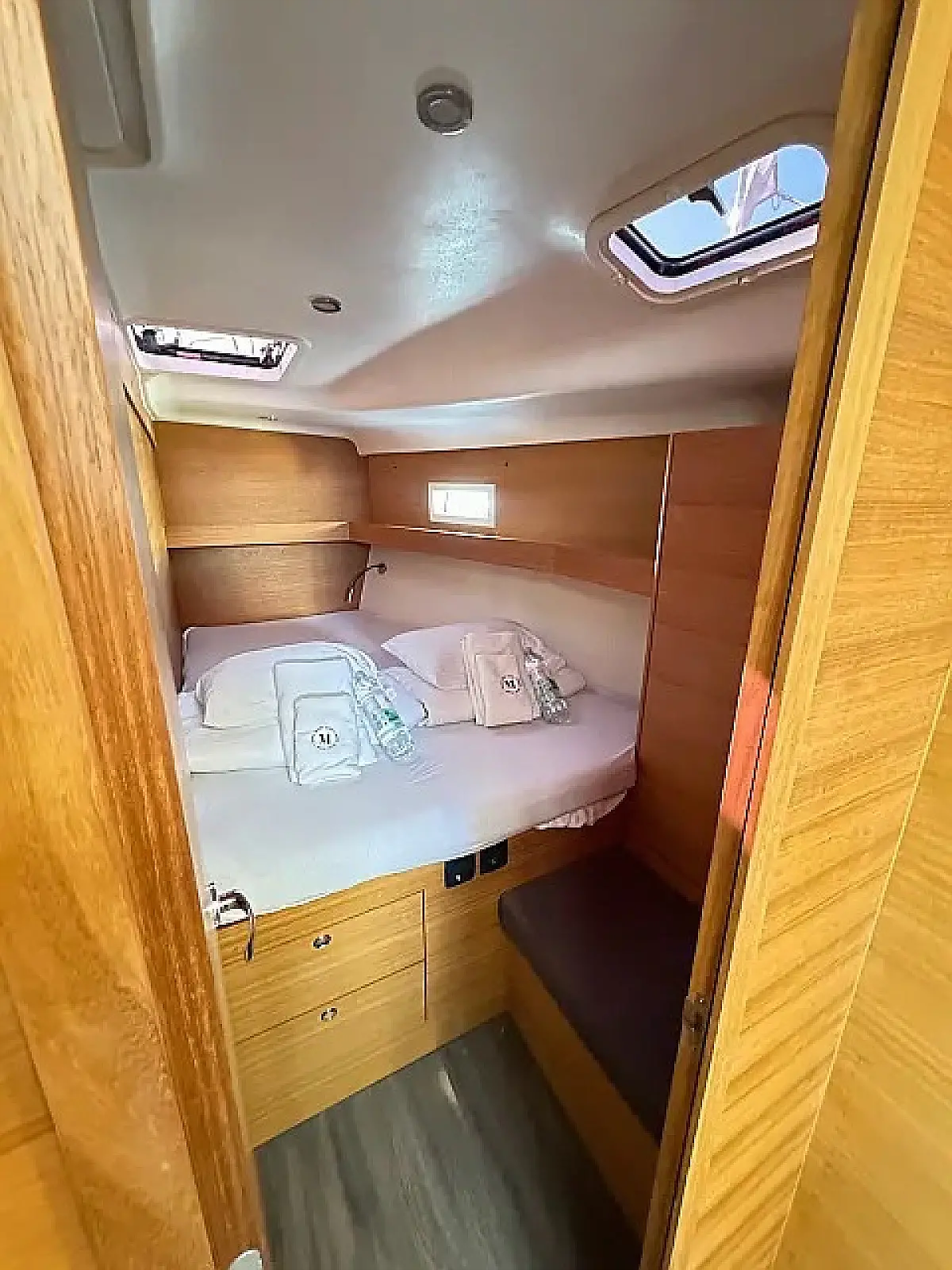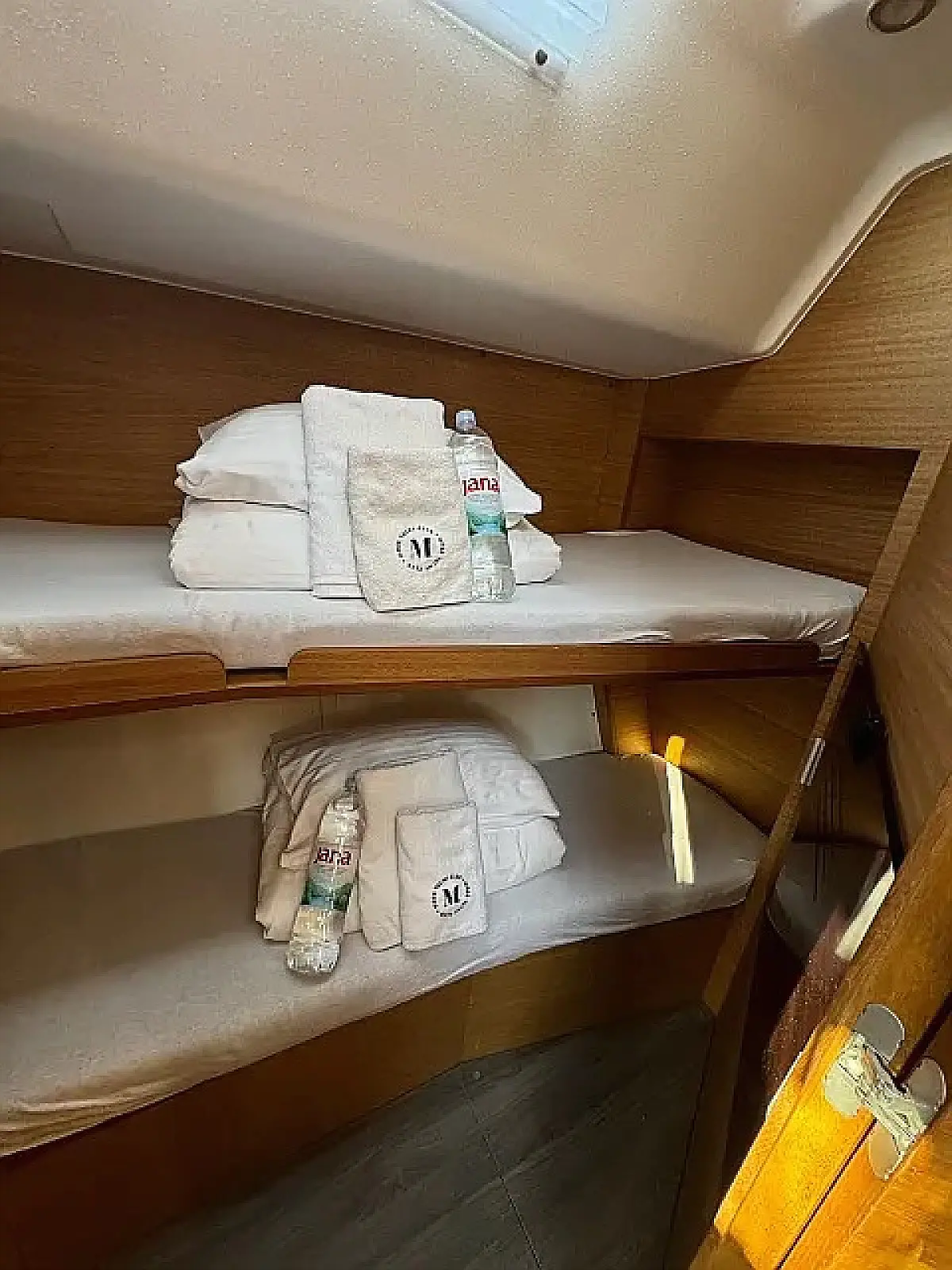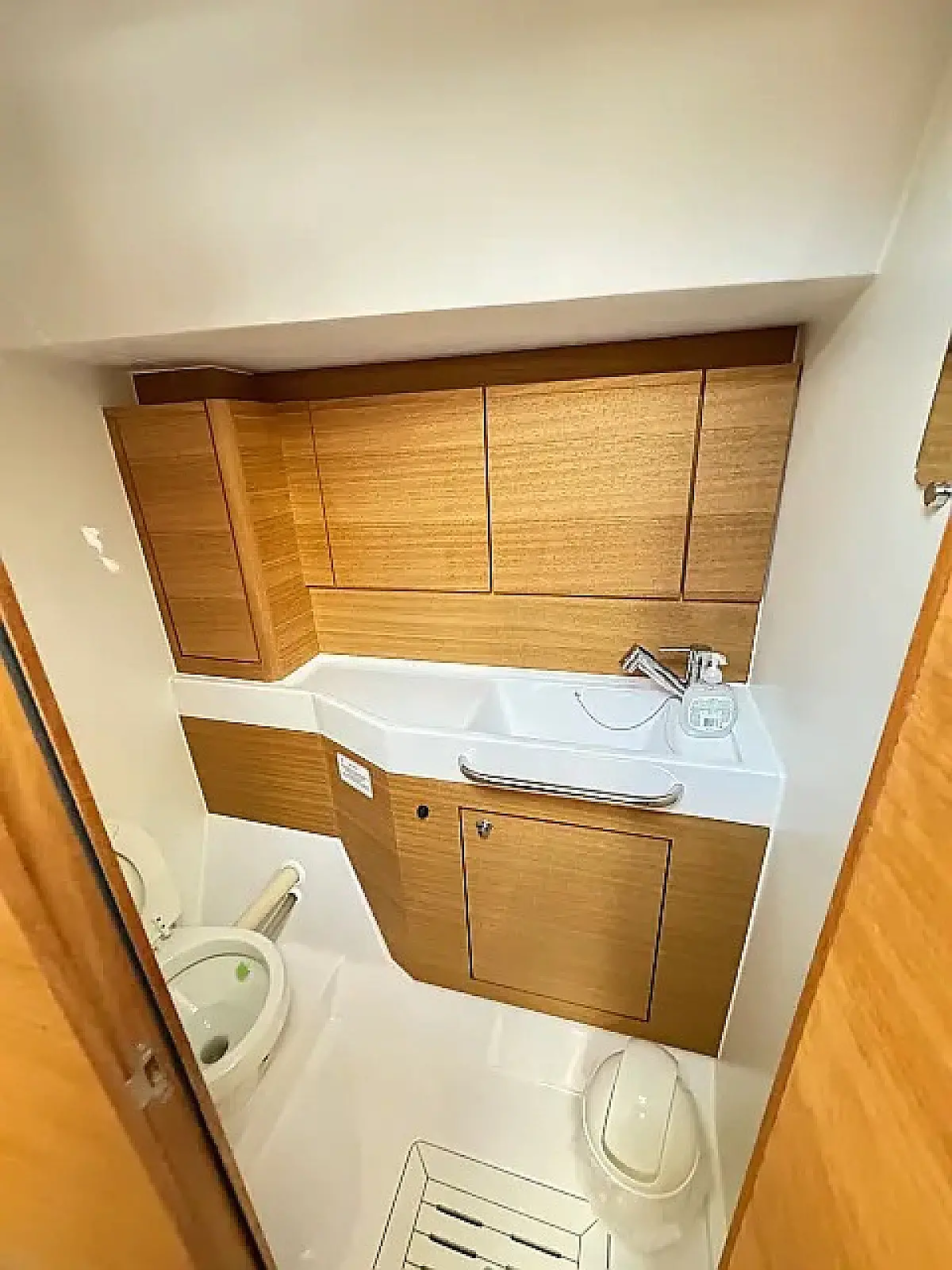 Refrigerator, Swimming platform, Bimini, Cockpit cushions, Cockpit speakers, Dinghy, Heating, Holding tank, Sprayhood, Teak Cockpit, Wi-Fi & Internet