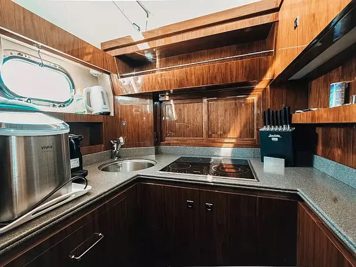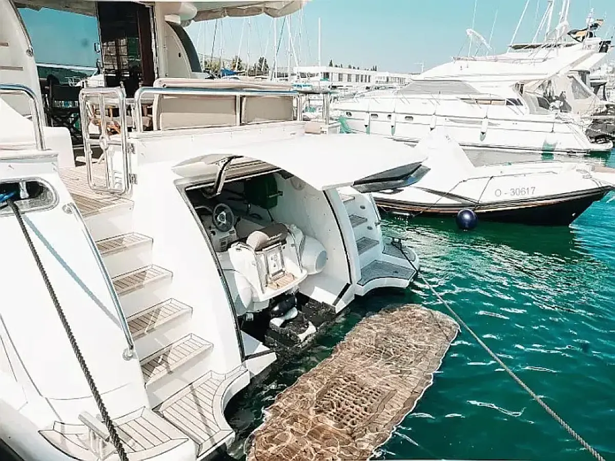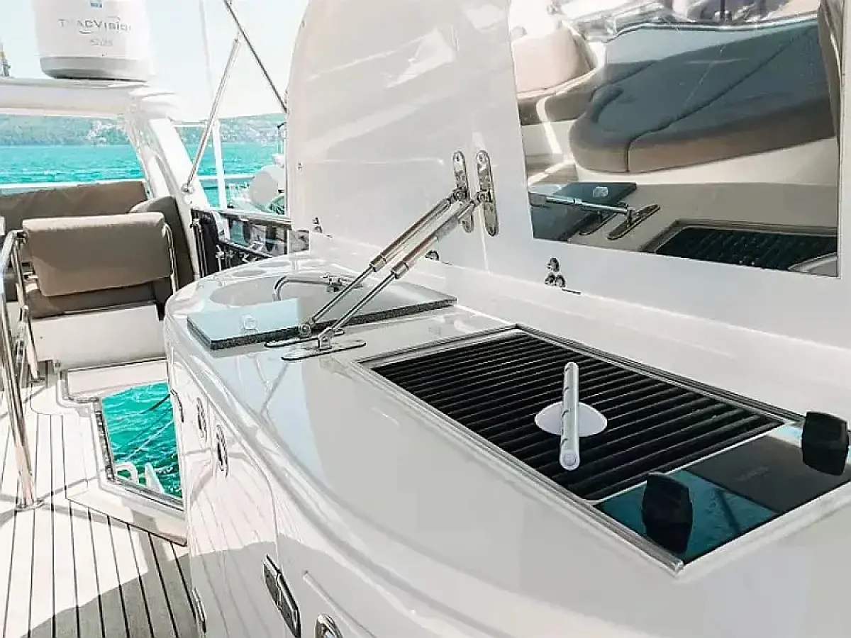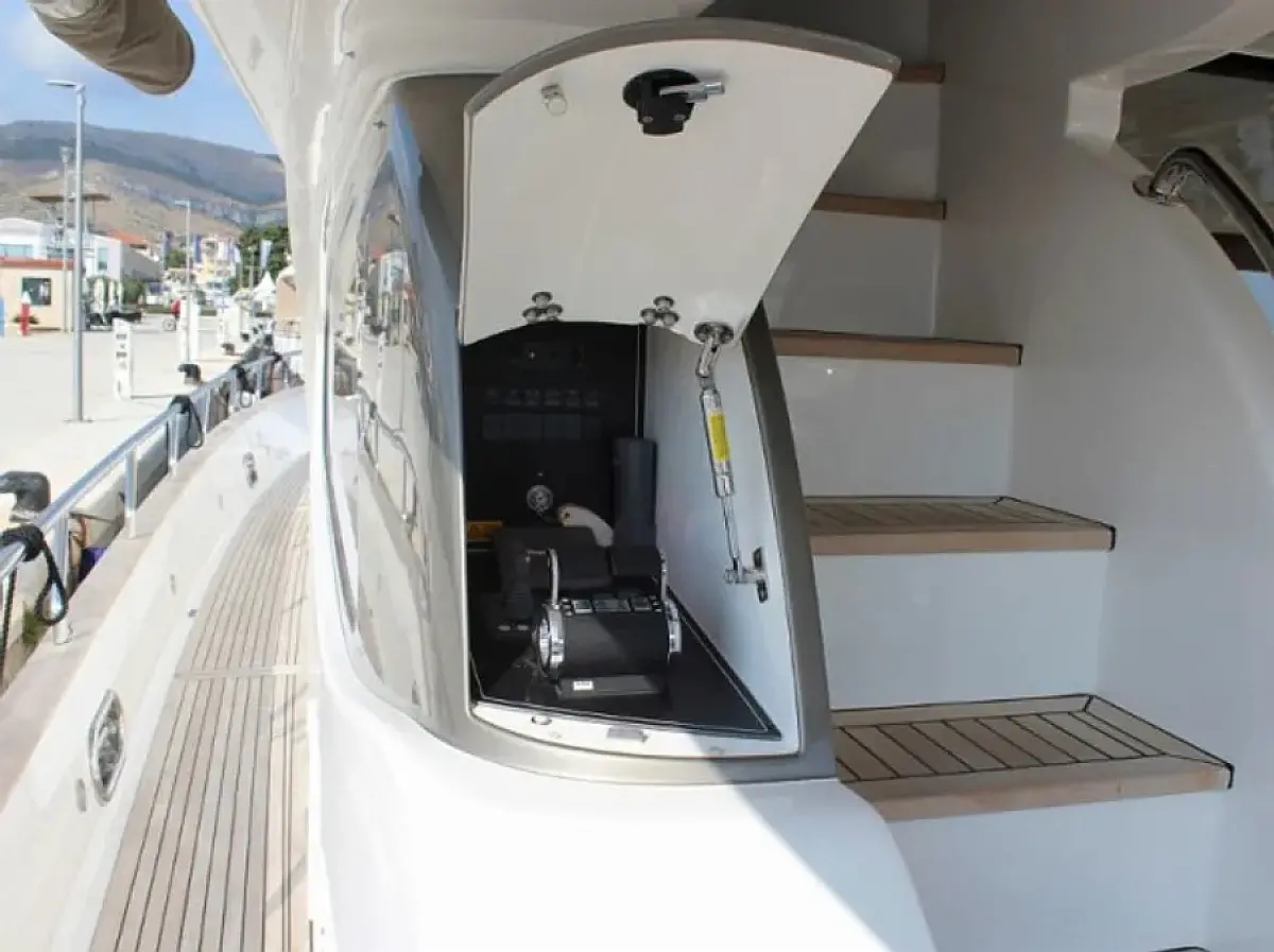 Air condition, Dinghy, Dishwasher, Generator, Heating, Swimming platform, Hydraulic gangway, Washer/Dryer, Outboard engine, Refrigerator, Water maker, Coffee maker, Flybridge