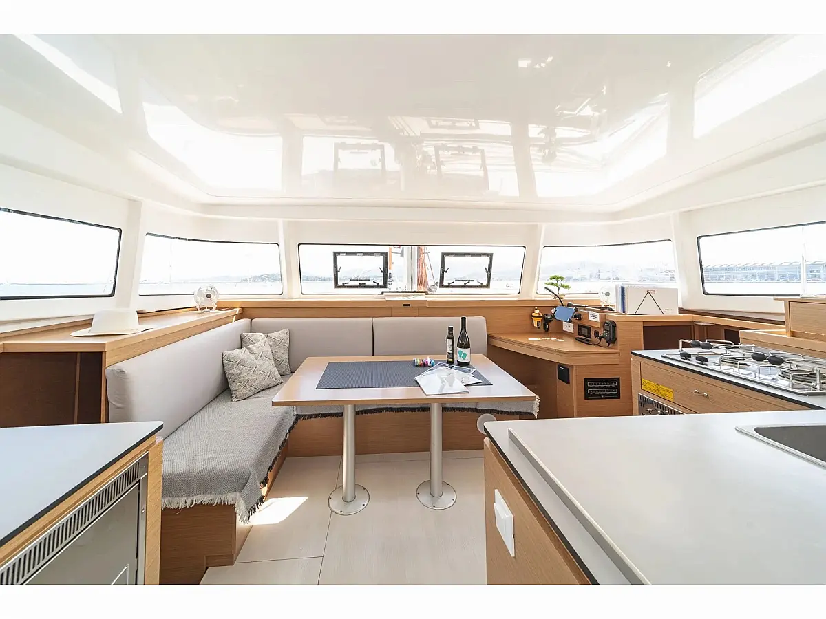 Cockpit speakers, Swimming platform, Bimini, Refrigerator, Solar Panels, Dinghy, Outboard engine, Wi-Fi & Internet