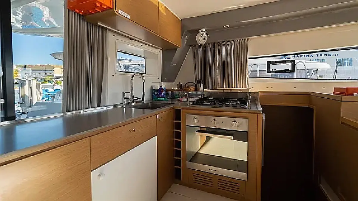 Air condition, Cockpit cushions, Cockpit speakers, Dinghy, Coffee maker, Refrigerator, Electric toilet, Generator, Heating, Holding tank, Inverter, Outboard engine, Water maker, Wi-Fi & Internet