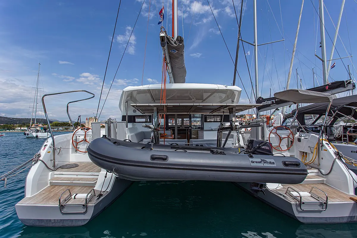 Air condition, Bimini, Cockpit cushions, Dinghy, Electric toilet, Ice maker, Outboard engine, Refrigerator, Solar Panels, Water maker, Wi-Fi & Internet