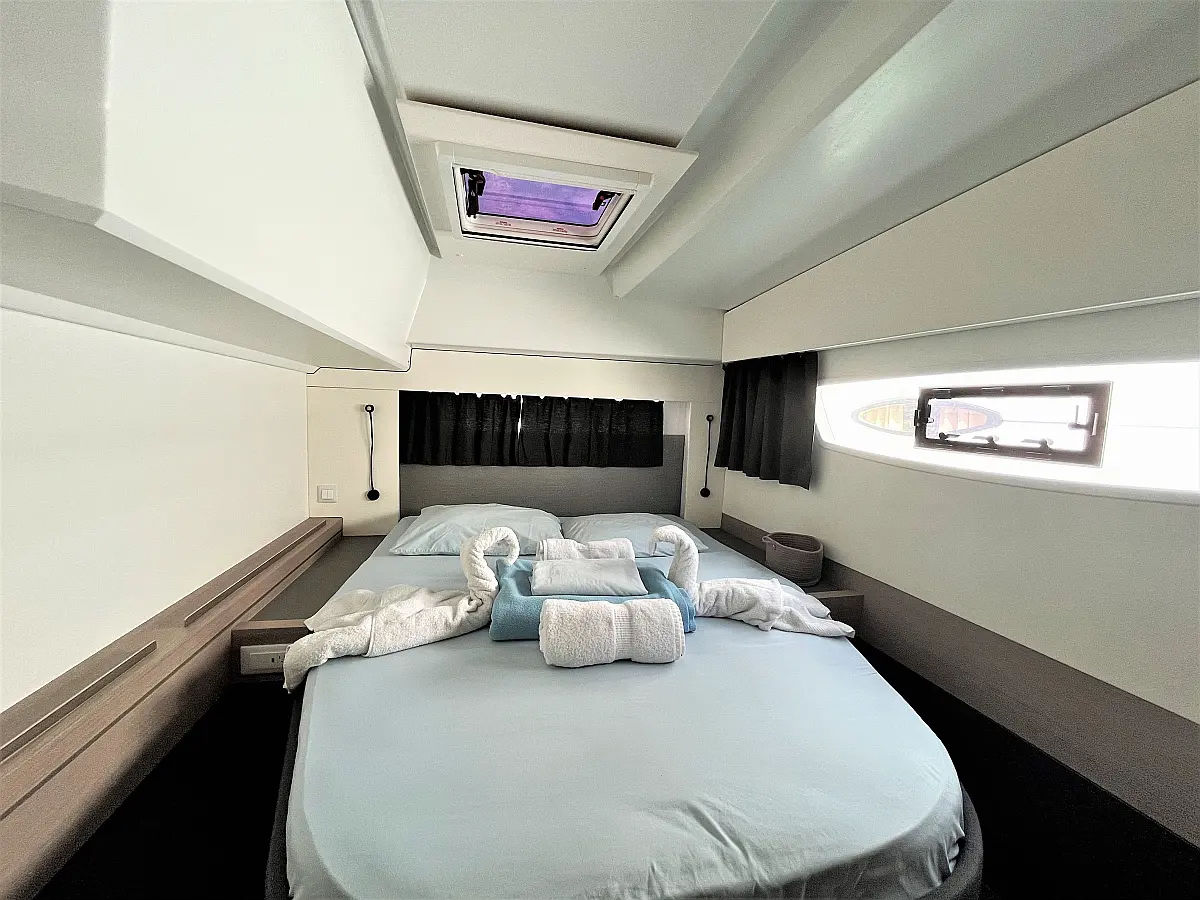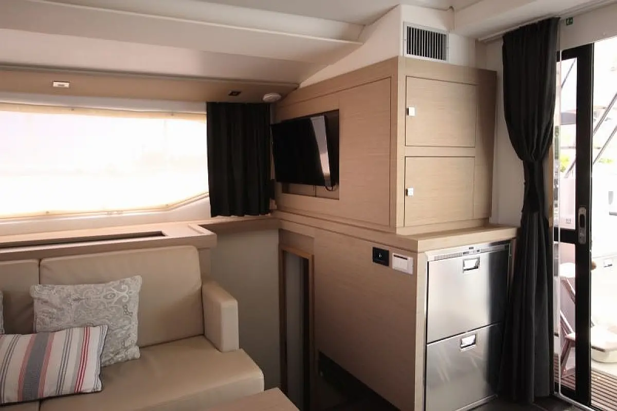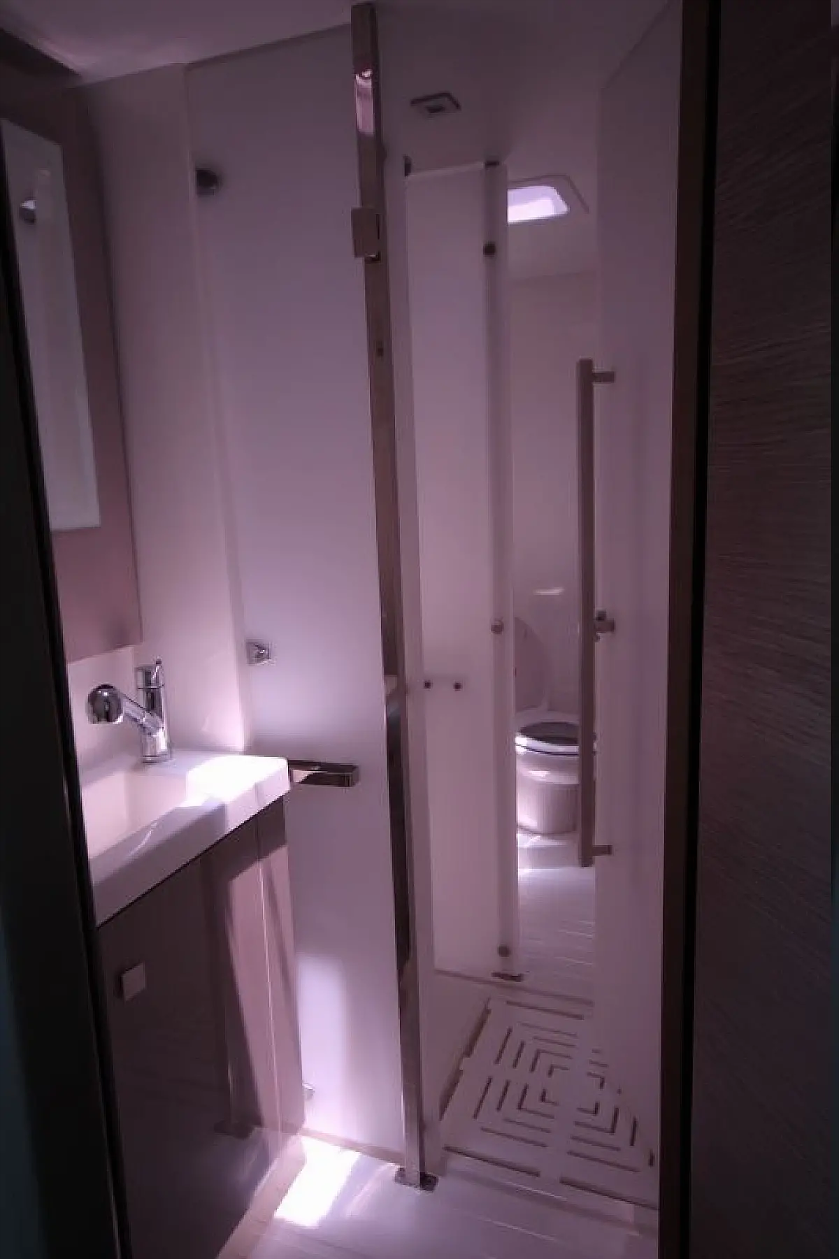 Coffee maker, Refrigerator, Wi-Fi & Internet, Inverter, Dinghy, Electric toilet, Air condition, Generator, Cockpit cushions, Solar Panels, Cockpit speakers, Bimini