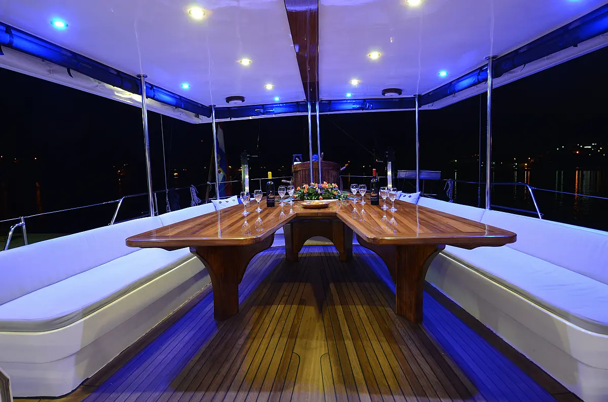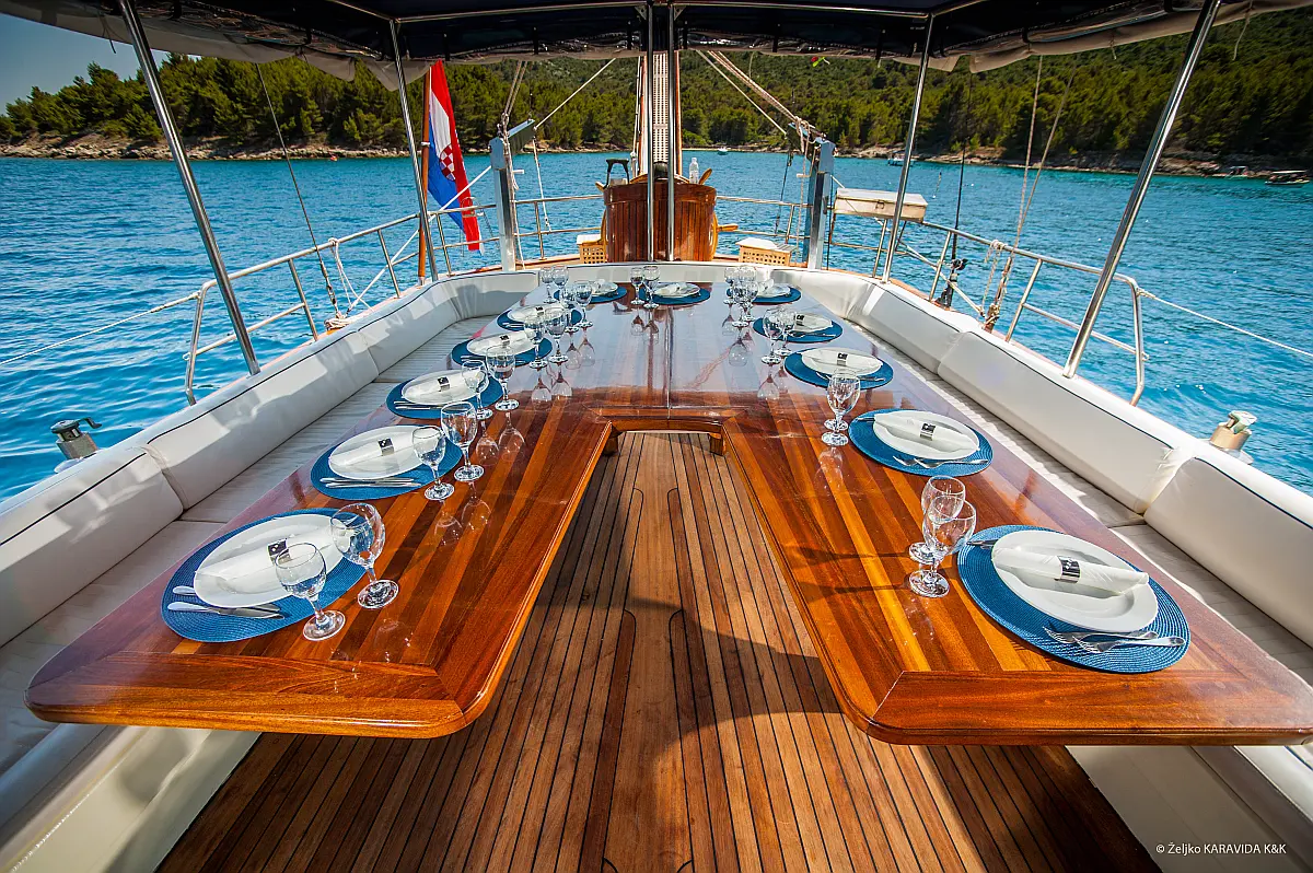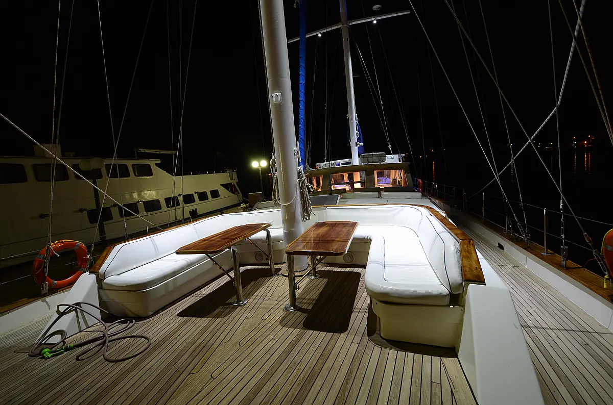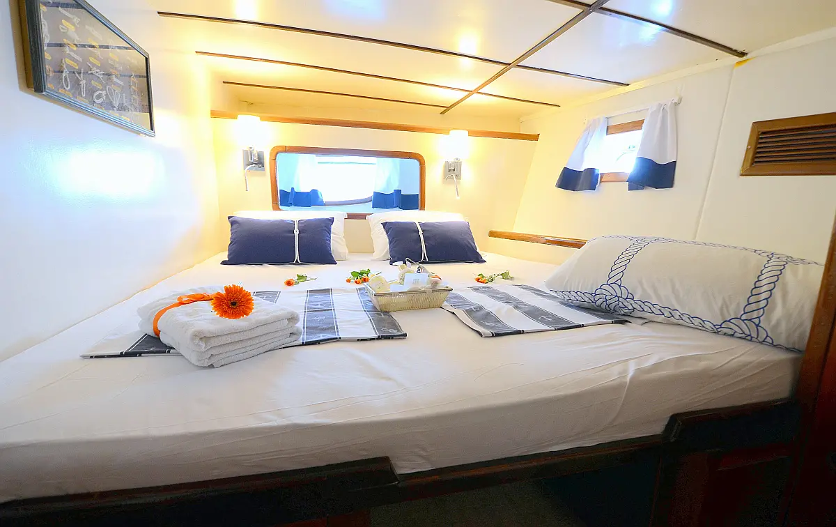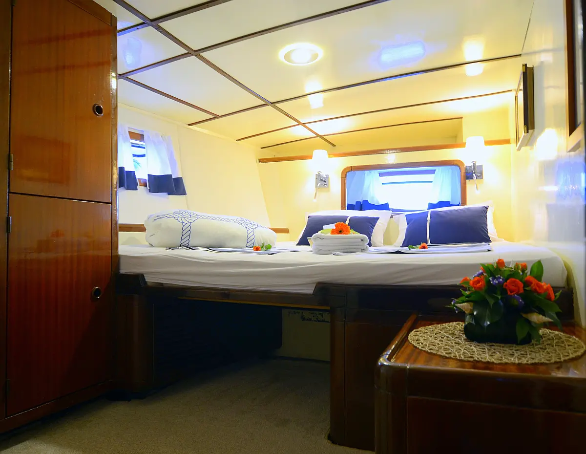 108 ft Length 6 Cabins 12 Max Guests 7 Heads Technical Specifications Draught: 11 ft Engine: 2x306 HP Volvo Penta Water capacity: 4000.00 l Main sail: None Displacement: N/A Fuel capacity: 7000.00 l Beam: 21 ft Genoa: None Equipment Comfort: Coffee maker, Refrigerator, Ice maker, Air condition, Wi-Fi & Internet Entertainment: Snorkeling equipment, TV, Stand up paddle Documents Download Brochure