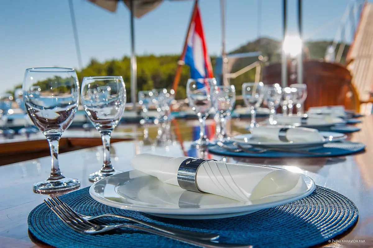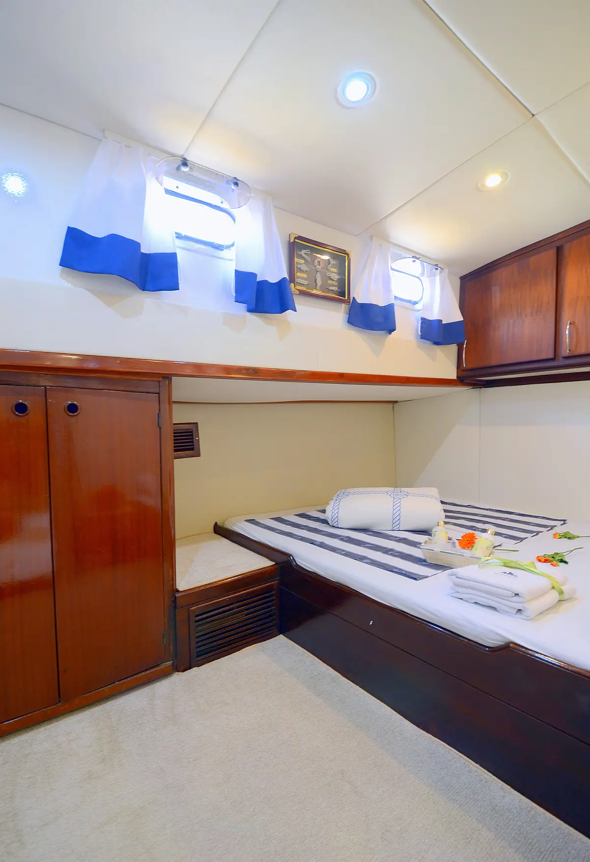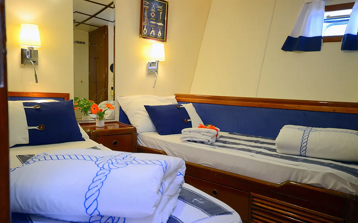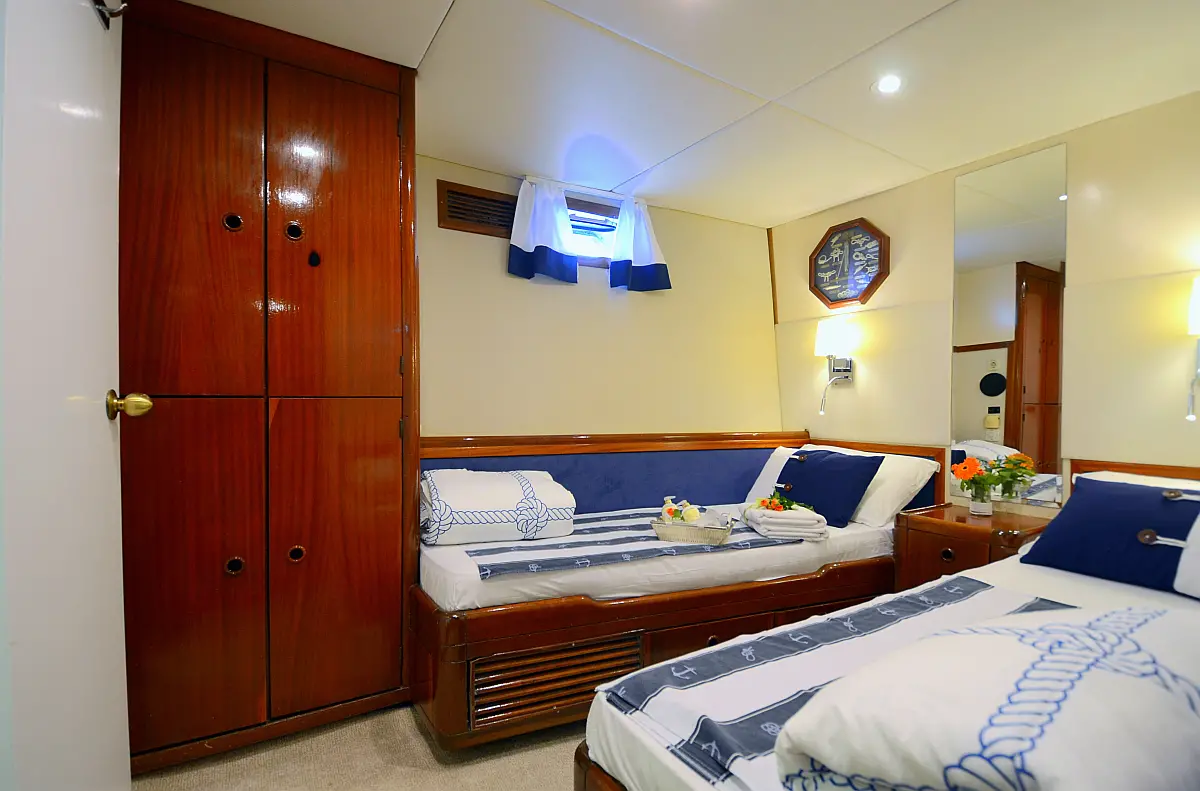 108 ft Length 6 Cabins 12 Max Guests 7 Heads Technical Specifications Draught: 11 ft Engine: 2x306 HP Volvo Penta Water capacity: 4000.00 l Main sail: None Displacement: N/A Fuel capacity: 7000.00 l Beam: 21 ft Genoa: None Equipment Comfort: Coffee maker, Refrigerator, Ice maker, Air condition, Wi-Fi & Internet Entertainment: Snorkeling equipment, TV, Stand up paddle Documents Download Brochure