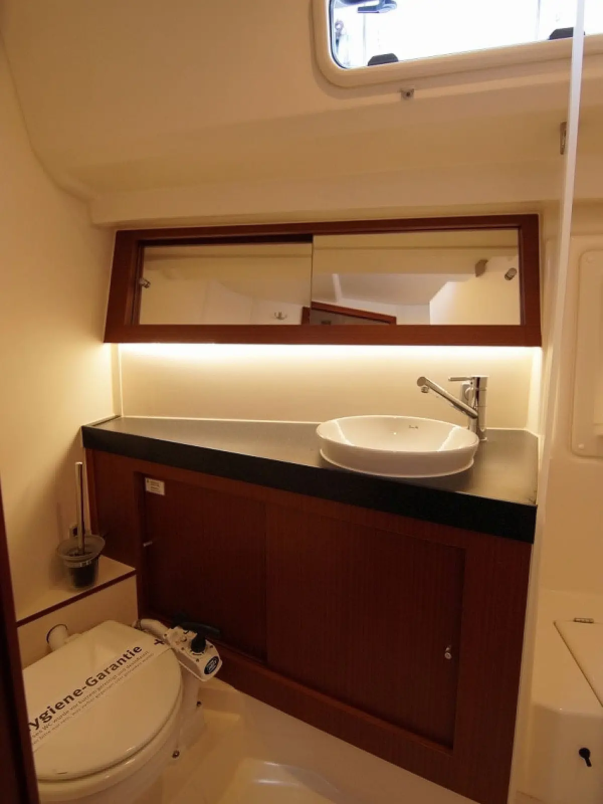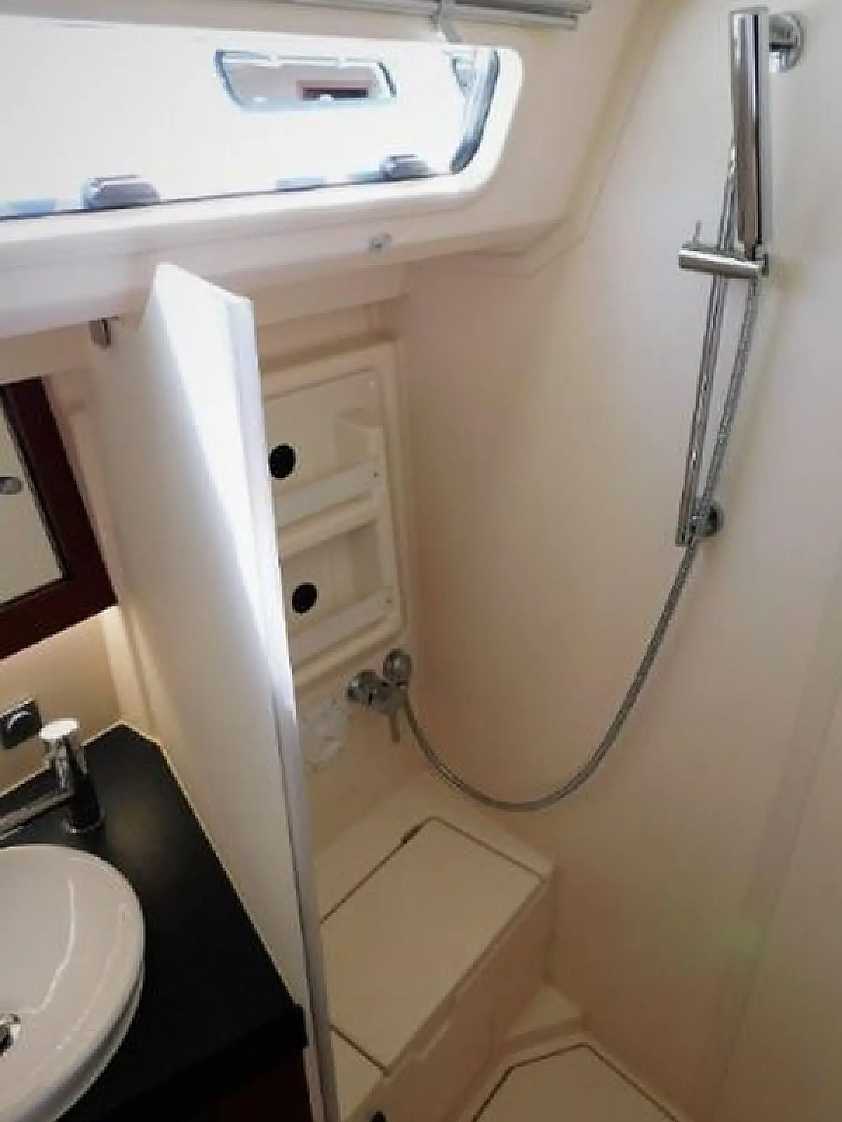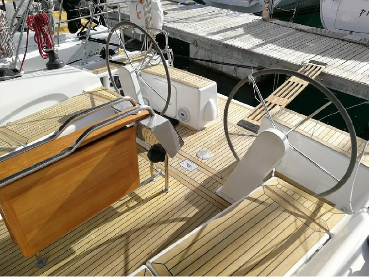 Holding tank, Outboard engine, Cockpit speakers, Dinghy, Sprayhood, Solar Panels, Bimini, Swimming platform, Teak Cockpit, Refrigerator