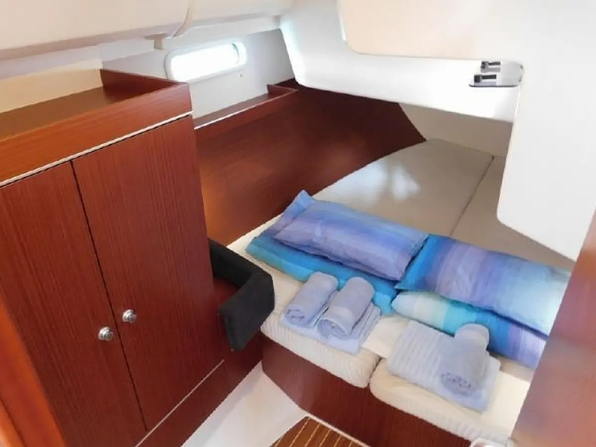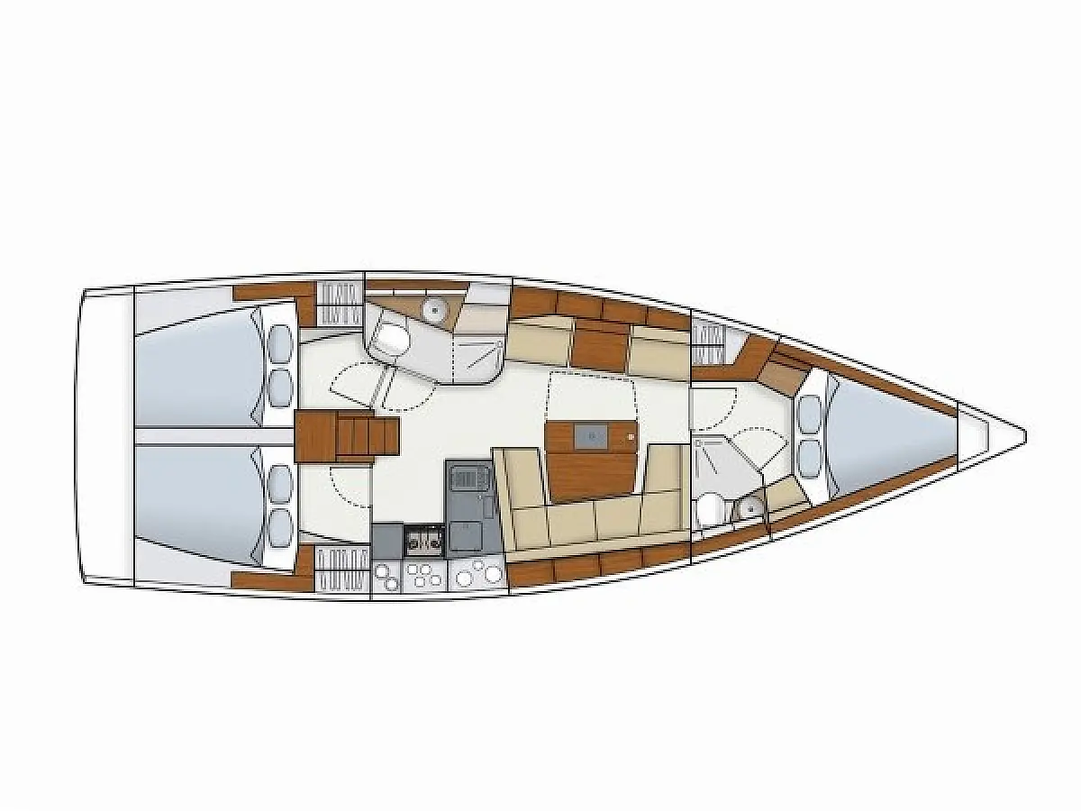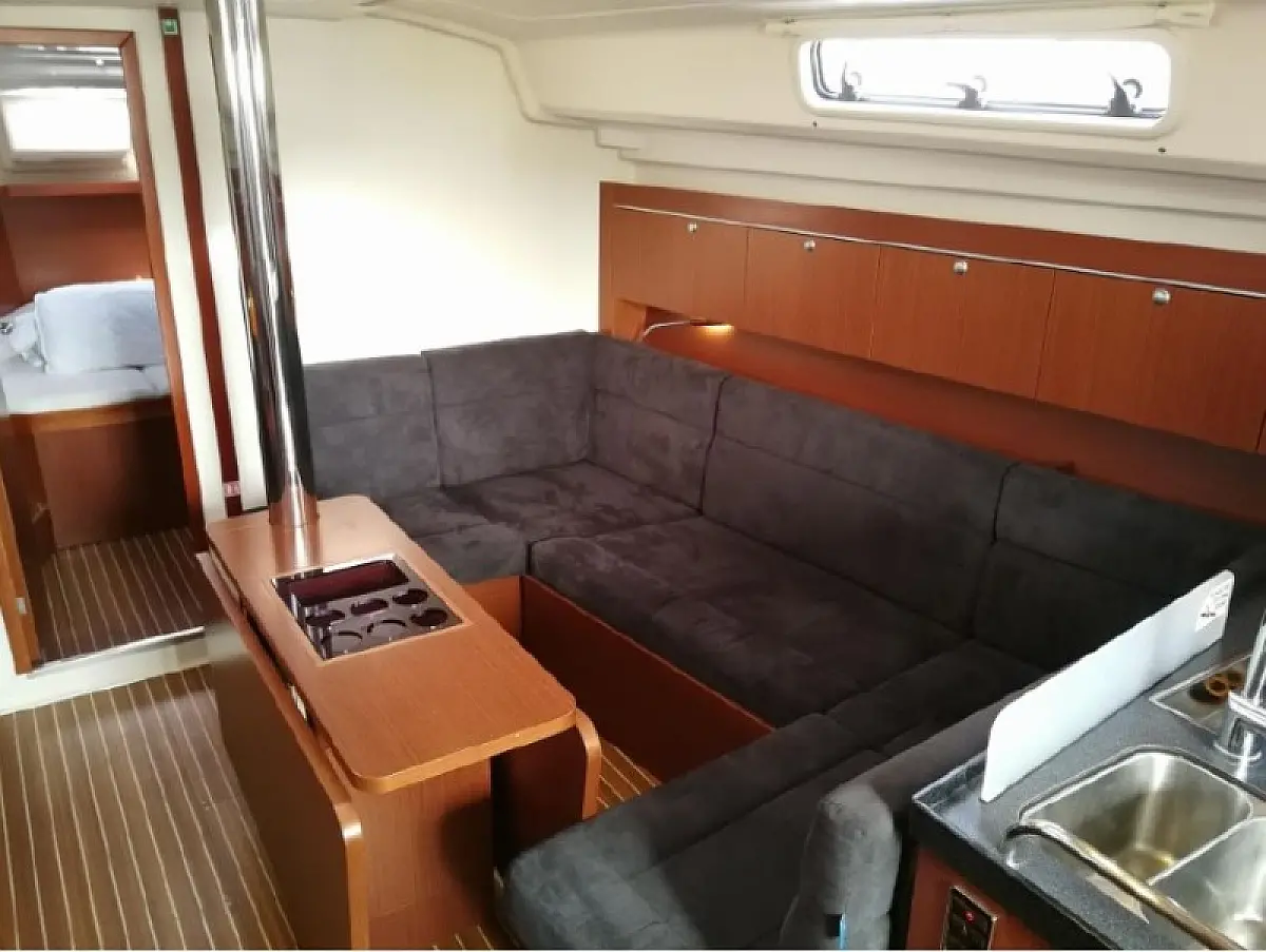 Holding tank, Outboard engine, Cockpit speakers, Dinghy, Sprayhood, Solar Panels, Bimini, Swimming platform, Teak Cockpit, Refrigerator