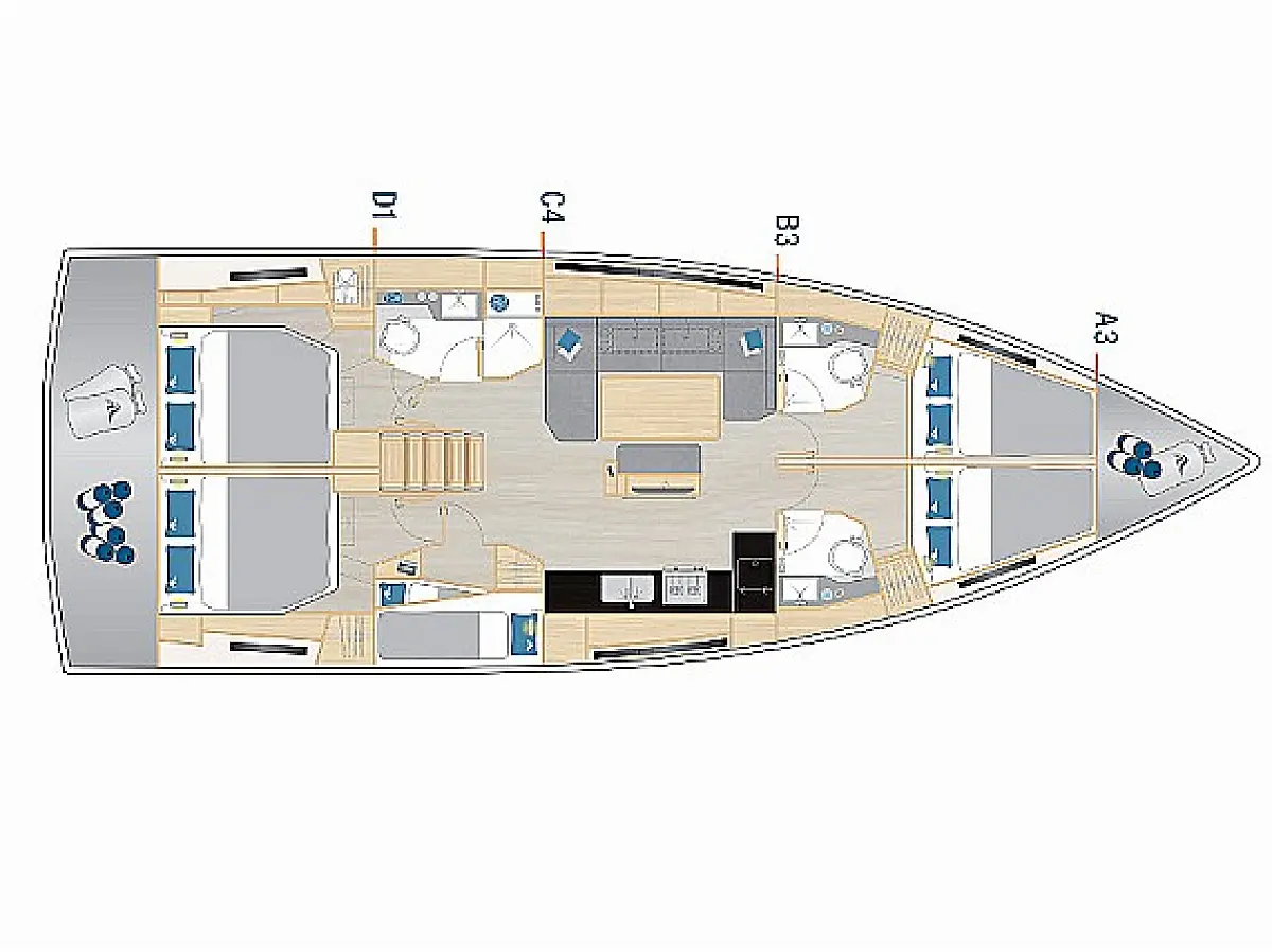 Inverter, Refrigerator, Heating, Dinghy, Bimini, Sprayhood, Cockpit speakers, Teak Cockpit, Cockpit cushions
