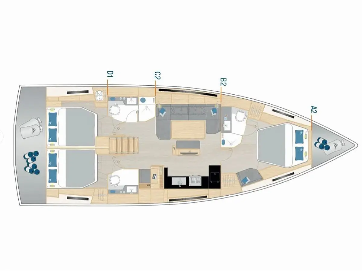 Air condition, Generator, Bimini, Cockpit cushions, Dinghy, Refrigerator, Outboard engine, Sprayhood