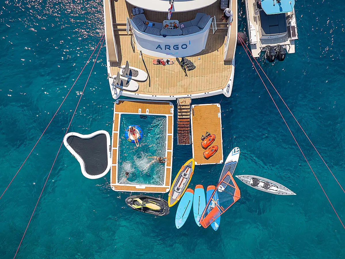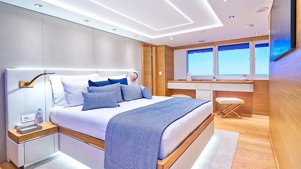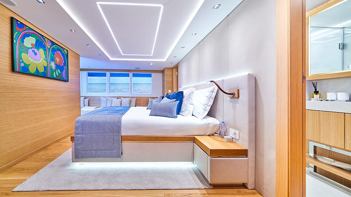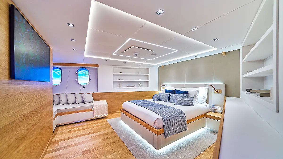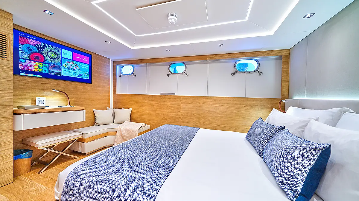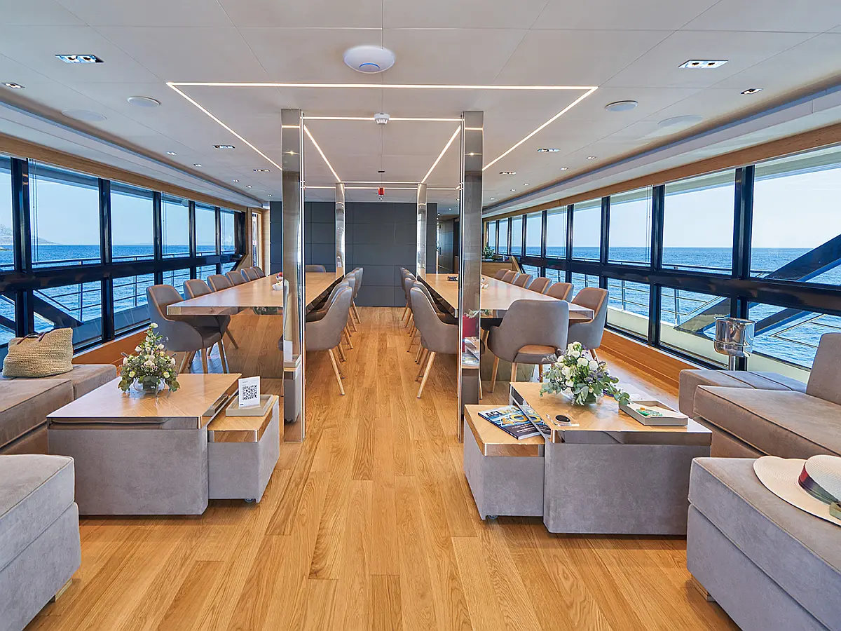 180 ft Length 13 (11 Double Cabins, 2 Twin Cabins) + crew Cabins 26 Max Guests 13 Heads Technical Specifications Draught: 10 ft Engine: BAUDOUUIN Water capacity: N/A Main sail: None Displacement: N/A Fuel capacity: N/A Beam: 30 ft Genoa: None Equipment Entertainment: Snorkeling equipment, Stand up paddle Comfort: Dinghy, Swimming pool, Air condition, Wi-Fi & Internet Documents Download Brochure Download Brochure Download Brochure