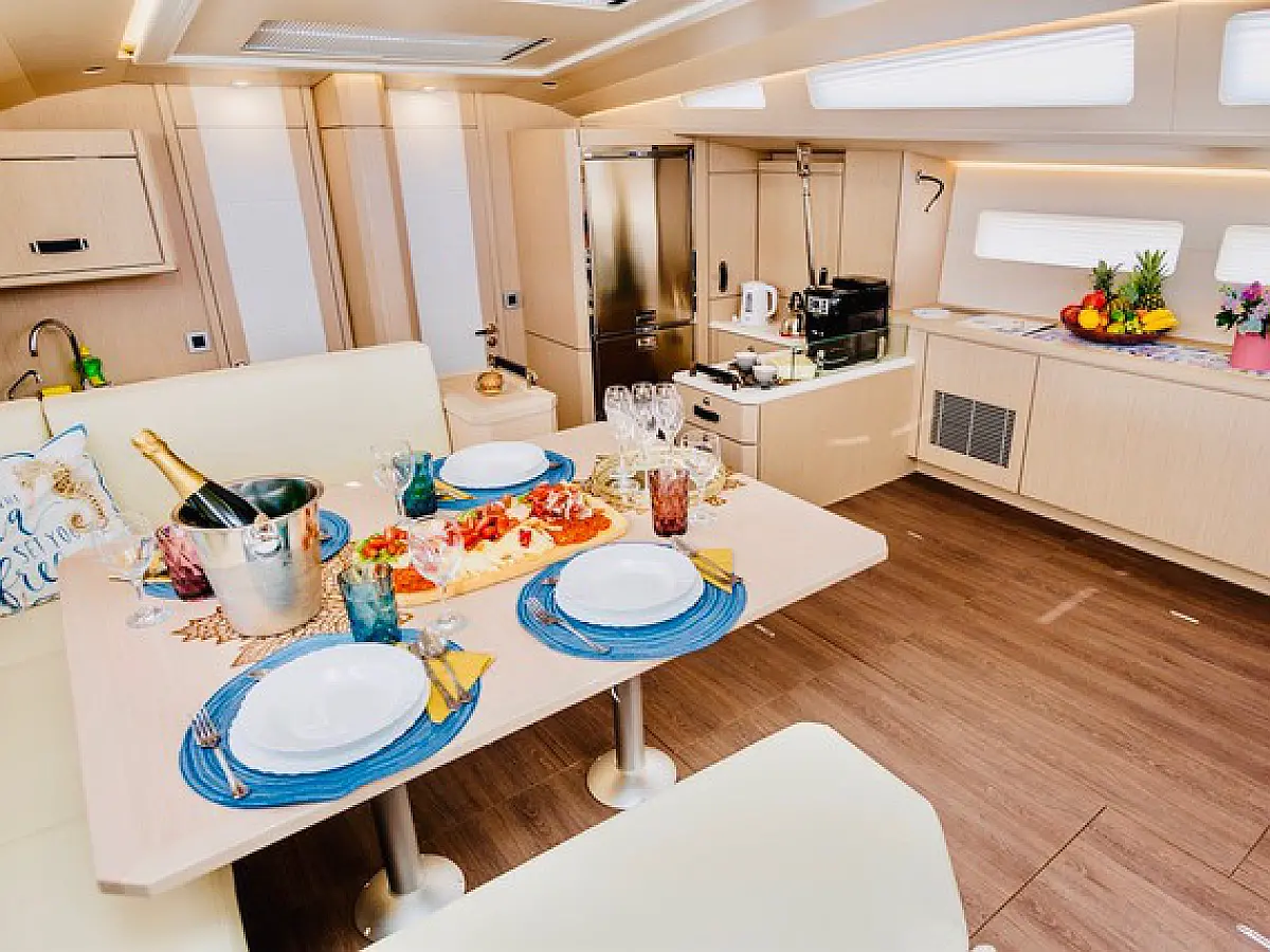 Dinghy, Electric toilet, Refrigerator, Generator, Air condition, Water maker