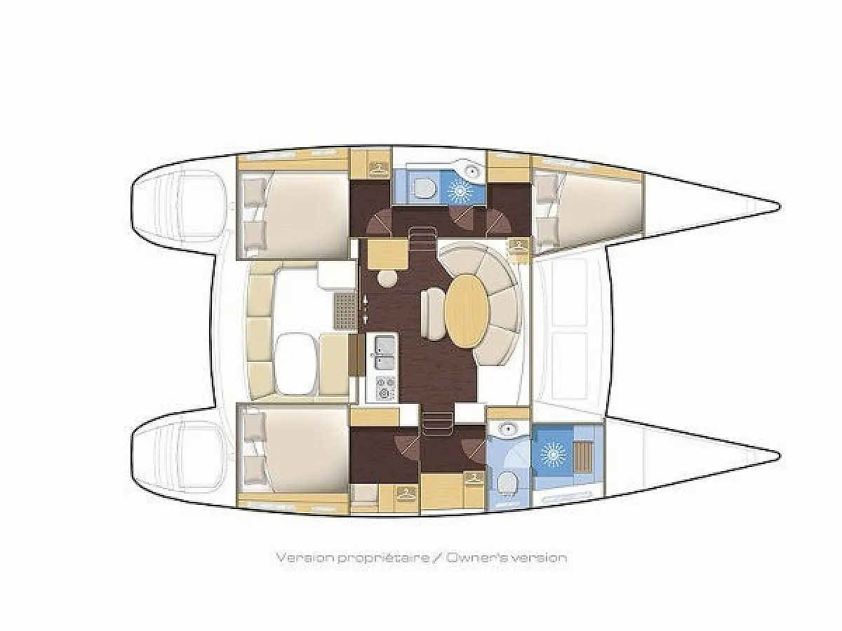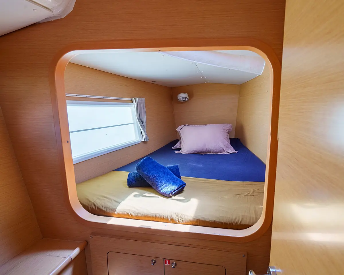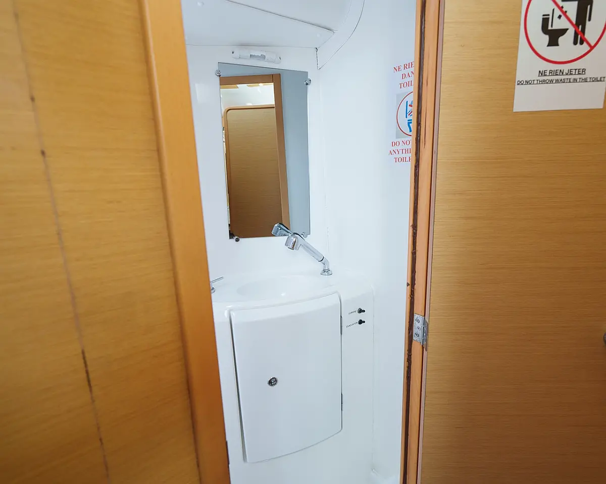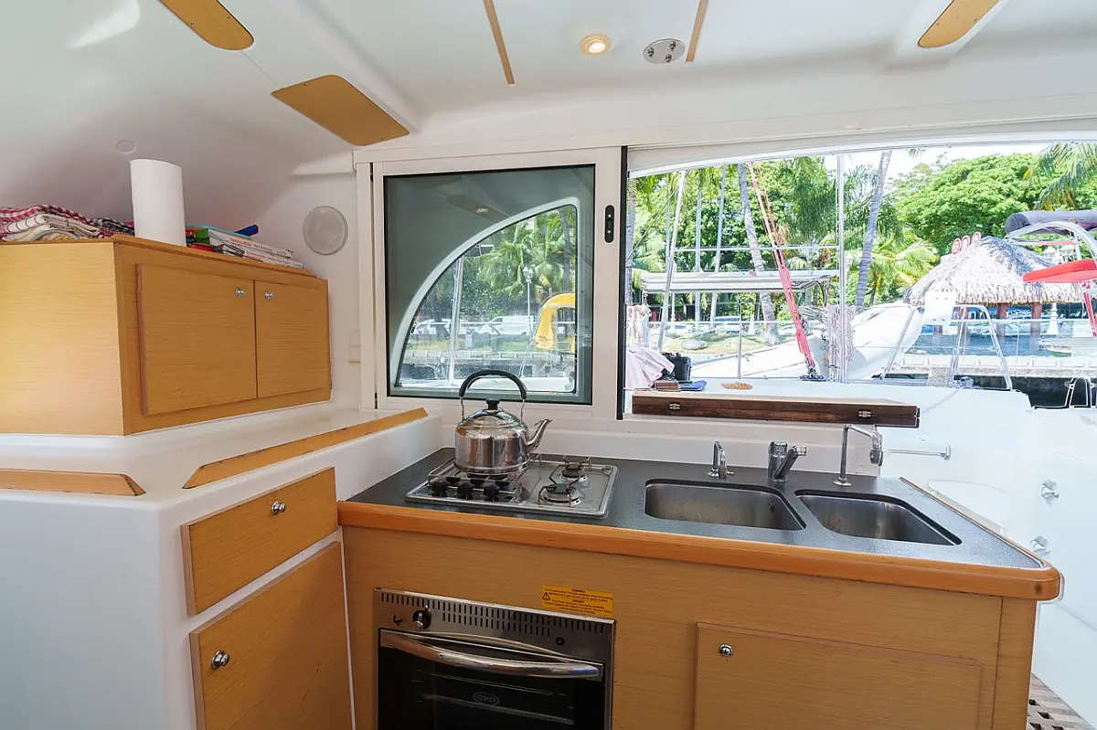 Barbecue grill in cockpit, Bimini, Cockpit cushions, Outboard engine, Refrigerator, Solar Panels, Water maker