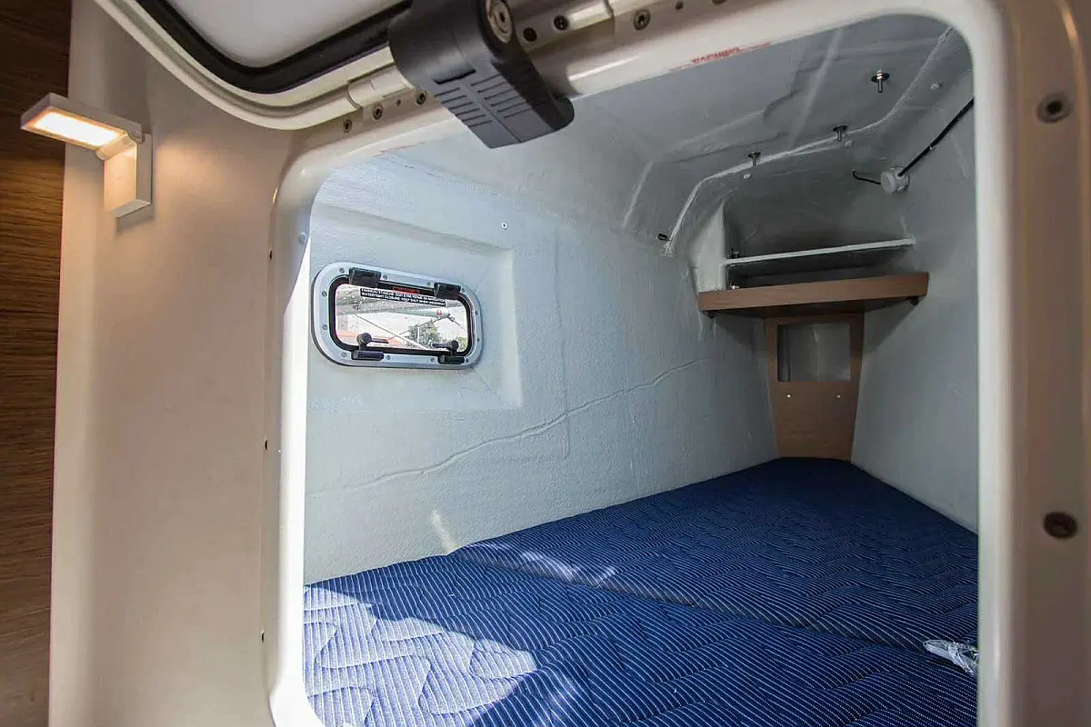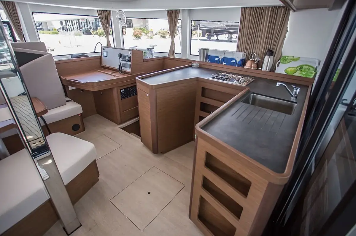 Cockpit speakers, Bimini, Refrigerator, Solar Panels, Outboard engine, Dinghy, Barbecue grill in cockpit