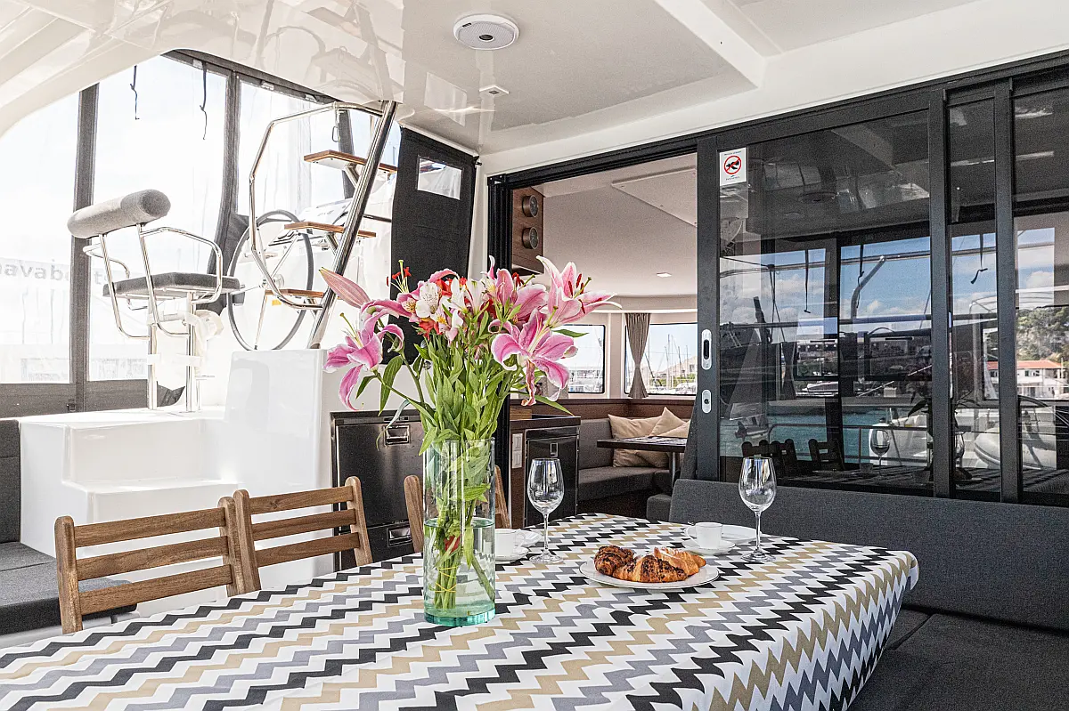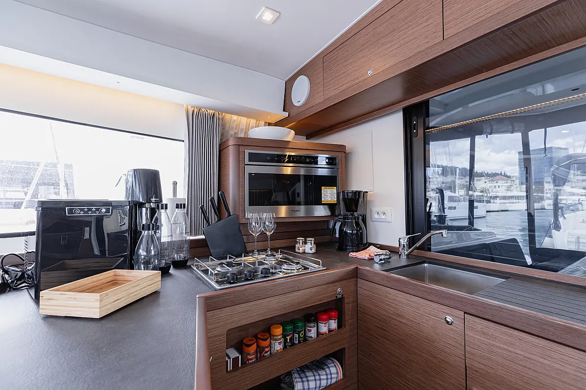 Air condition, Water maker, Bimini, Electric winches, Wi-Fi & Internet, Cockpit cushions, Coffee maker, Ice maker, Generator, Heating, Outboard engine, Dinghy