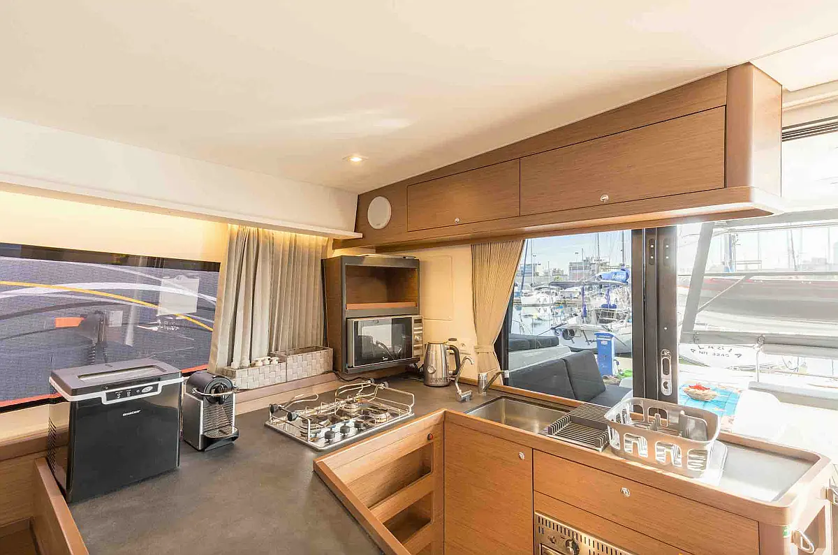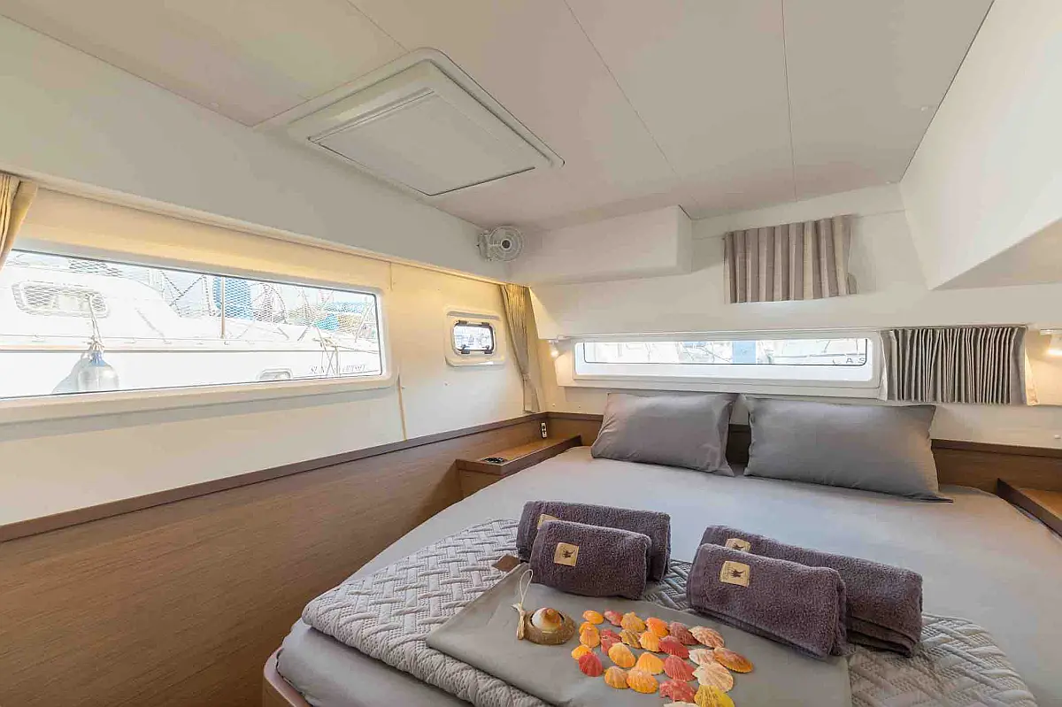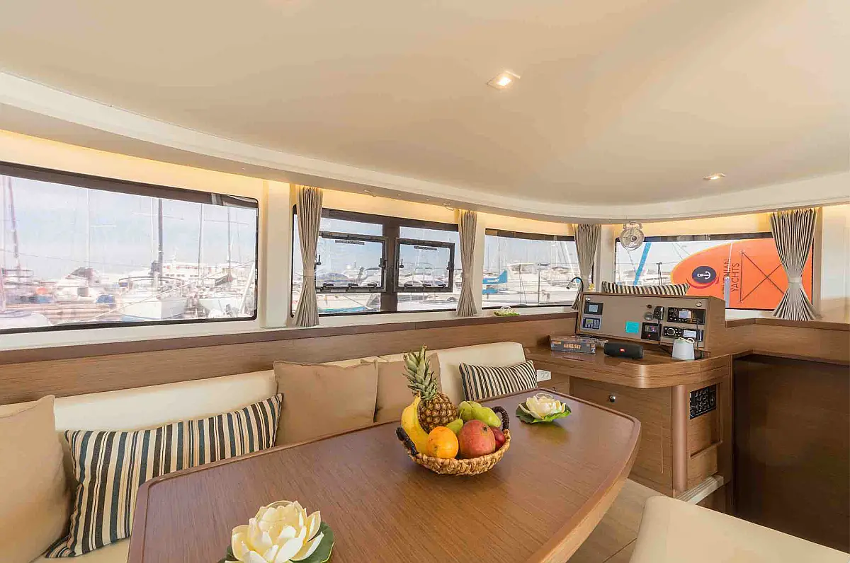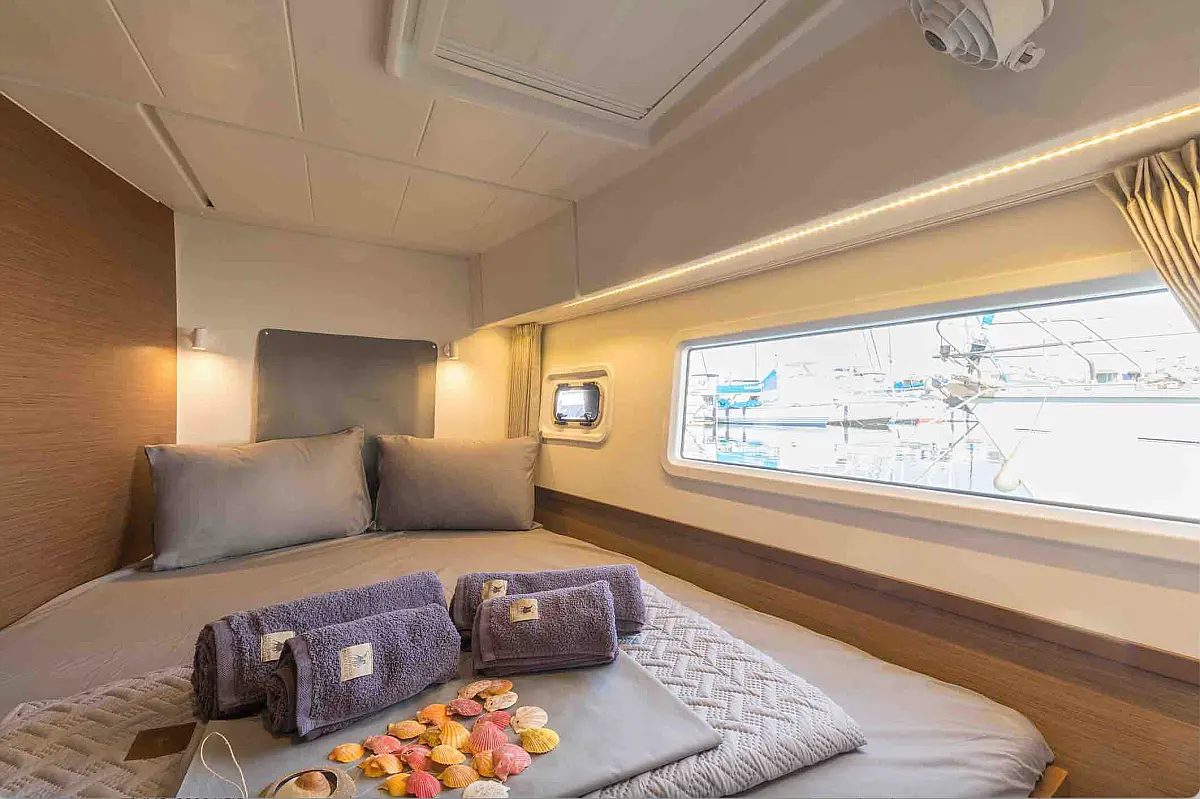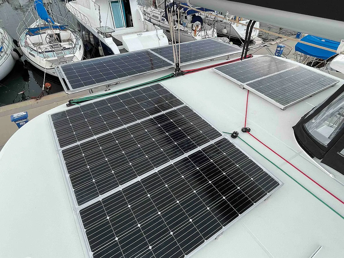 Air condition, Water maker, Refrigerator, Coffee maker, Ice maker, Dinghy, Outboard engine, Solar Panels, Electric winches, Inverter, Generator, Wi-Fi & Internet
