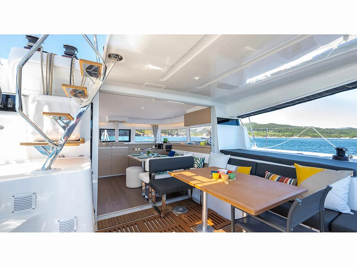Barbecue grill in cockpit, Bimini, Cockpit cushions, Water maker, Solar Panels, Generator
