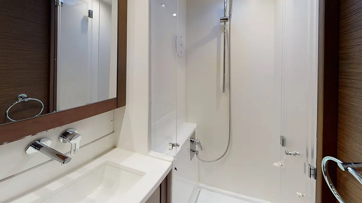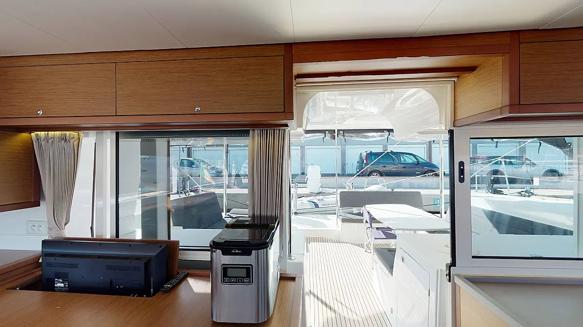 Air condition, Cockpit cushions, Cockpit speakers, Barbecue grill in cockpit, Refrigerator, Electric toilet, Water maker, Electric winches, Generator