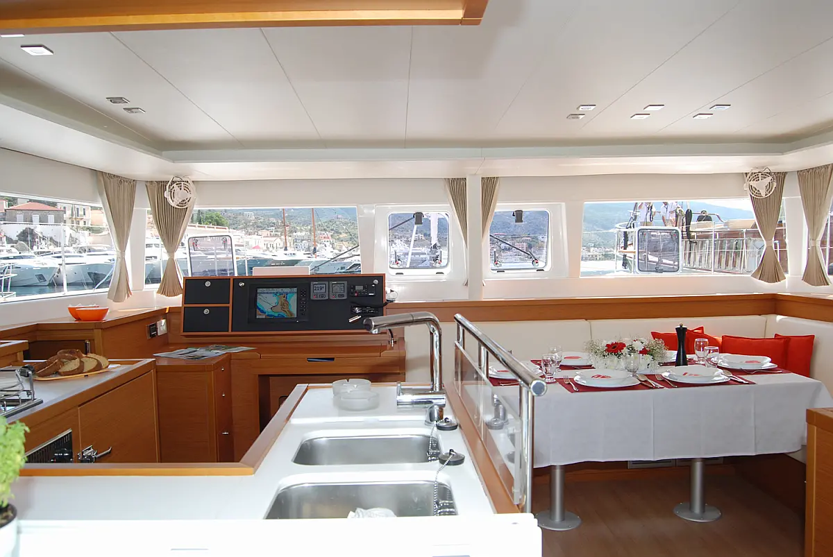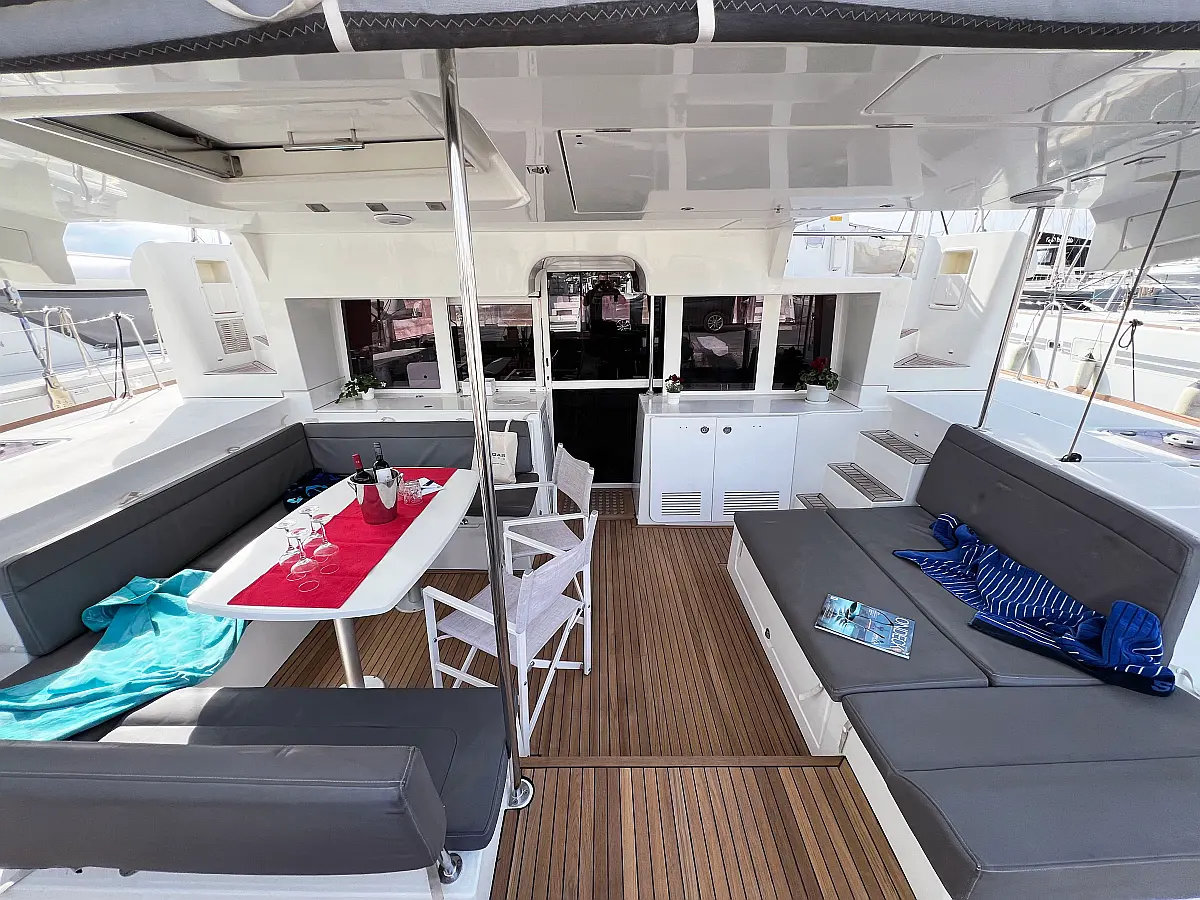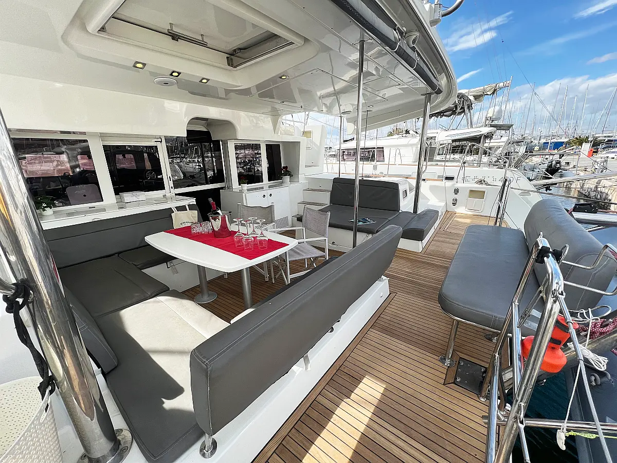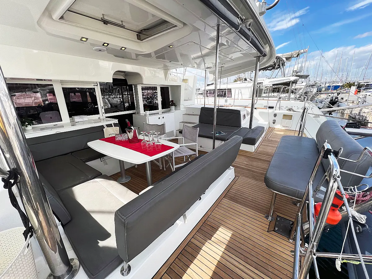 Air condition, Wi-Fi & Internet, Hydraulic gangway, Teak Cockpit, Bimini, Cockpit cushions, Dinghy, Outboard engine, Cockpit speakers, Generator, Inverter, Electric winches, Electric toilet, Water maker, Refrigerator, Coffee maker, Sprayhood