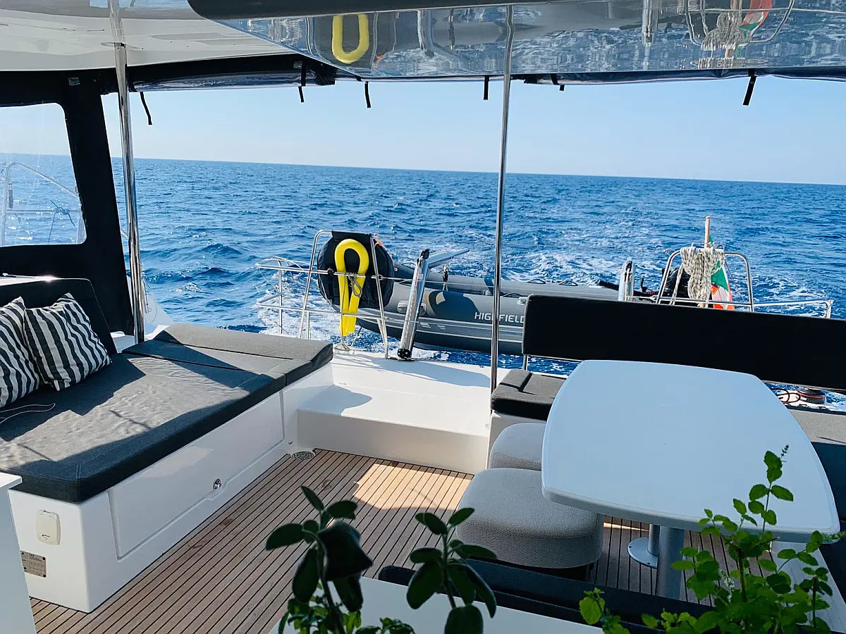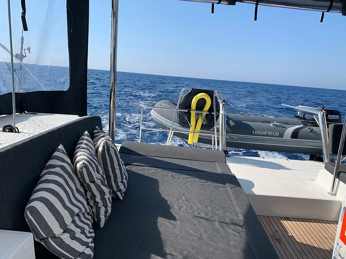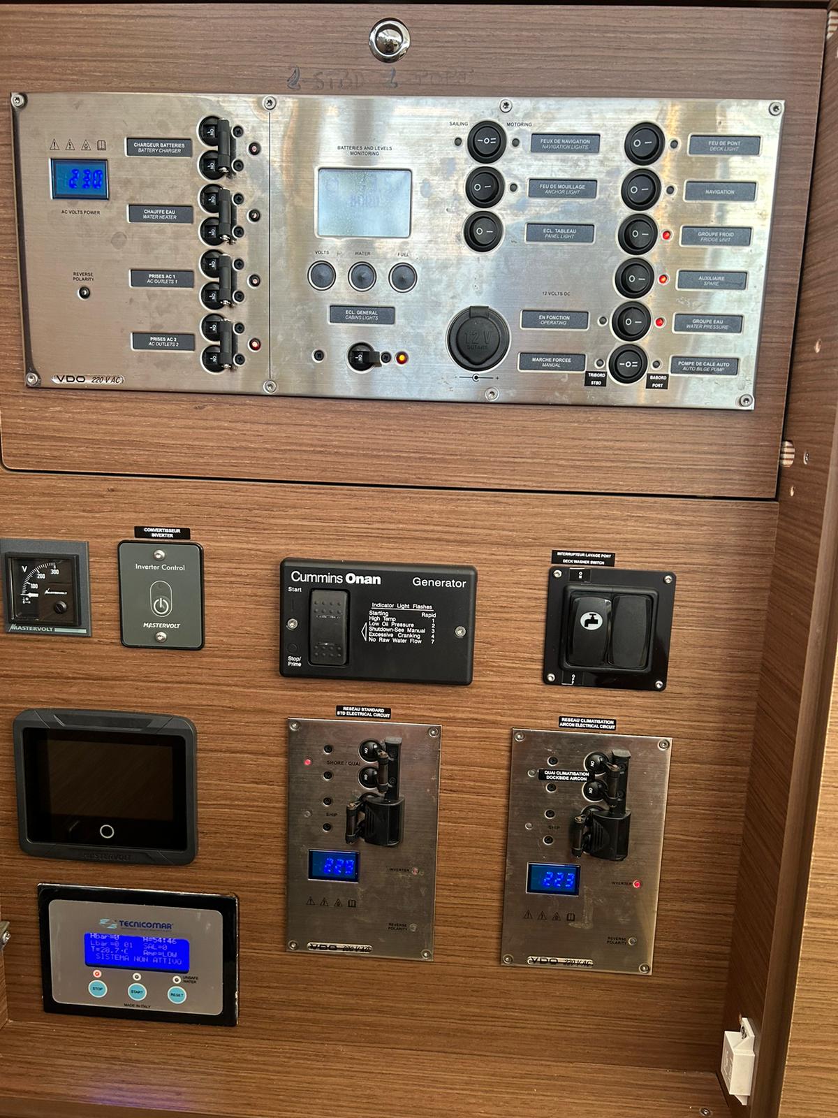 Solar Panels, Dinghy, Refrigerator, Water maker, Air condition, Coffee maker, Electric winches