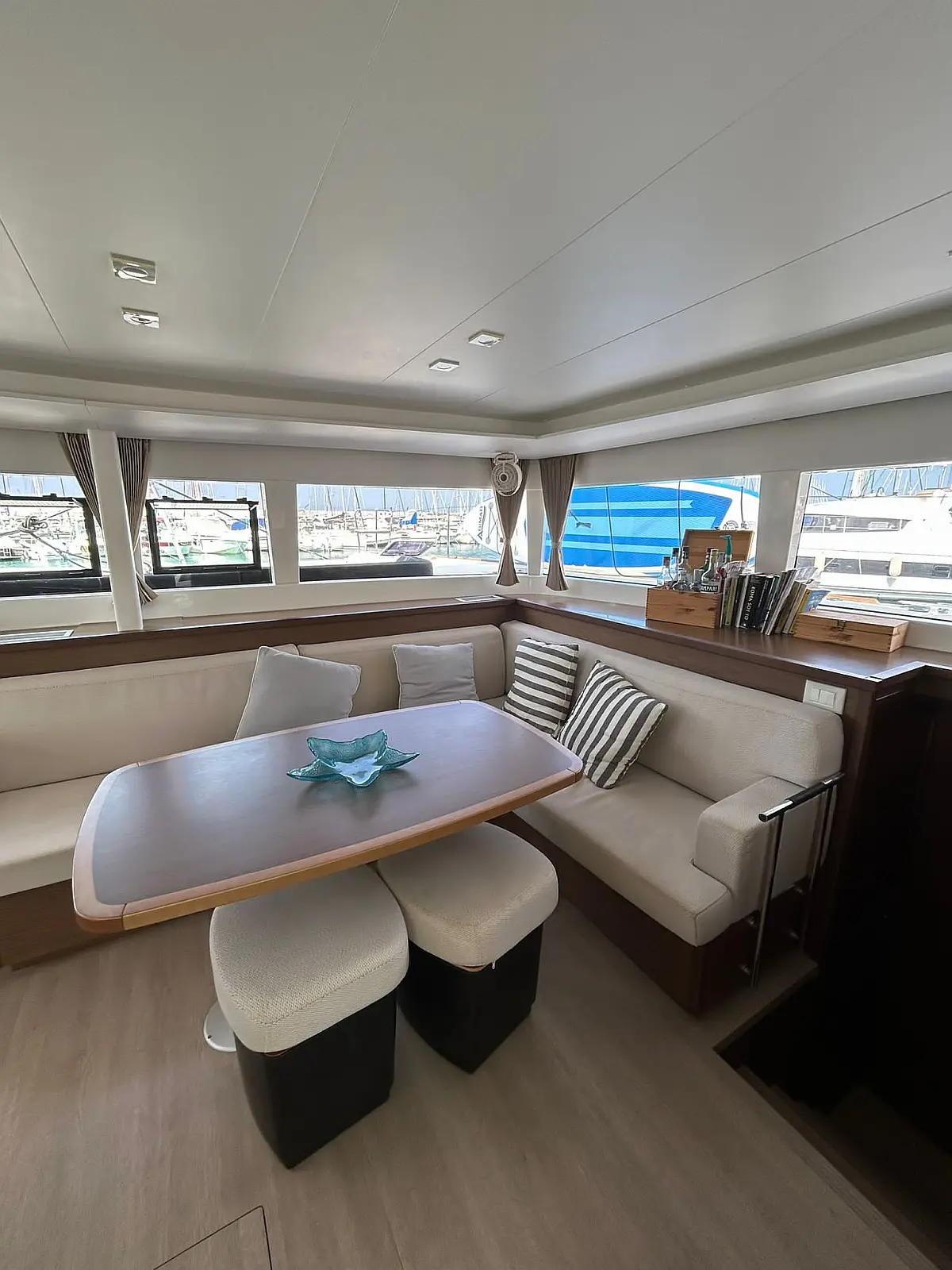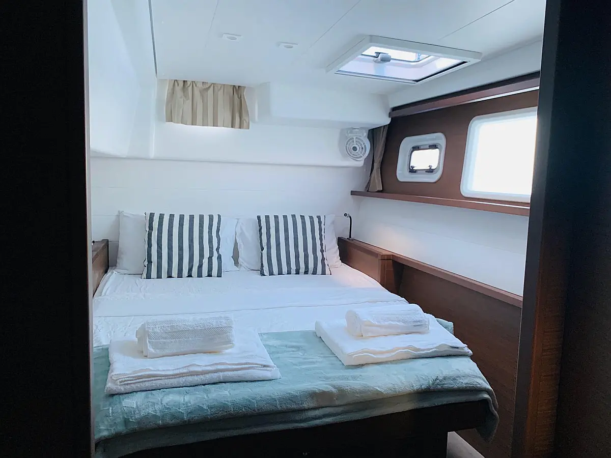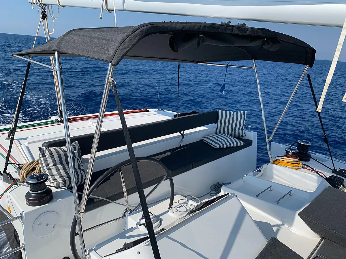 Solar Panels, Dinghy, Refrigerator, Water maker, Air condition, Coffee maker, Electric winches