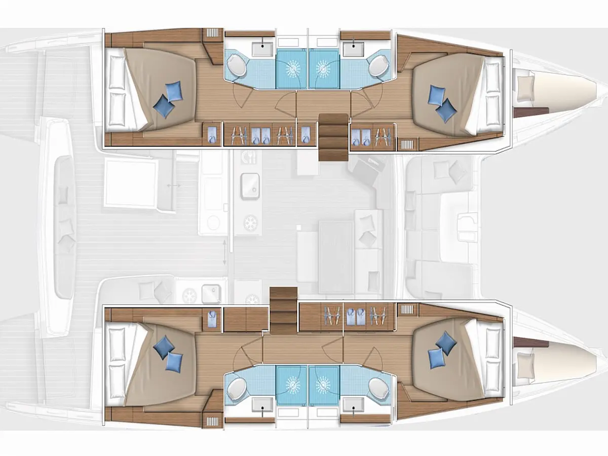 Cockpit cushions, Flybridge, Refrigerator, Dinghy, Electric toilet, Generator, Air condition, Water maker