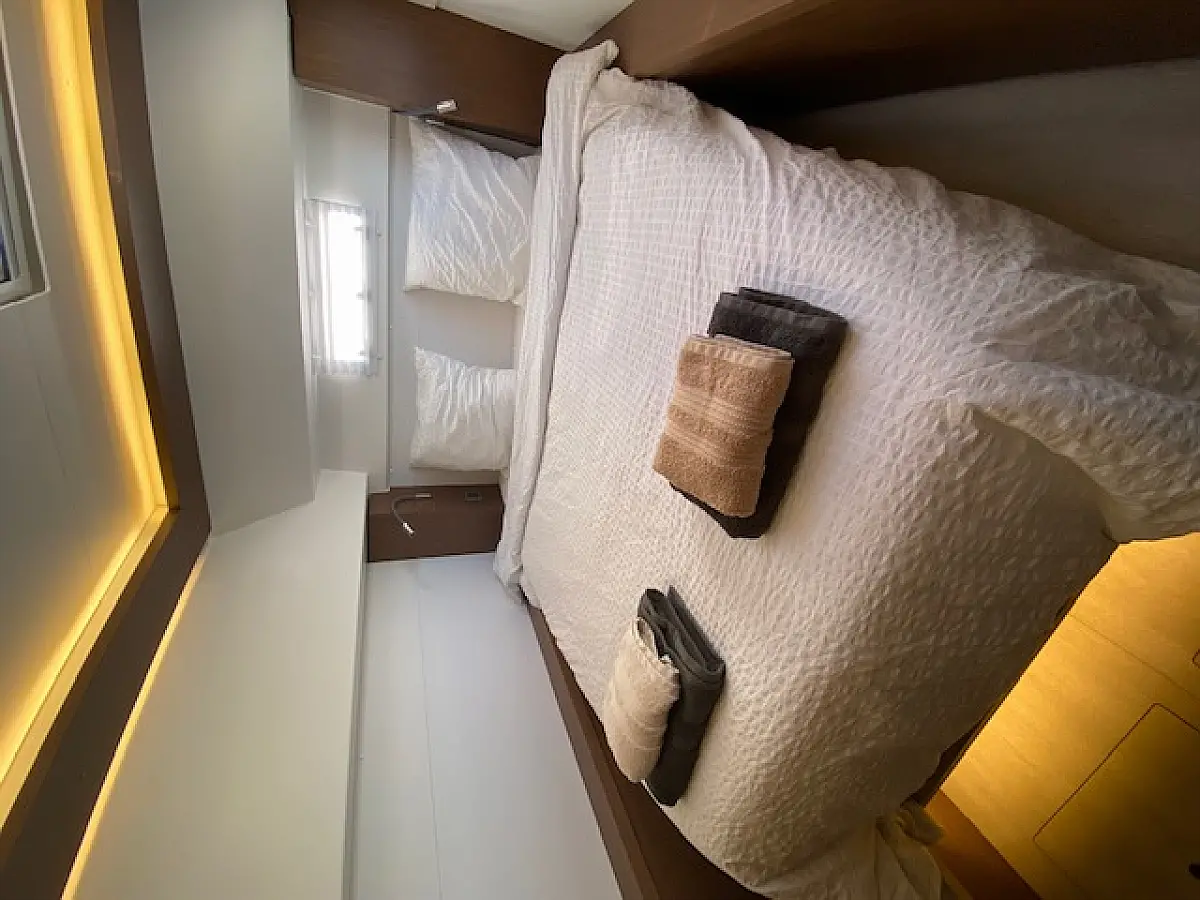 Dinghy, Air condition, Refrigerator, Solar Panels, Bimini, Electric winches, Electric toilet, Water maker