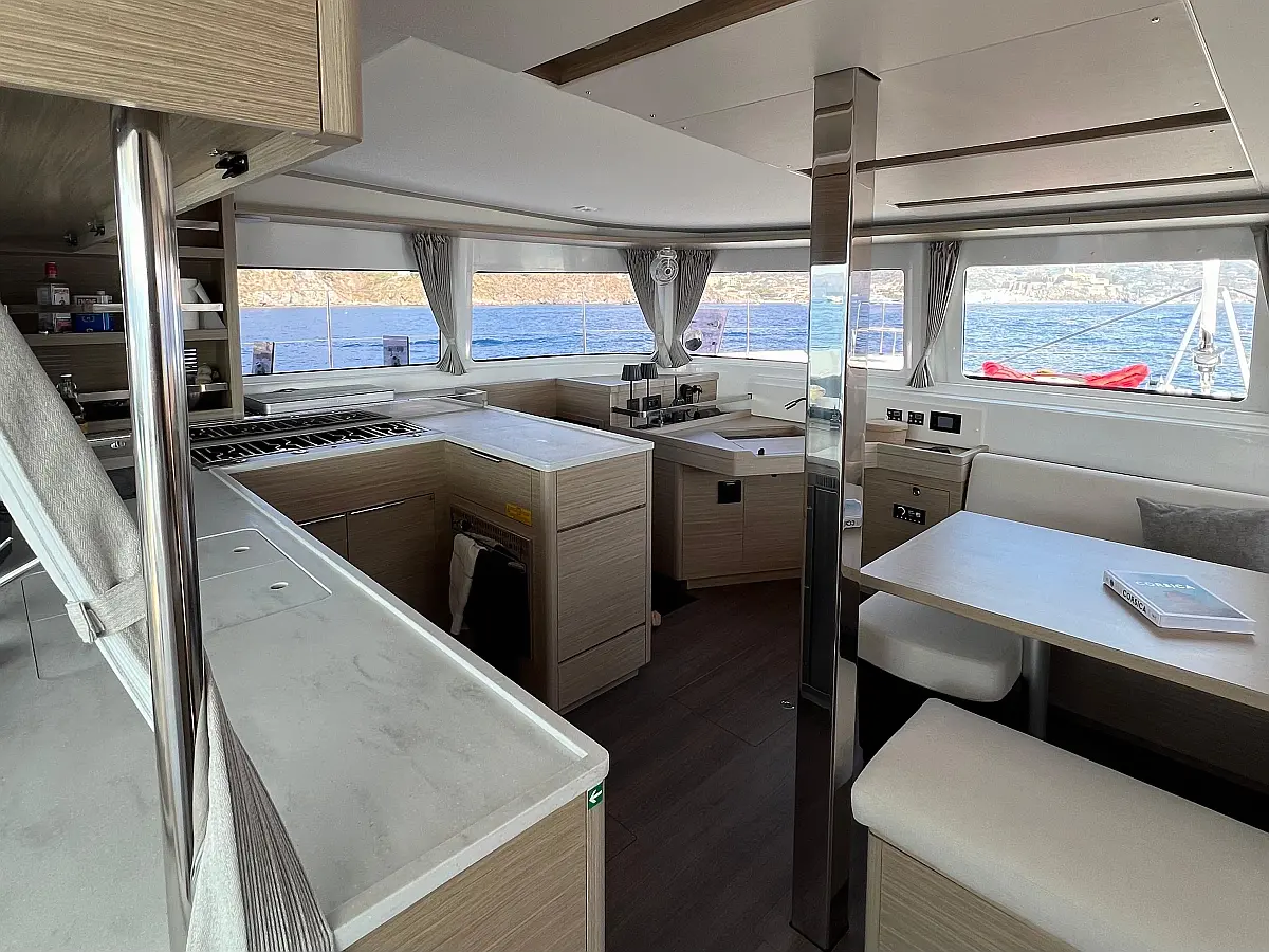 Dinghy, Outboard engine, Teak Cockpit, Electric winches, Air condition, Inverter, Cockpit cushions, Water maker, Flybridge, Generator, Electric toilet