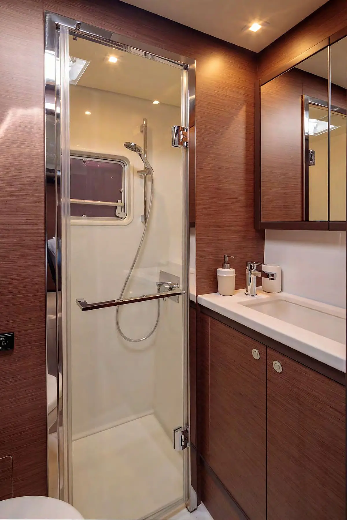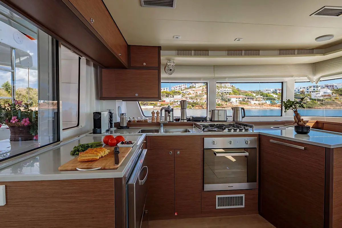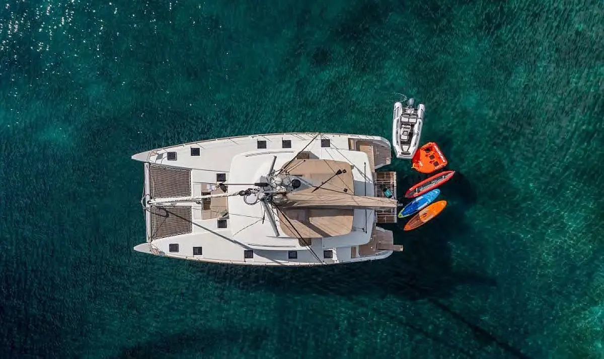 Ice maker, Water maker, Inverter, Air condition, Electric winches, Generator, Outboard engine, Dinghy, Refrigerator, Teak deck, Dishwasher